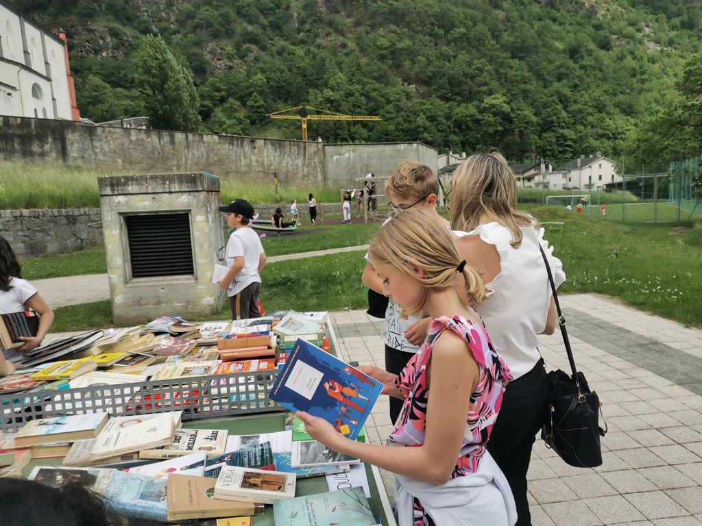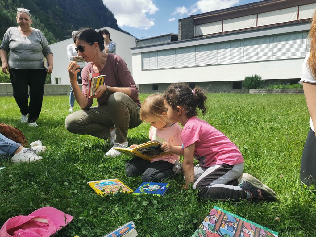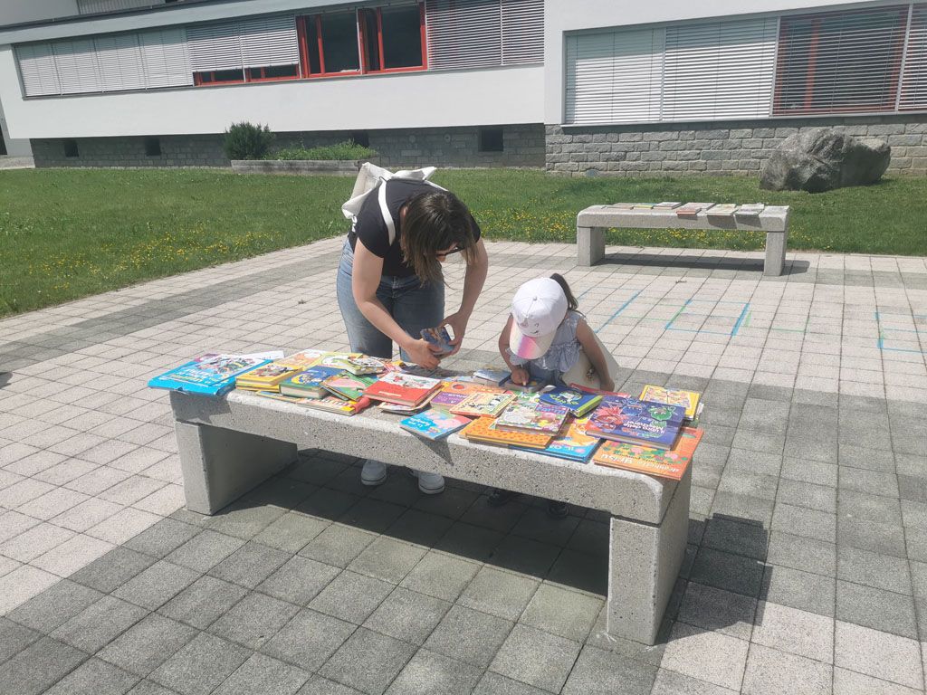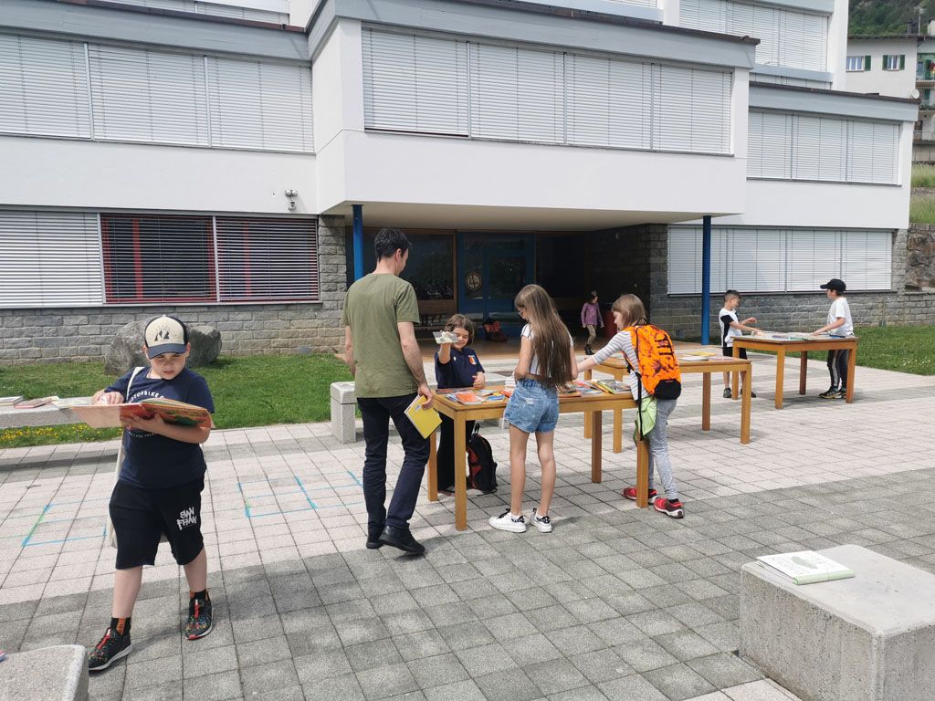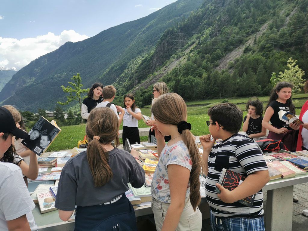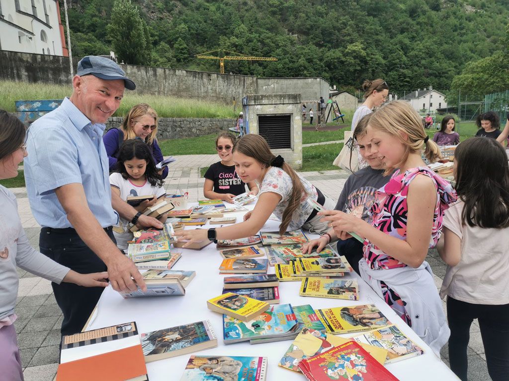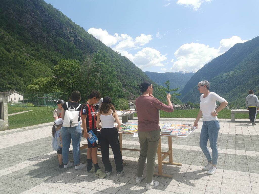 Ampia galleria fotografica del mercatino del libro usato organizzato nel giardino della sede scolastica di Brusio dalla Biblioteca comunale Brusio in collaborazione con le scuole comunali primarie e dell’infanzia.