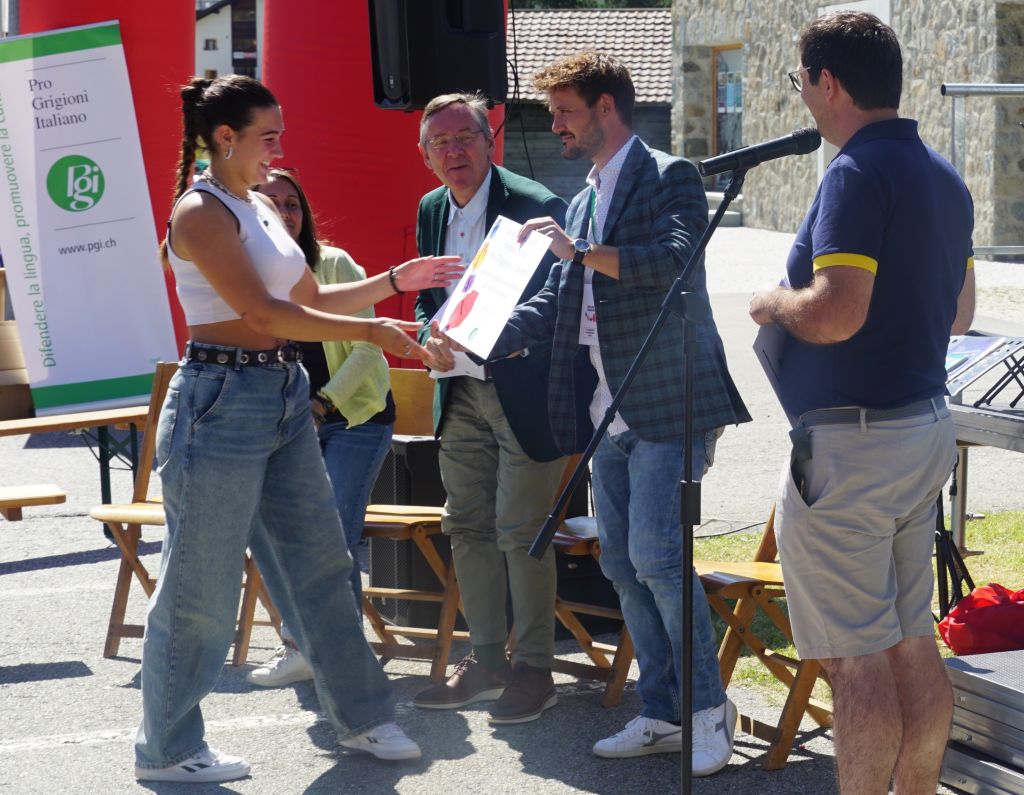 Emozionante e di alto livello il concorso canoro per giovani grigionitaliani "Pro GRigiovani in concerto". Quattro le partecipanti che hanno cantato davanti al pubblico presente a Maloja: la poschiavina Ambra Paganini, la bregagliotta Celeste Friso, la brusiese Elena Pola e la bregagliotta Michelle Hort, che si è aggiudicata il premio del concorso assegnato la domenica.
