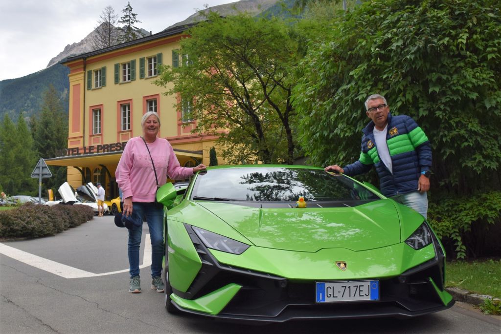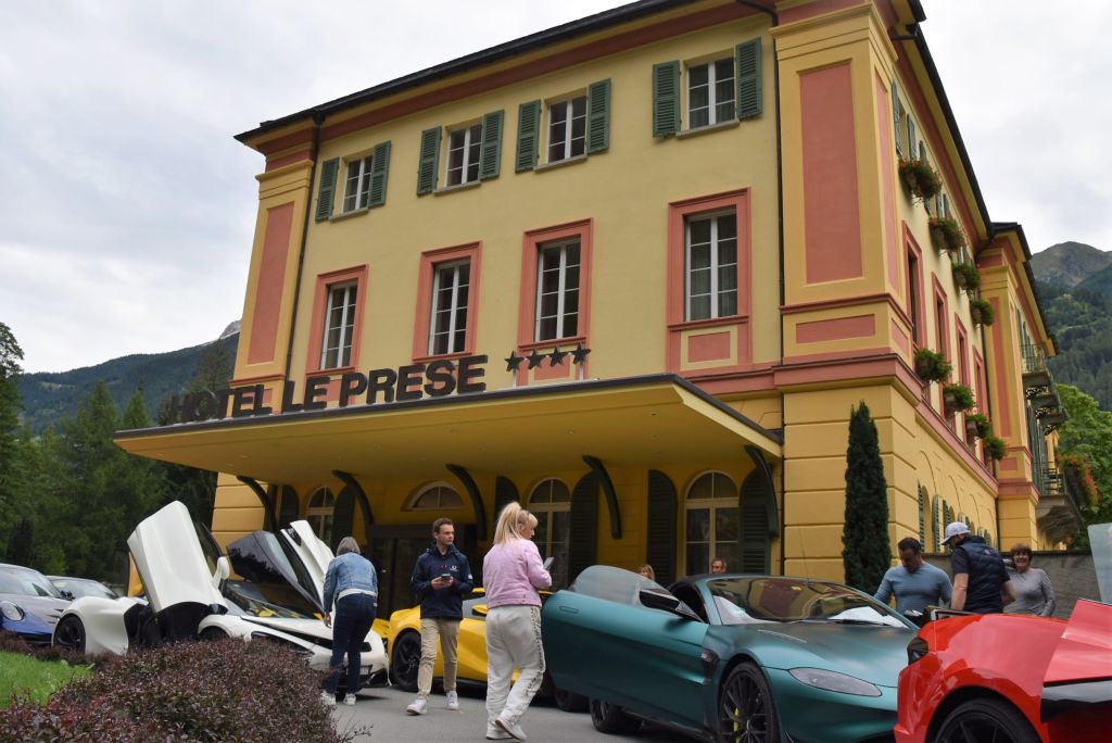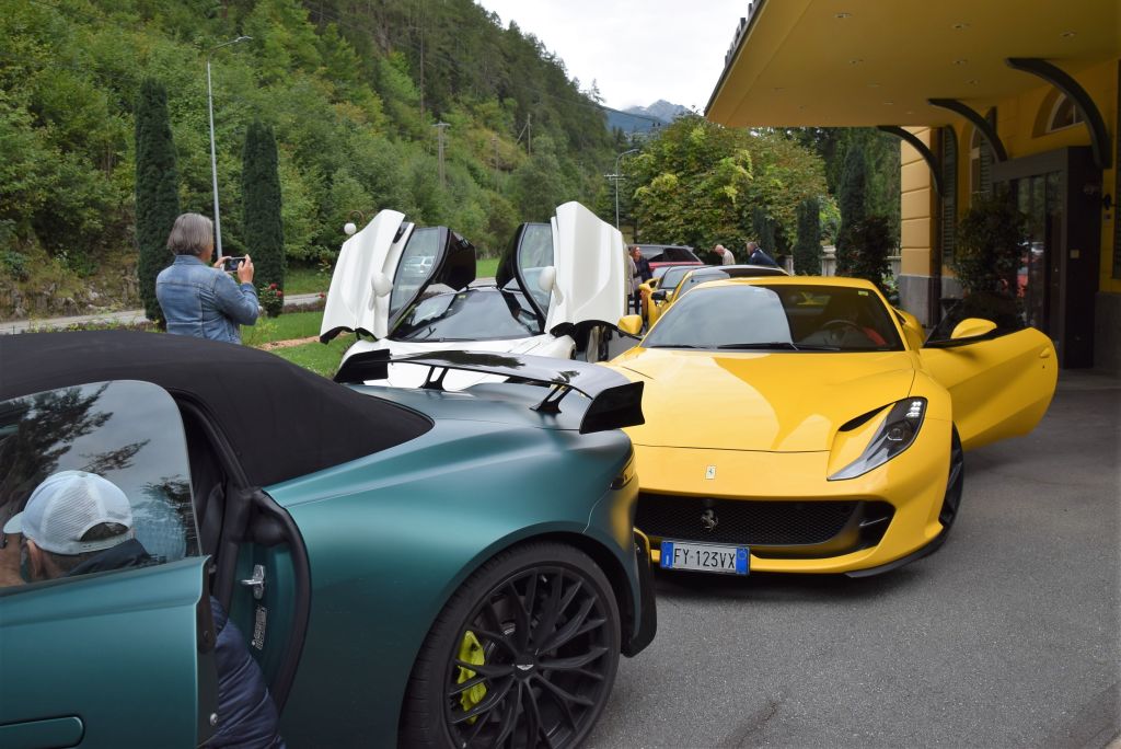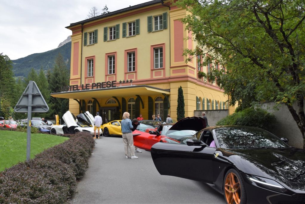 Non capita tutti giorni di passare davanti all'Hotel Le Prese e di vedere parcheggiate dietro al suo bellissimo e sempre ben curato giardino, una fila di macchine lussuose una più bella dell'altra. A me è capitato questa mattina, non sono riuscita a resistere, ho parcheggiato la mia "umile" Skoda, anche un po' ammaccata, e ho fatto una serie di foto a queste stupende auto: Ferrari, Porsche, Aston Martin, Maserati, etc. Da diversi anni, mi ha spiegato il gerente dell'Hotel Le Prese Walter Nadaja, un gruppo di appassionati d'auto lussuose, americani, irlandesi, spagnoli e inglesi, parte da Ginevra e gira per ca. 20/22 giorni facendo diverse tappe. Questa mattina sono partiti da St. Moritz, scesi lungo il Bernina, tappa veloce a Le Prese con direzione Dolomiti.