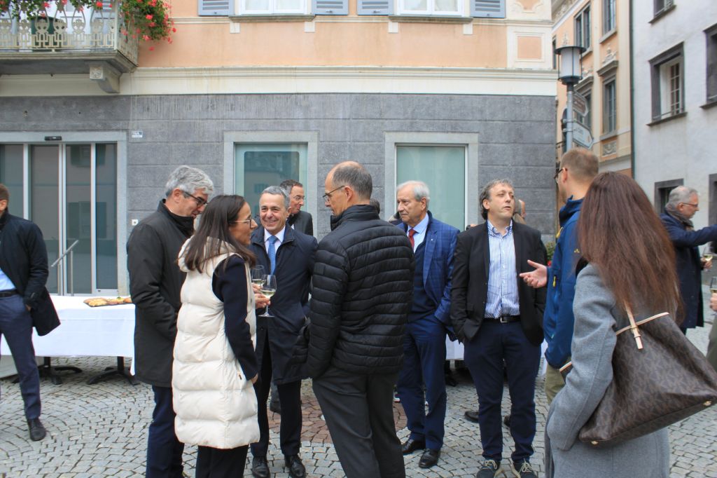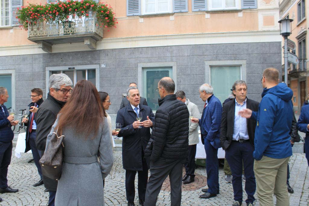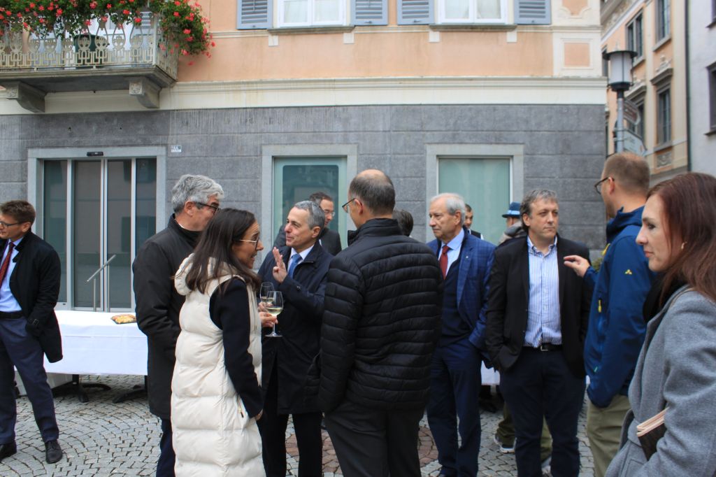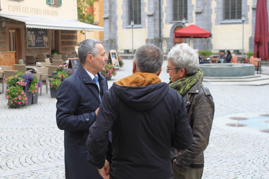 A margine dell’incontro il Consigliere Ignazio Cassis si è intrattenuto con i media, con le autorità regionali e con la poca – l’incontro non è stato pubblicizzato per motivi di sicurezza – popolazione che era presente in Piazza a mezzogiorno.
