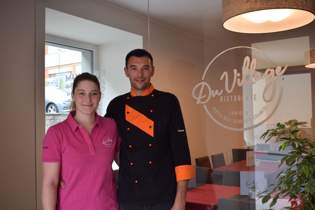Gloria e Davide Piatta Dell'Abbondio-Crameri, sono i gestori del nuovo Ristorante "Du Village", inaugurato oggi pomeriggio 12 maggio 2018 nel centro di Brusio. I giovani e simpatici gestori hanno voluto brindare per questo nuovo inizio all'insegna del buon auspicio, invitando la gente della Valposchiavo e della vicina Valtellina.