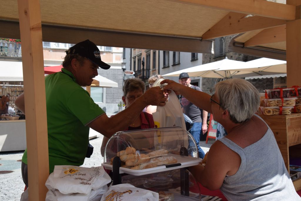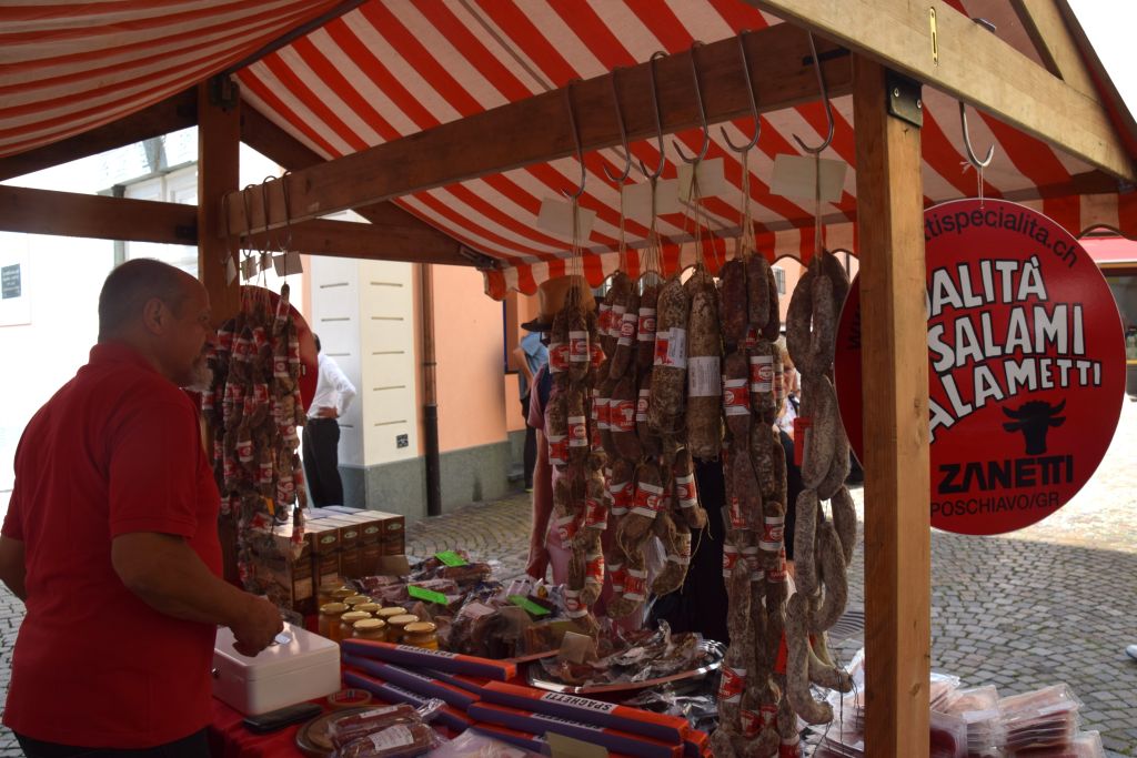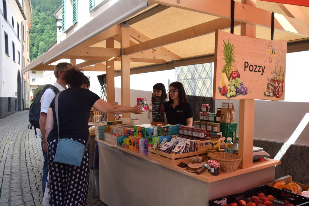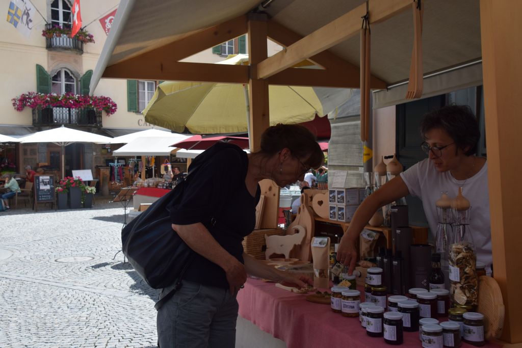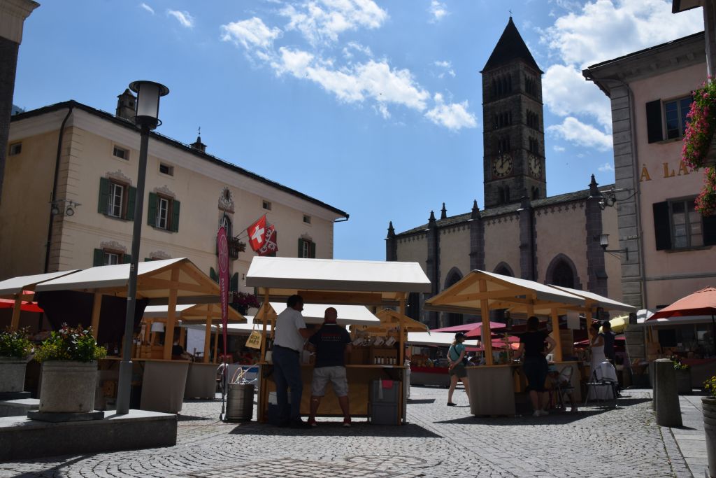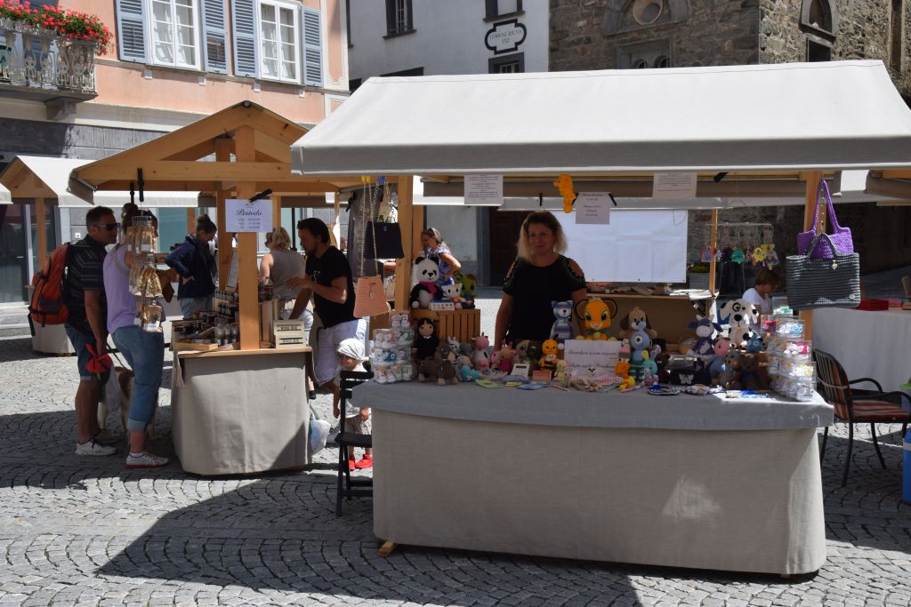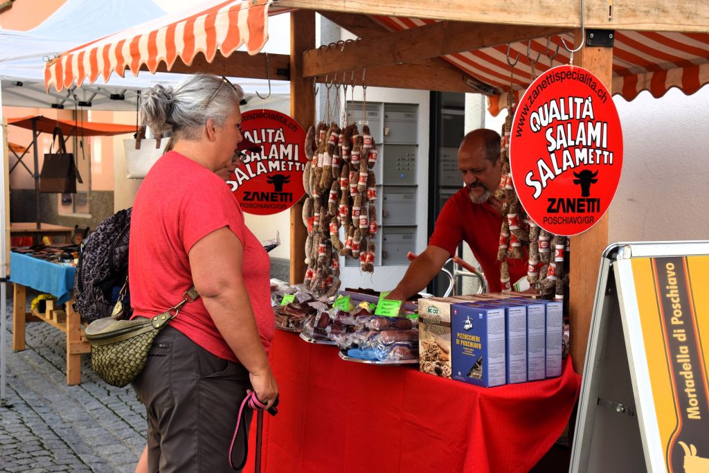 Serie di immagini del tradizionale mercatino estivo, iniziato mercoledì scorso 3 luglio fino alla metà di ottobre. Prodotti freschi del territorio, artigianato tradizionale, oggetti d’arte locali o una bottiglia di vino dalla vicina Valtellina? Sulle bancarelle variopinte della piazza di Poschiavo si trova di tutto.