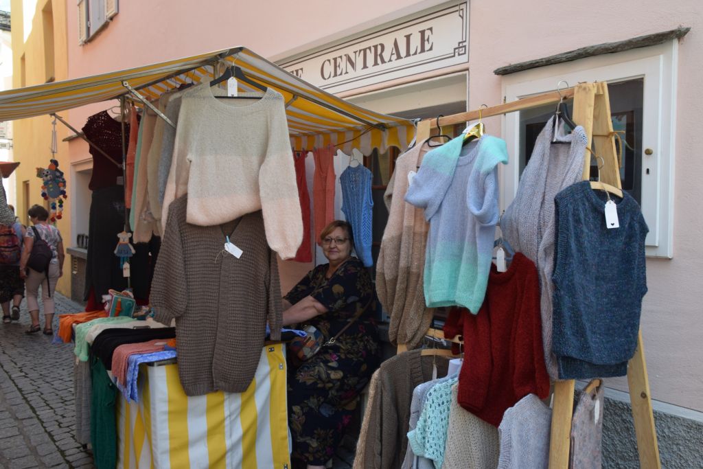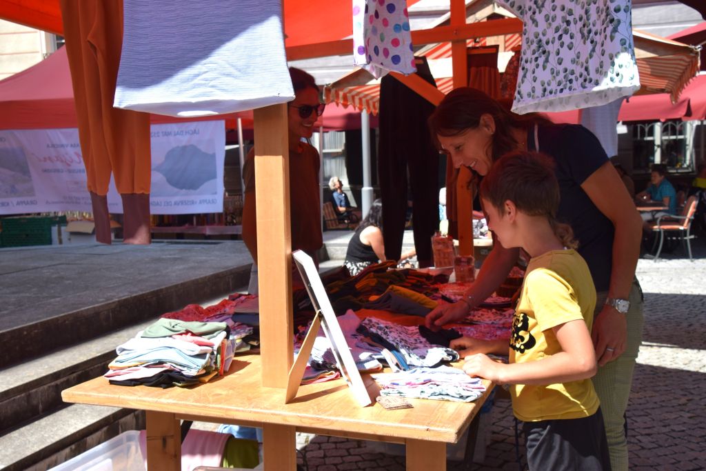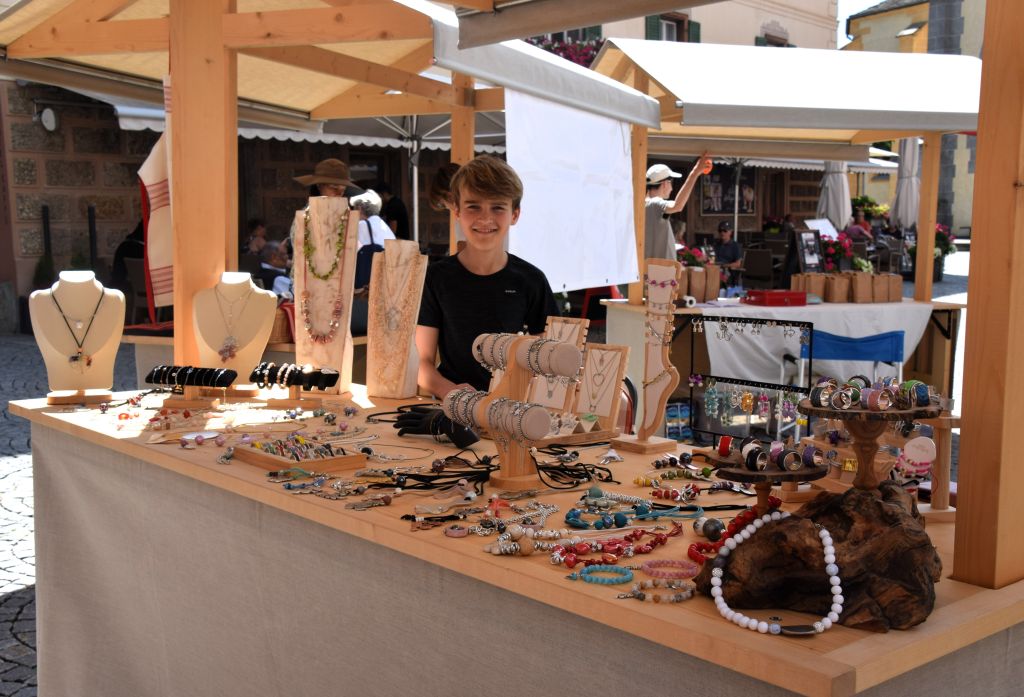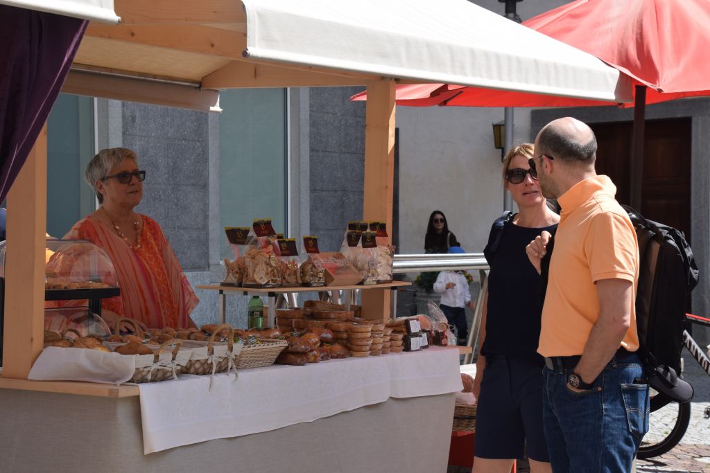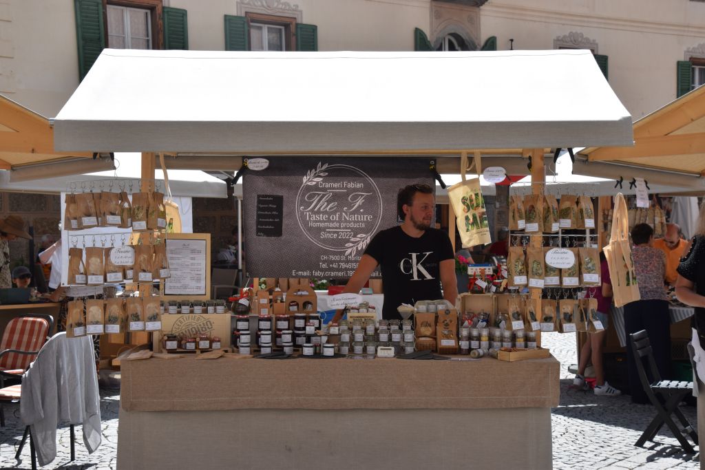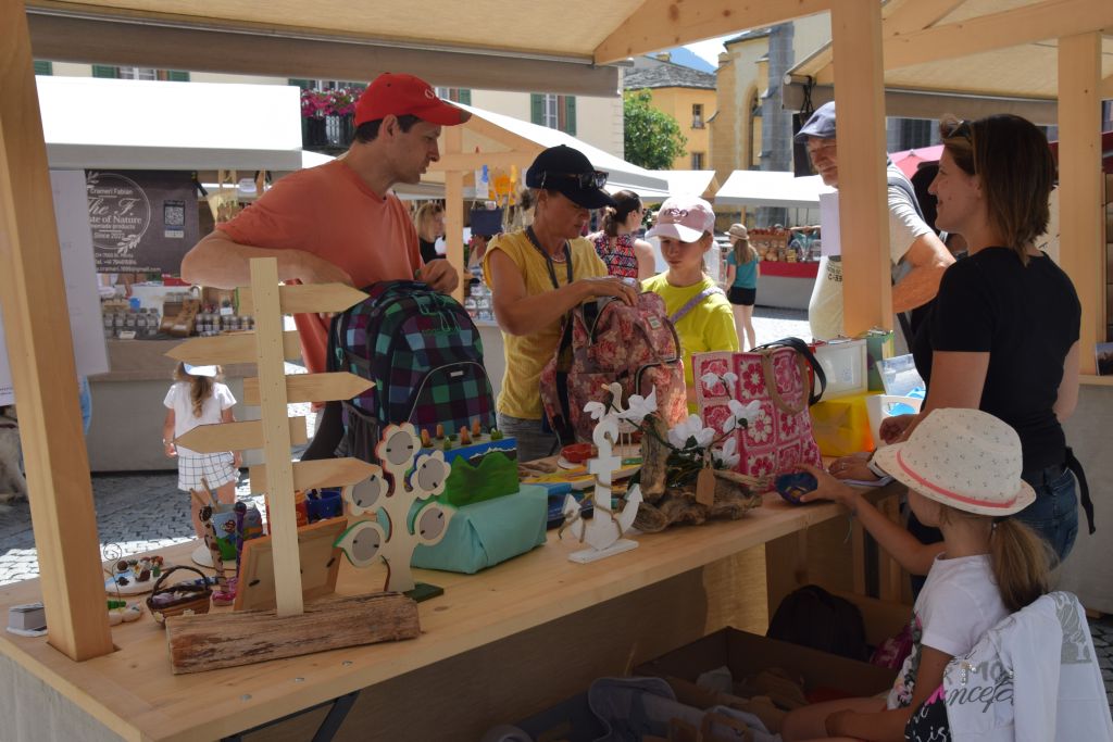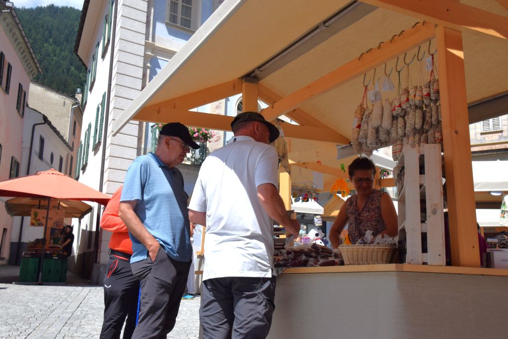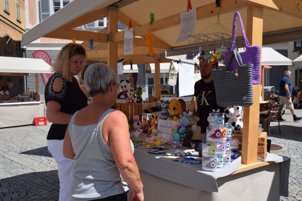 Serie di immagini del tradizionale mercatino estivo, iniziato mercoledì scorso 3 luglio fino alla metà di ottobre. Prodotti freschi del territorio, artigianato tradizionale, oggetti d’arte locali o una bottiglia di vino dalla vicina Valtellina? Sulle bancarelle variopinte della piazza di Poschiavo si trova di tutto.