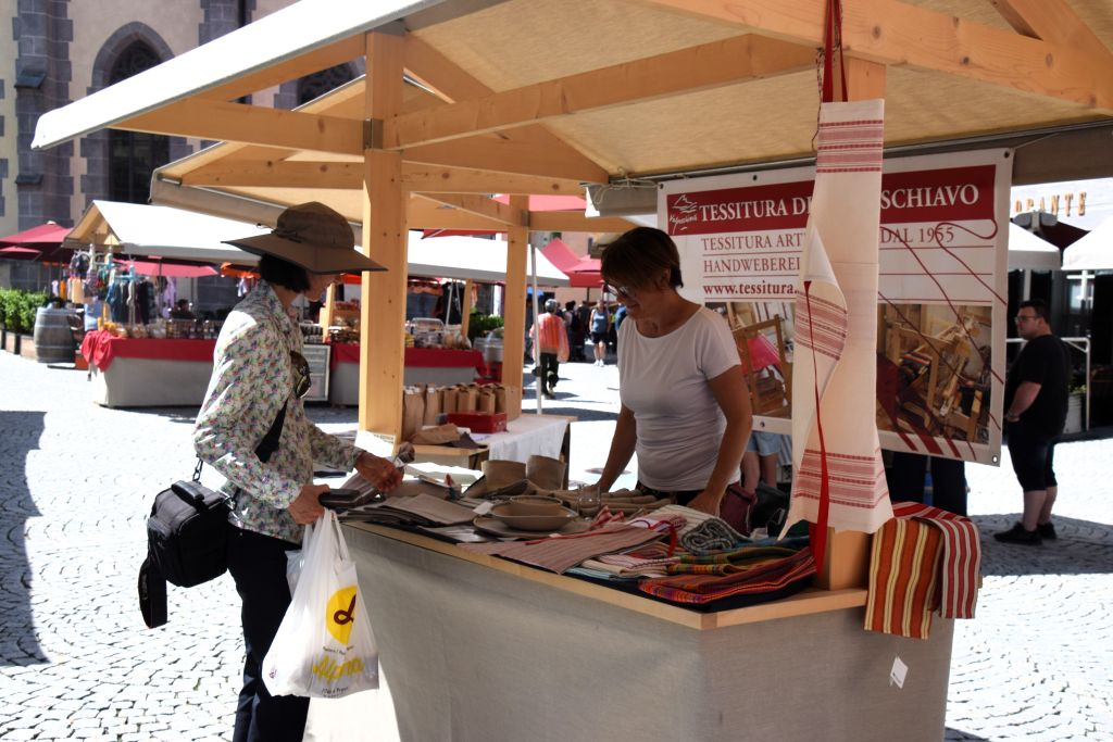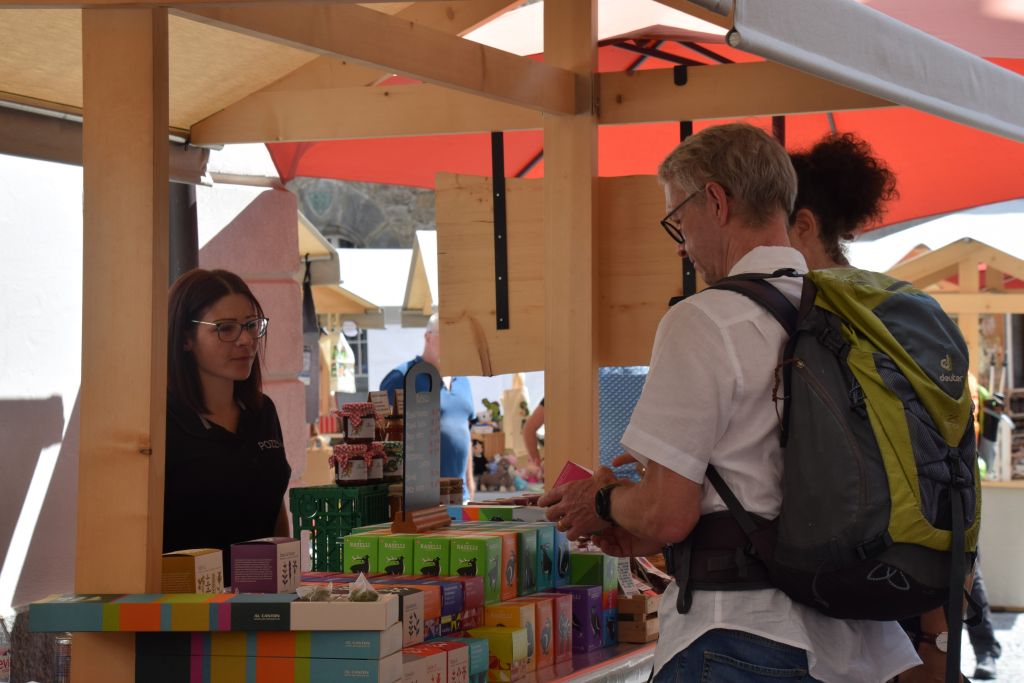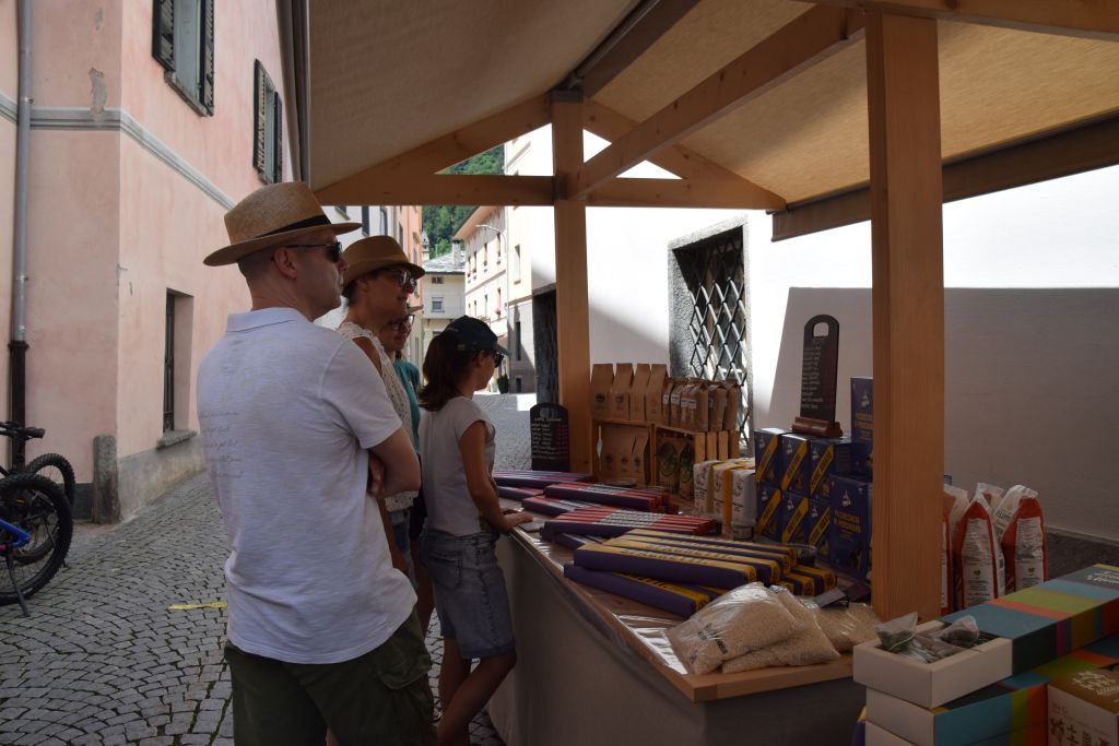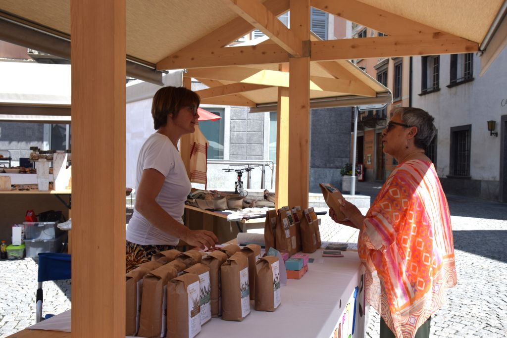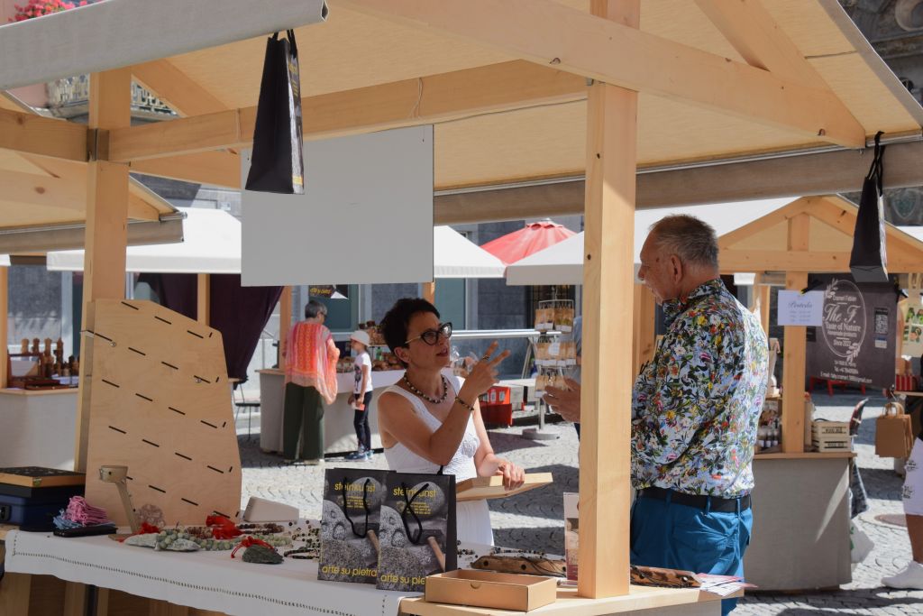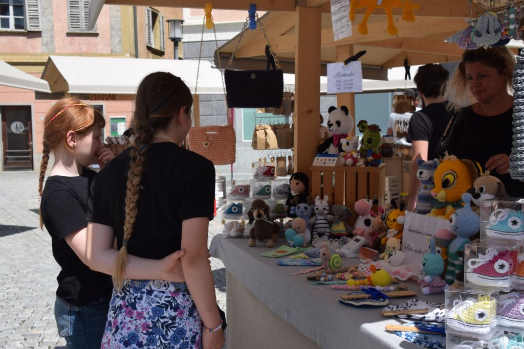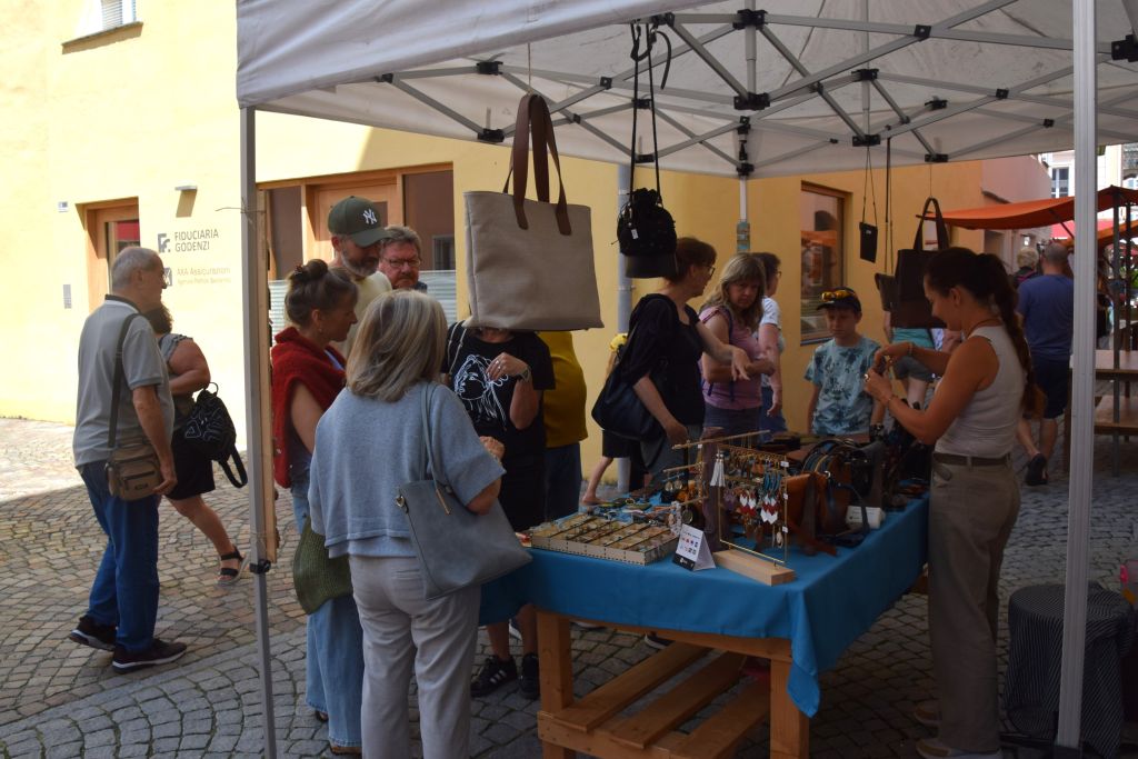 Serie di immagini del tradizionale mercatino estivo, iniziato mercoledì scorso 3 luglio fino alla metà di ottobre. Prodotti freschi del territorio, artigianato tradizionale, oggetti d’arte locali o una bottiglia di vino dalla vicina Valtellina? Sulle bancarelle variopinte della piazza di Poschiavo si trova di tutto.