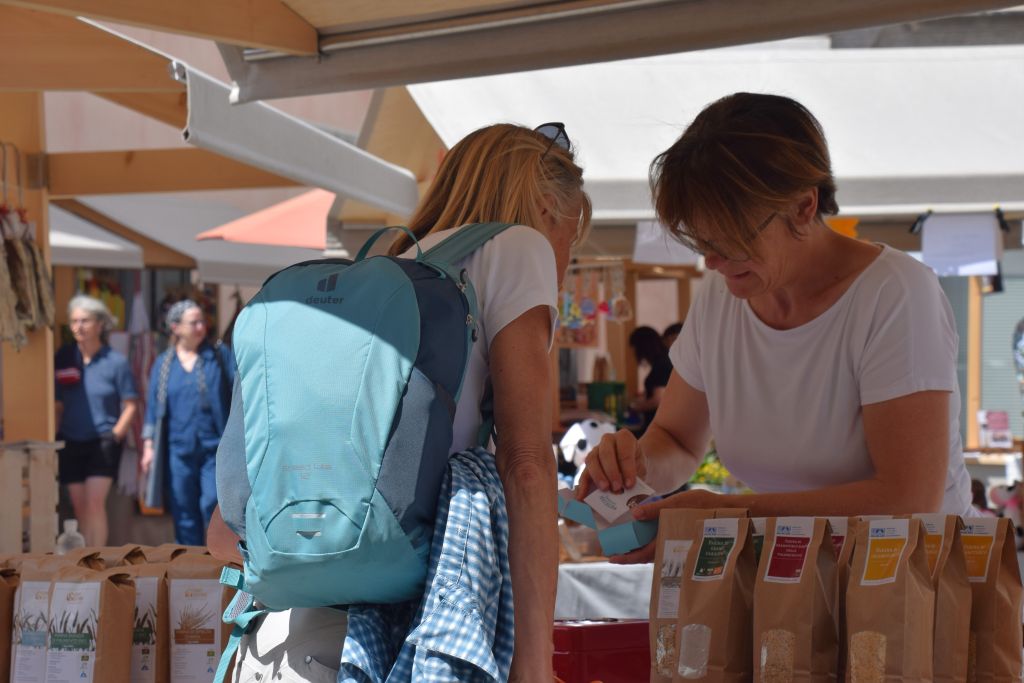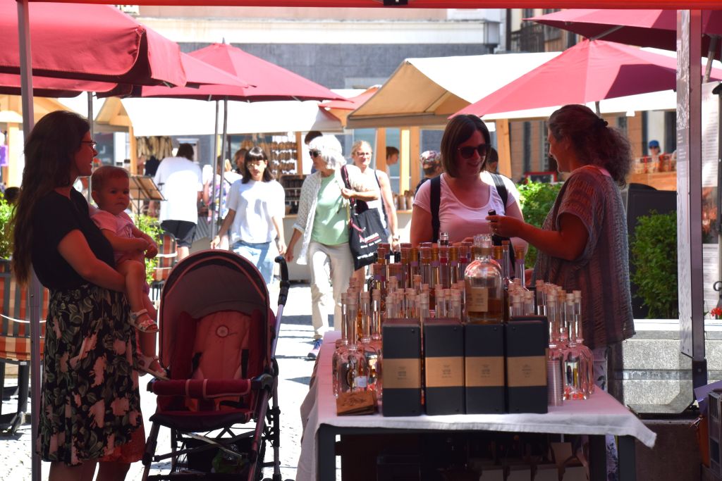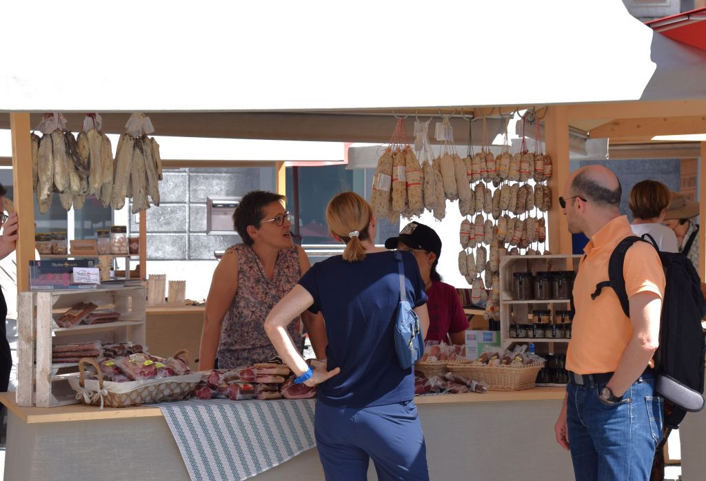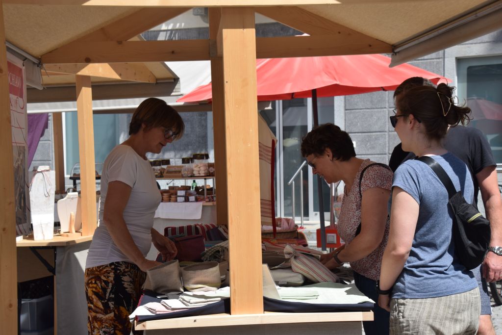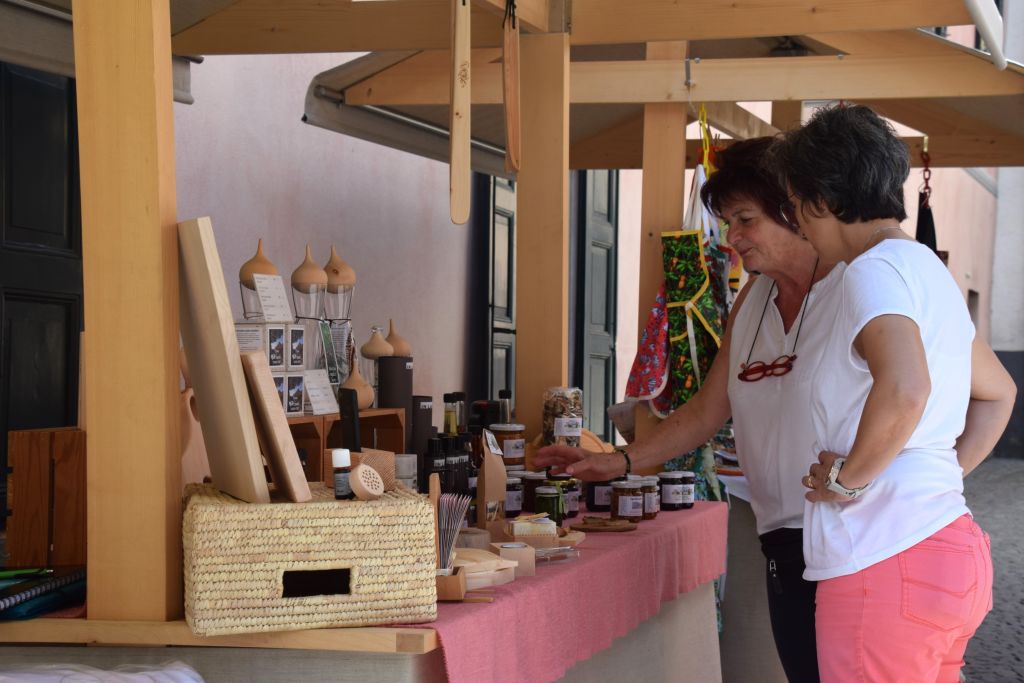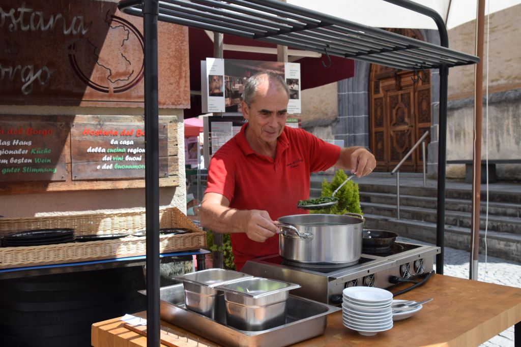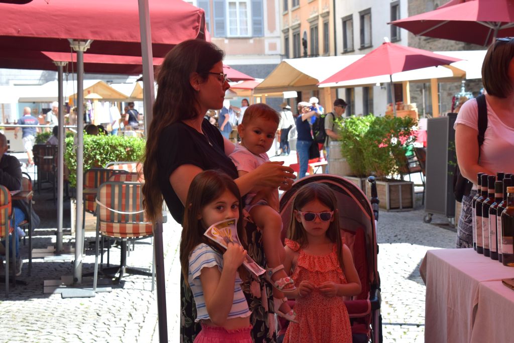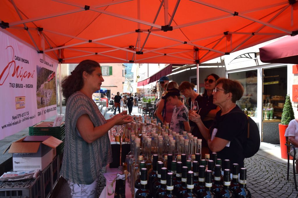 Serie di immagini del tradizionale mercatino estivo, iniziato mercoledì scorso 3 luglio fino alla metà di ottobre. Prodotti freschi del territorio, artigianato tradizionale, oggetti d’arte locali o una bottiglia di vino dalla vicina Valtellina? Sulle bancarelle variopinte della piazza di Poschiavo si trova di tutto.