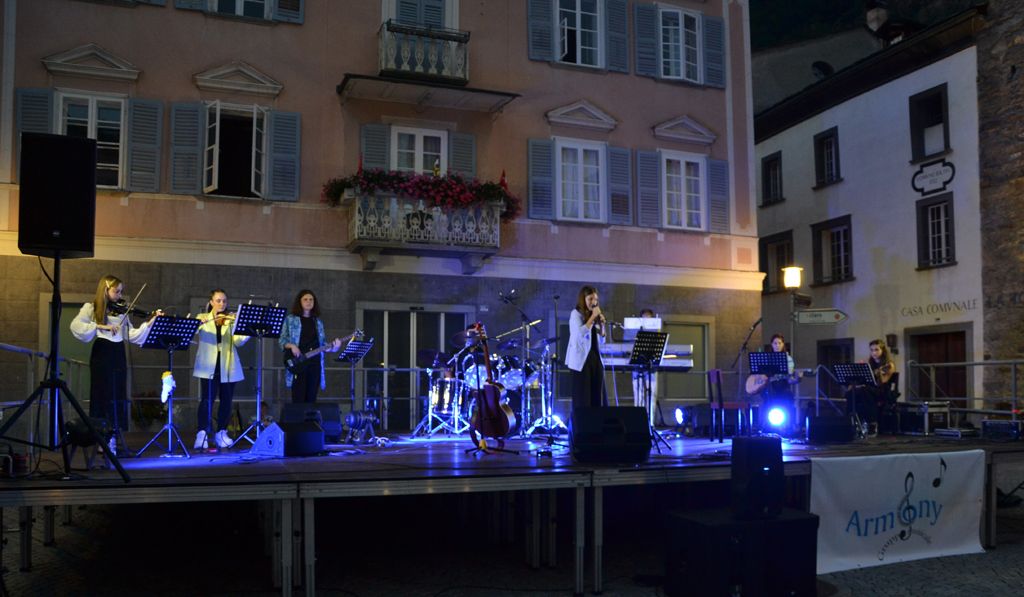 Emozioni impresse su carta fotografica dell’esibizione in Piazza a Poschiavo degli Armony.