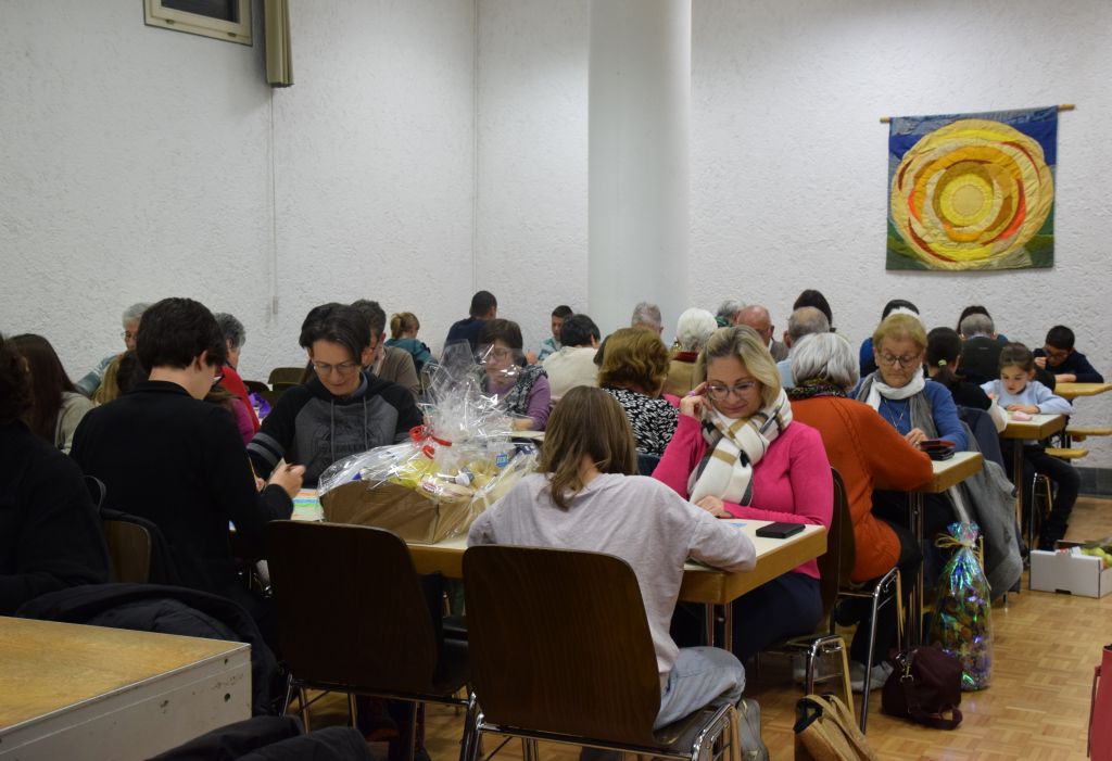Decine di persone hanno gremito, ieri pomeriggio domenica 24 novembre 2024, la sala del centro parrocchiale per la tombola proposta dal Consiglio pastorale parrocchiale per sostenere l’Associazione Incontro-Verein, che a Zurigo opera a favore di tante persone che vivono in povertà. La Giornata mondiale dei Poveri, celebrata domenica scorsa, è stato lo spunto per la proposta che oggi è stata un vero successo di partecipazione. Non è mancata anche la presenza del diacono don Matteo Tuena di Prada, che collabora con Incontro-Verein, dove opera un altro nostro convalligiano, don Ugo Rossi anche lui di Prada.