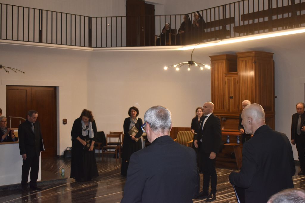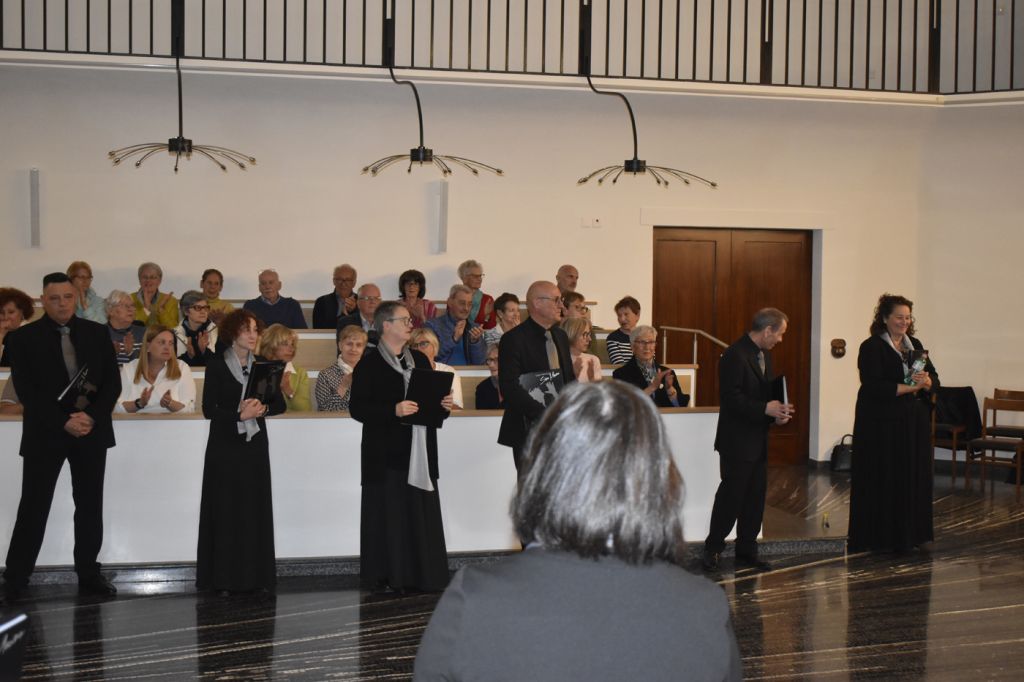 Così si è conclusa sabato sera, con applausi lunghissimi e pubblico in piedi, quella che dallo stesso coro è stata definita una “meditazione quaresimale in musica” nella suggestiva cappella del Nuovo Monastero.