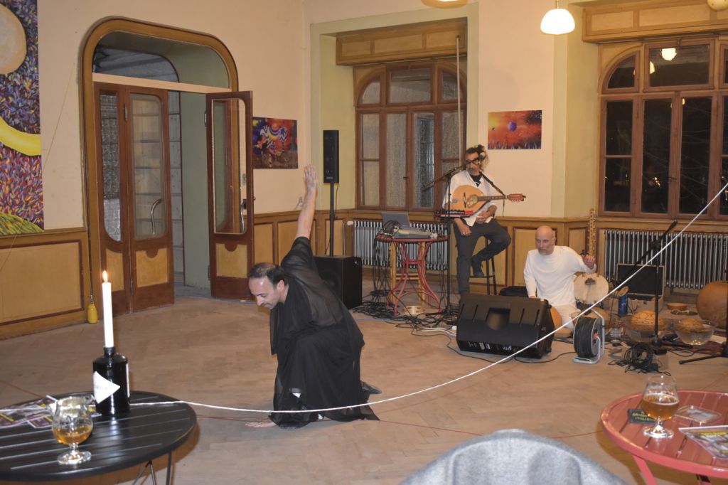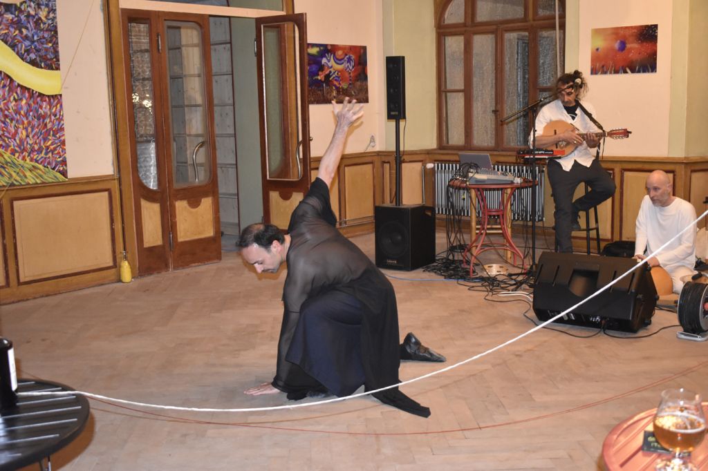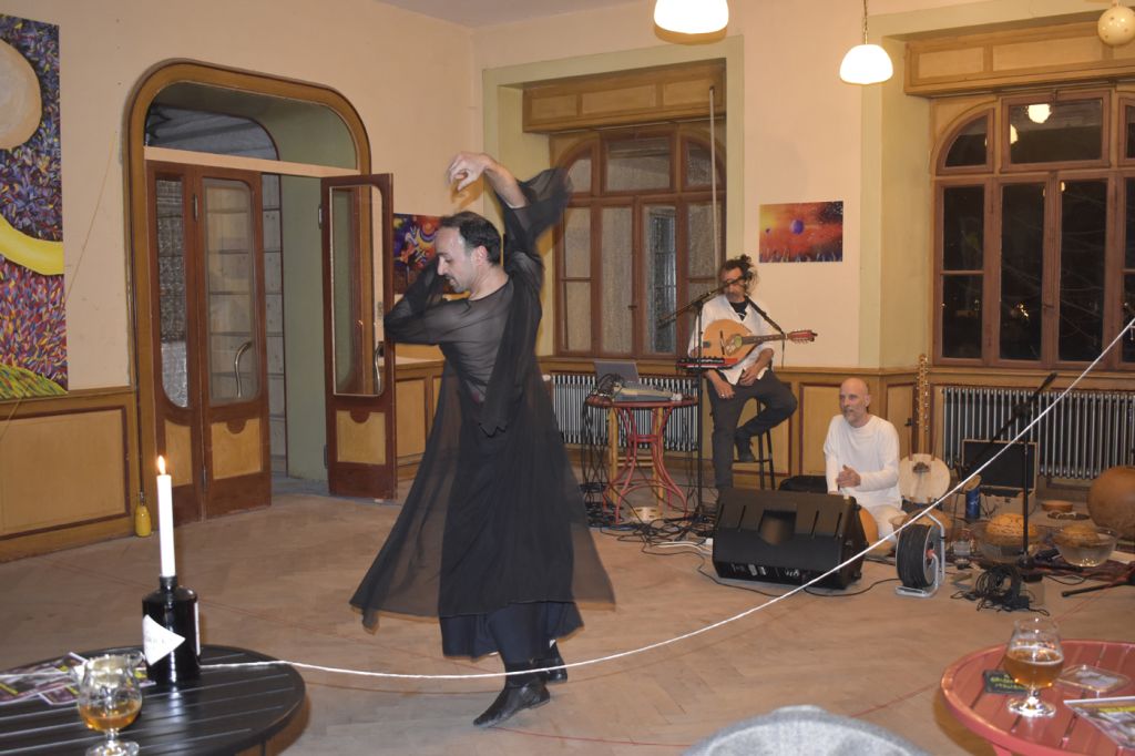 Mercoledì, 9 aprile, nella sala da ballo del Crott Hadi Habibnejad ha dato vita con Biagio Accardi e Andrea Murada a uno spettacolo che unisce musica e movimento e parla il linguaggio della spiritualità.