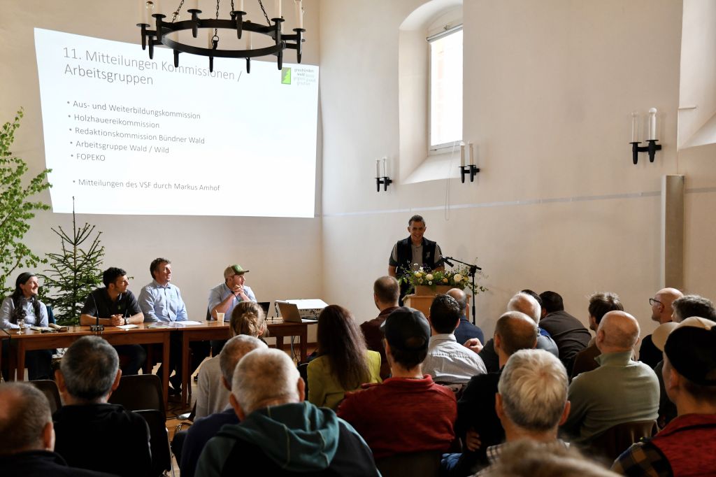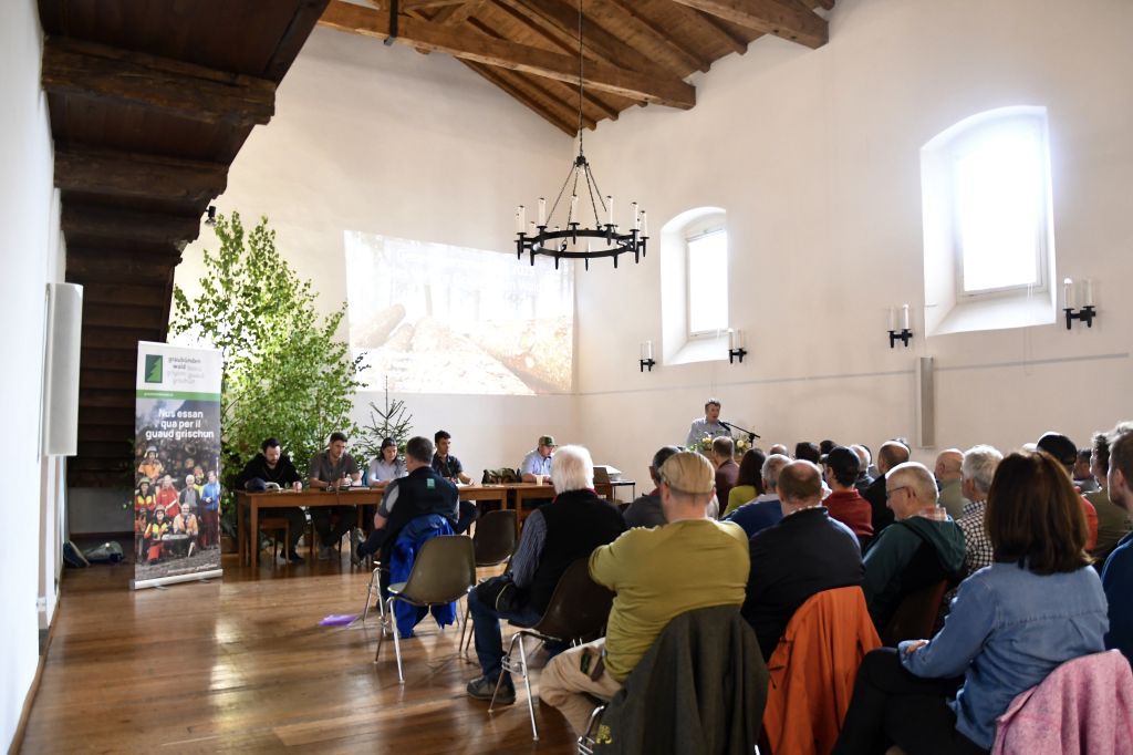 Ha esposto anche un discorso il direttore dell'Ufficio foreste e pericoli naturali del Cantone dei Grigioni, Urban Maissen: «In un tempo, in cui molte cose cambiano – il clima, la società e l’economia – rimane una costante, ossia il ruolo centrale dei nostri boschi per il nostro Cantone, per la nostra qualità di vita e per il nostro futuro». Poi continua: «Senza boschi di protezione i danni del cattivo tempo dell’estate scorsa sarebbero stati molto più gravi. Pensiamo solo alle pesanti precipitazioni e alle colate di fango in Mesolcina: il bosco con le sue radici ha evitato catastrofi ancora più grandi».