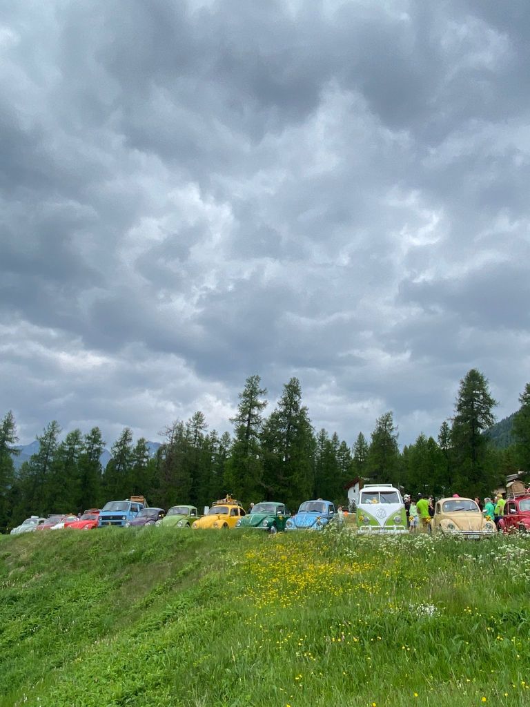 I 14 Käfer, con a bordo 49 persone, si sono dati appuntamento alle scuole di Santa Maria sabato 8 giugno alle 9.30. A Punt Murail si è aggiunto 1 Käfer con a bordo 3 persone.