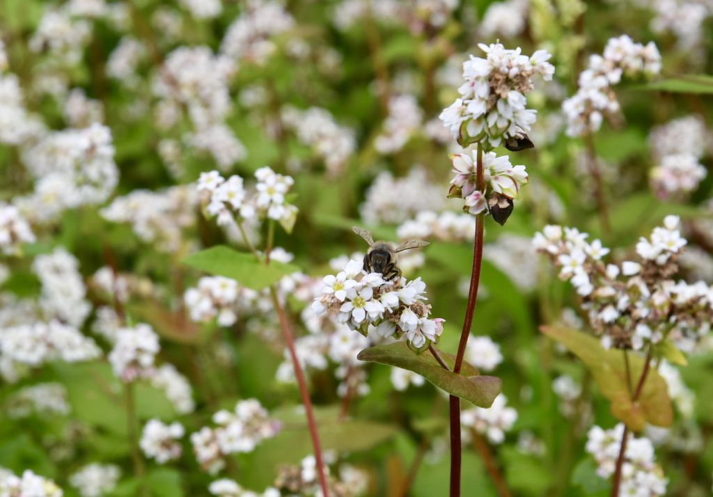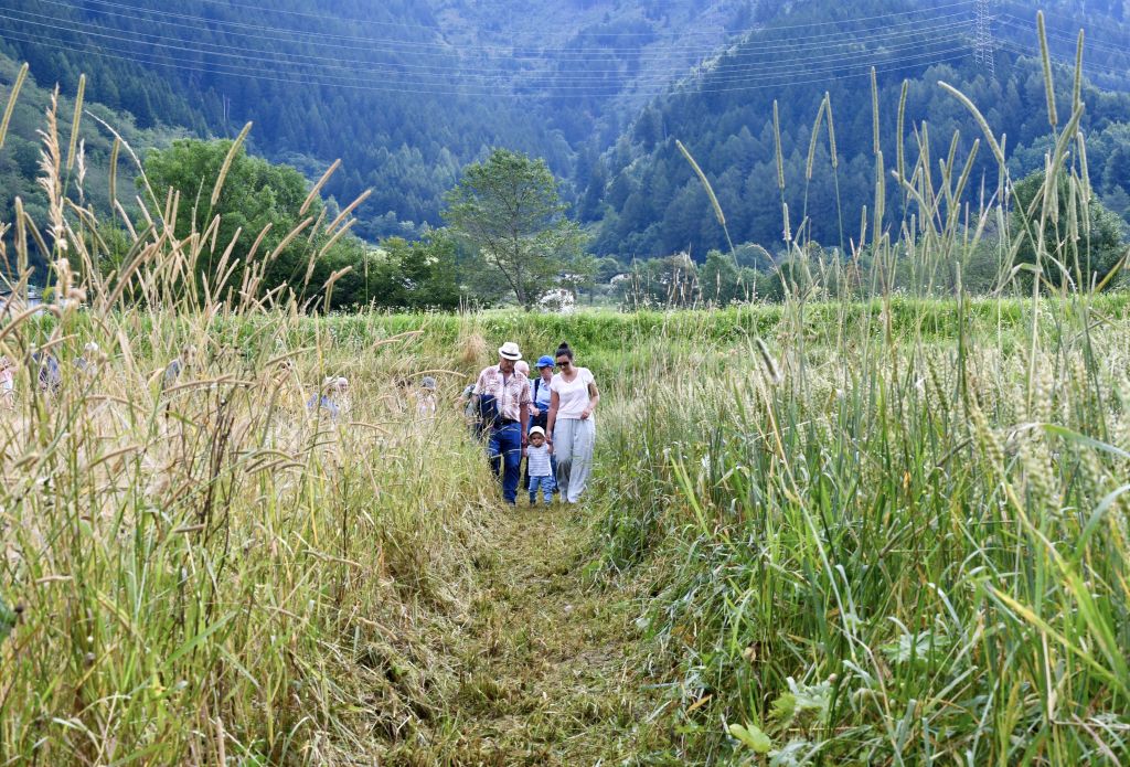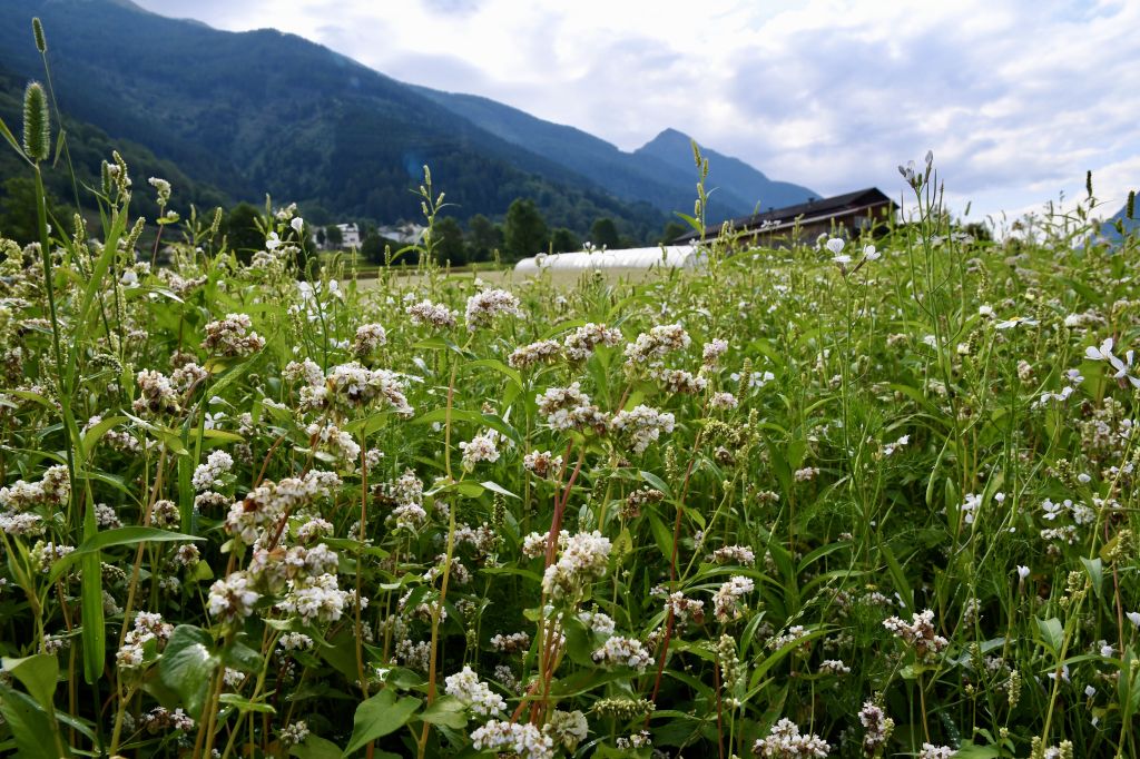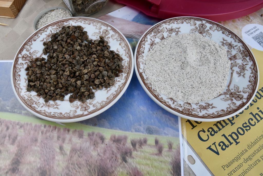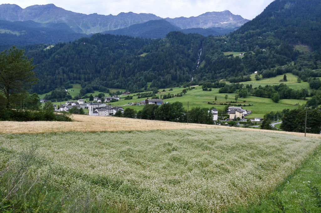 Passeggiata veramente spettacolare fra i campi di grano saraceno in fioritura e di frumento, avena, orzo, farro in maturazione.