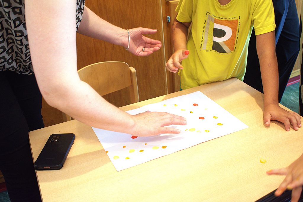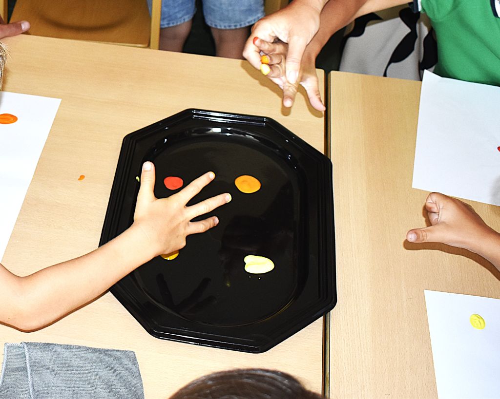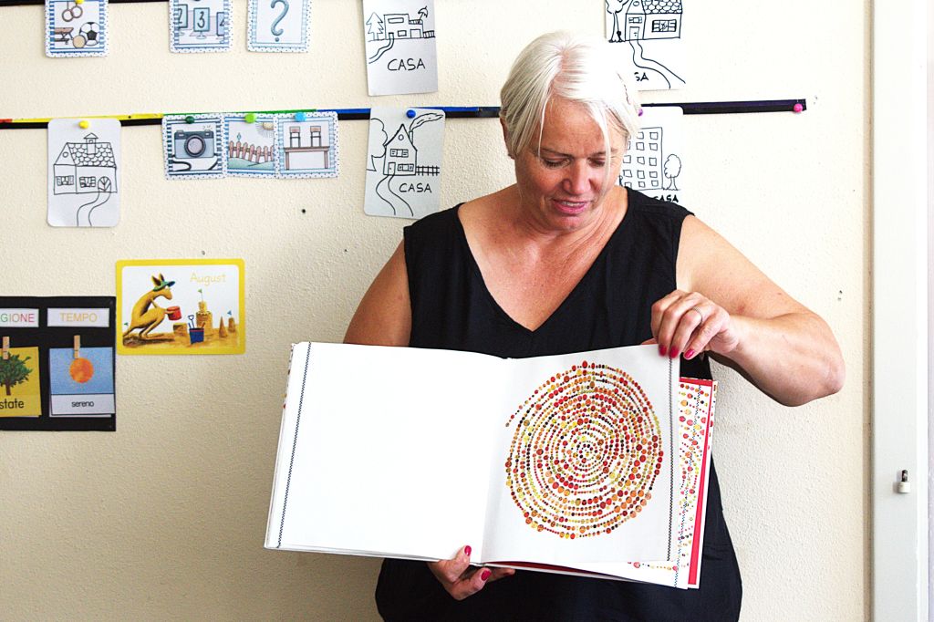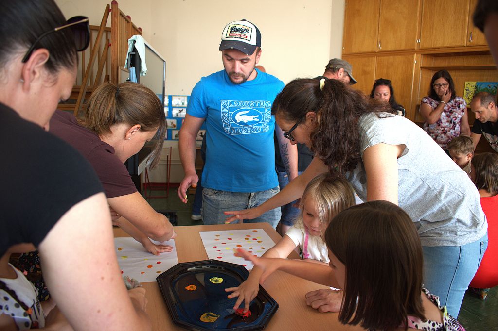 Mentre i ragazzi delle elementari si godevano la pausa, i piccoli dell' asilo si sono spostati, con i loro genitori, negli spazi della scölina per dedicarsi tutti insieme ad una significativa attività con le tempere partita dall' osservazione di un libro che racconta senza parole e parla di gentilezza, solidarietà e altruismo.