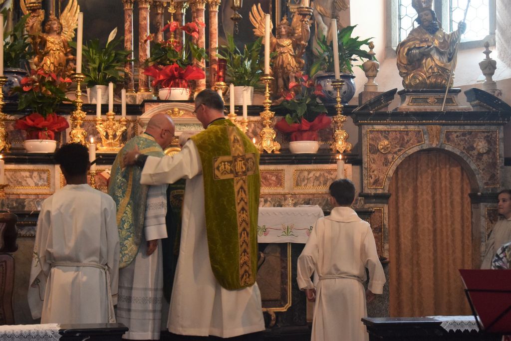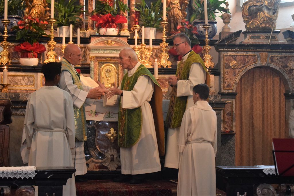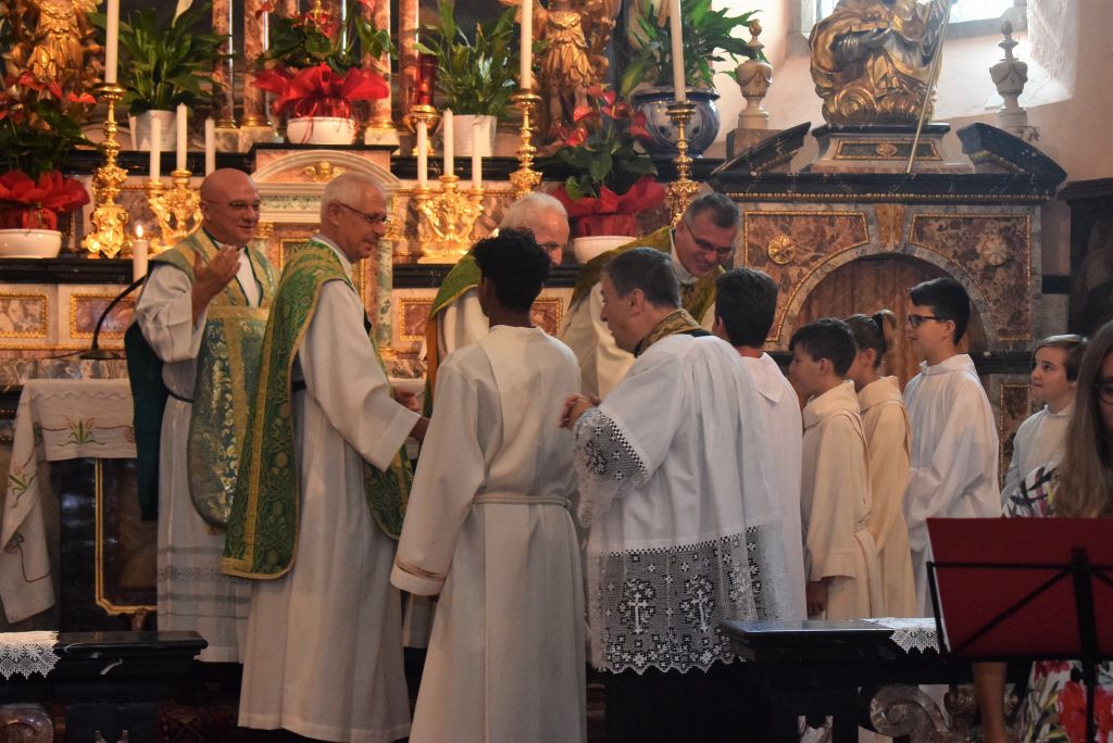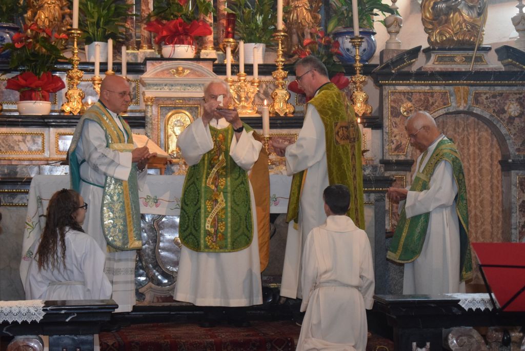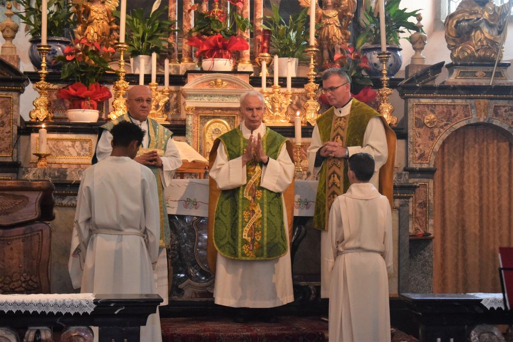 Circondato dall'affetto dei fratelli e delle sorelle, dai numerosi nipoti e pronipoti, dal nipote Don Antonio, dal parroco di S. Carlo Don Pietro, dal Padre Carmine Arice e da Don Roberto Provera della Piccola Casa della Divina Provvidenza del “Cottolengo di Torino”, da 4 Confratelli del Santissimo Sacramento e da numerosi fedeli, domenica 5 agosto 2018, Don Giusto Crameri, nato a San Carlo il 14 aprile 1939, ha festeggiato il suo 50° anniversario di Ordinazione Sacerdotale.