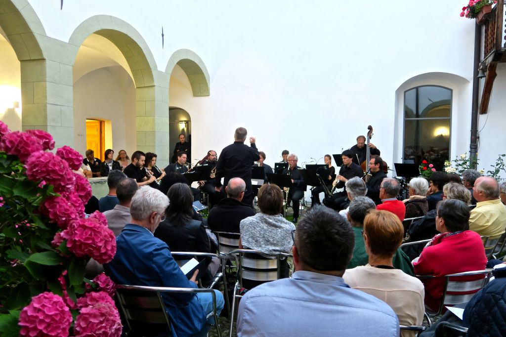 La «Filarmonica da camera dei Grigioni» si è esibita sabato scorso, 11 agosto 2018, nel chiostro del Vecchio monastero a Poschiavo. Un concerto di eccezionale qualità, dal titolo «Una serenata estiva», che consisteva nelle sublimi musiche di Wolfgang Mozart nella prima parte e Friedrich Gulda nella seconda parte, con la spettacolare esibizione della violoncellista svedese Karolina Öhman. La stellata serata d’agosto ha invogliato alla partecipazione: numeroso pubblico ha occupato il centro e tutti i lati del bellissimo chiostro con i suoi splendidi fiori.