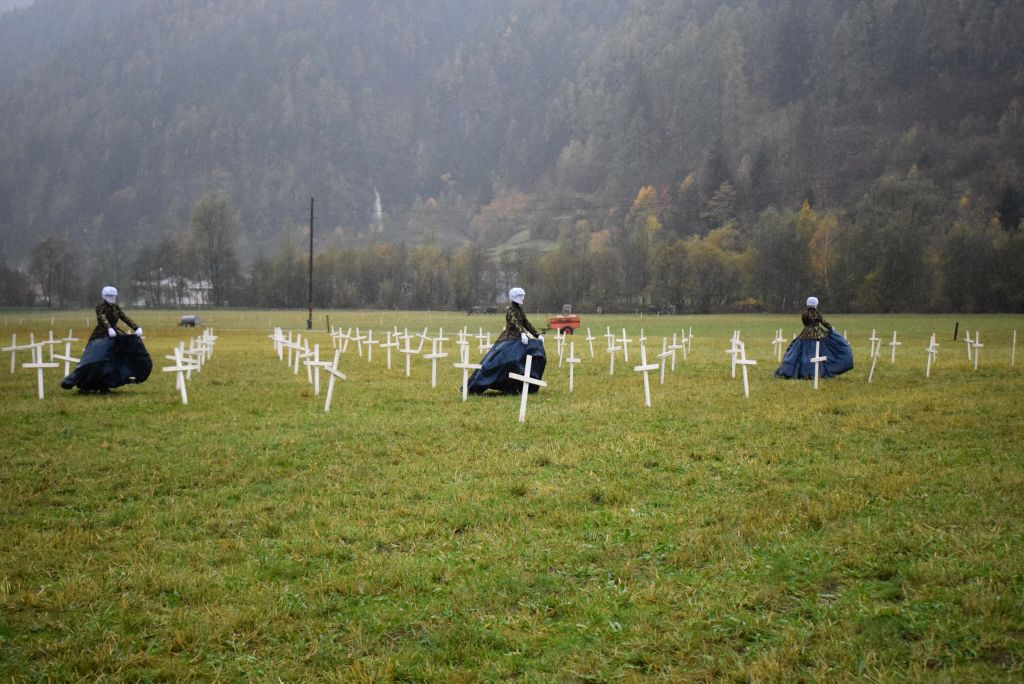 Questa mattina (28 ottobre 2018) si è svolta la performance di danza pluridisciplinare in località Pagnoncini (Praderia). L'idea della coreografia è di Rudi van der Merwe e Béatrice Graf in collaborazione con Susana Panadès Diaz e Jòzsef Trefeli. Rudi van der Merwe è nato e cresciuto a Calvinia (Sudafrica) e ha studiato teatro e francese all'università di Stellenbosch. Béatrice Graf è un'artista, batterista e compositrice che ha sviluppato nel corso degli anni il proprio suono e la propria identità e durante lo spettacolo ha suonato dal vivo.