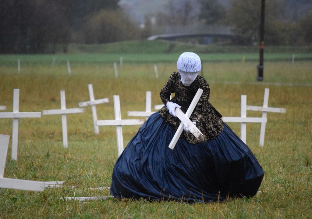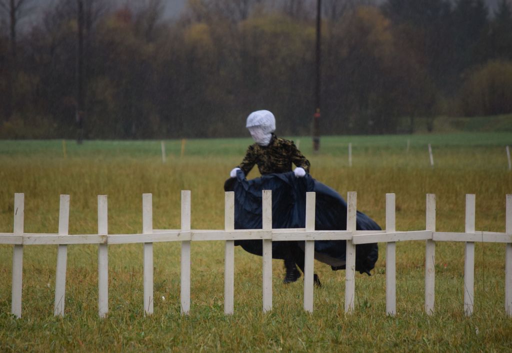 Tre figure in abiti barocchi hanno lentamente attraversato il palcoscenico campestre in direzione del pubblico. La performance si è sviluppata su una grande profondità (su una distanza di 300 metri) giocando con le prospettive. La pioggia battente non ha di certo guastato lo spettacolo, anzi per certi versi lo ha arricchito donando un'atmosfera intensa, cupa e riflessiva. Trophée è stato portato in tutto il mondo (Sudafrica, Germania, Italia etc) con le più svariate condizioni climatiche. Béatrice Graf spiega: "I vestiti qui sono stati resi pesanti dalla pioggia ma siamo molto felici di essere in Valposchiavo. Questa è una regione davvero magnifica. Attualmente sono state svolte venti rappresentazioni in cinque/sei paesi diversi. La tematica è costituita dai trofei, siano essi di caccia, militari o la donna stessa come trofeo etc. Lasciamo al pubblico la libera interpretazione".