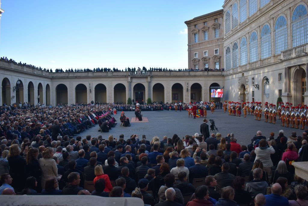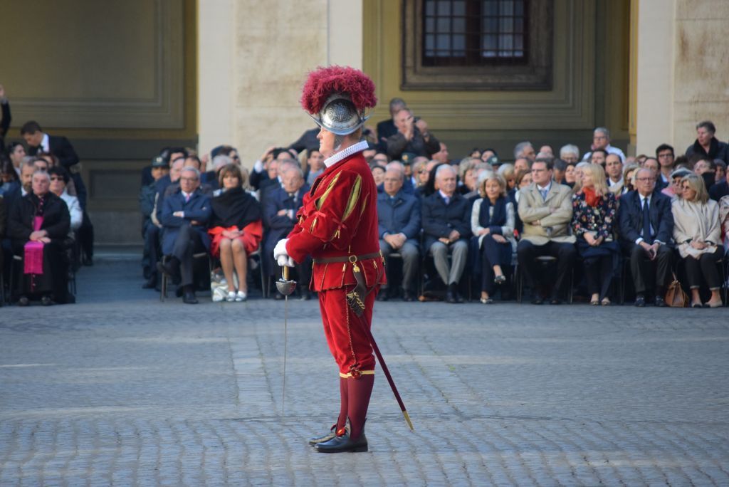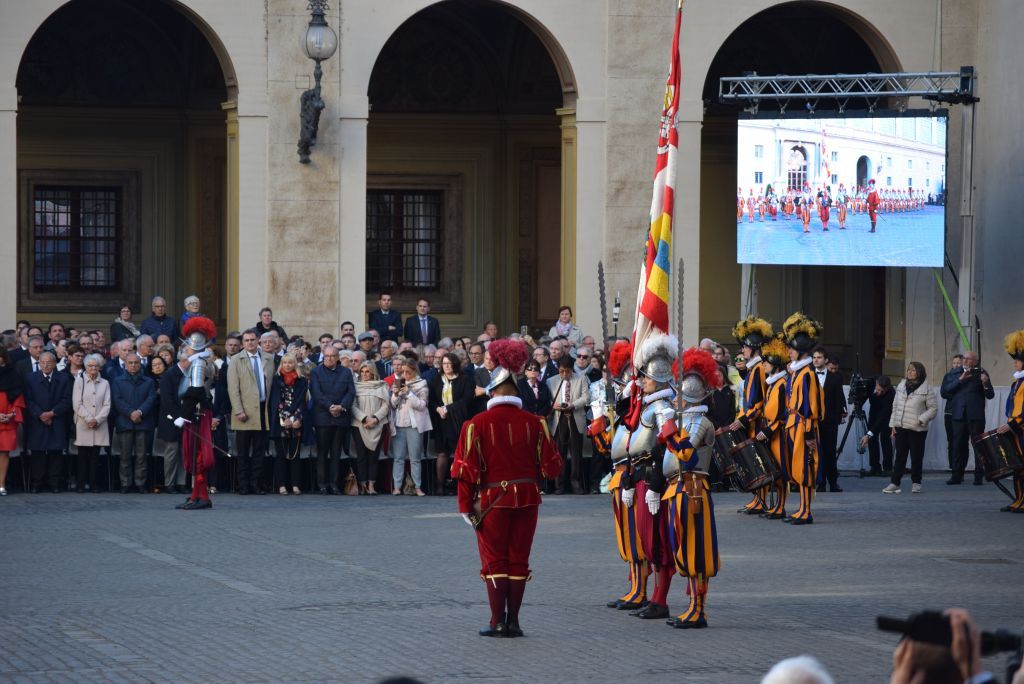 Lunedì 6 maggio alle ore 17.00, nel cortile San Damaso alla presenza degli ufficiali della Segreteria di Stato, delle Autorità Civili e Militari, Samuele Menghini, con altri 22 commilitoni ha prestato solenne giuramento presso il Corpo delle Guardie Svizzere Pontificie. Eccovi cari lettori le foto del bellissimo e significativo momento e il video.
