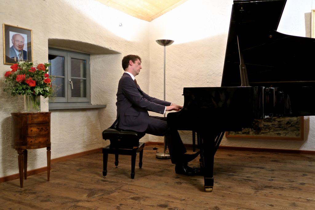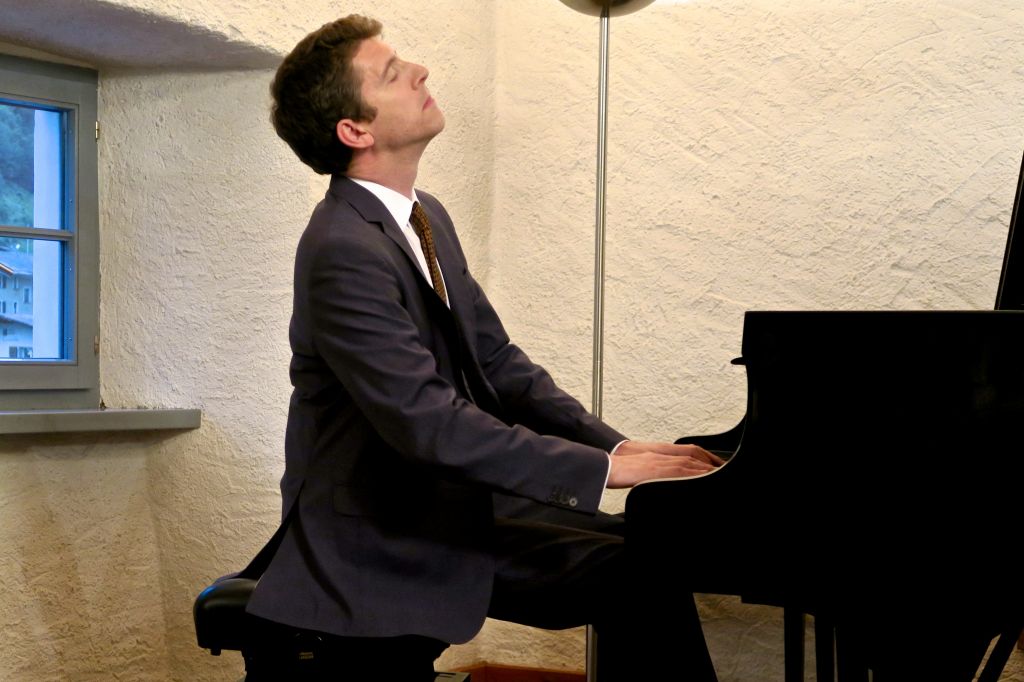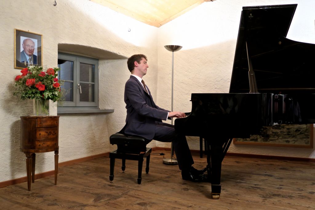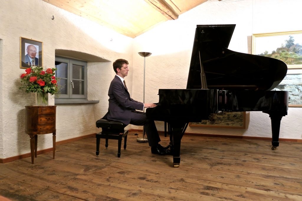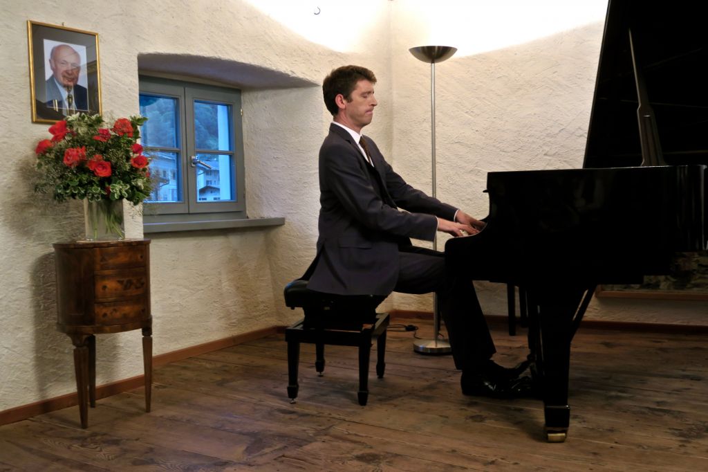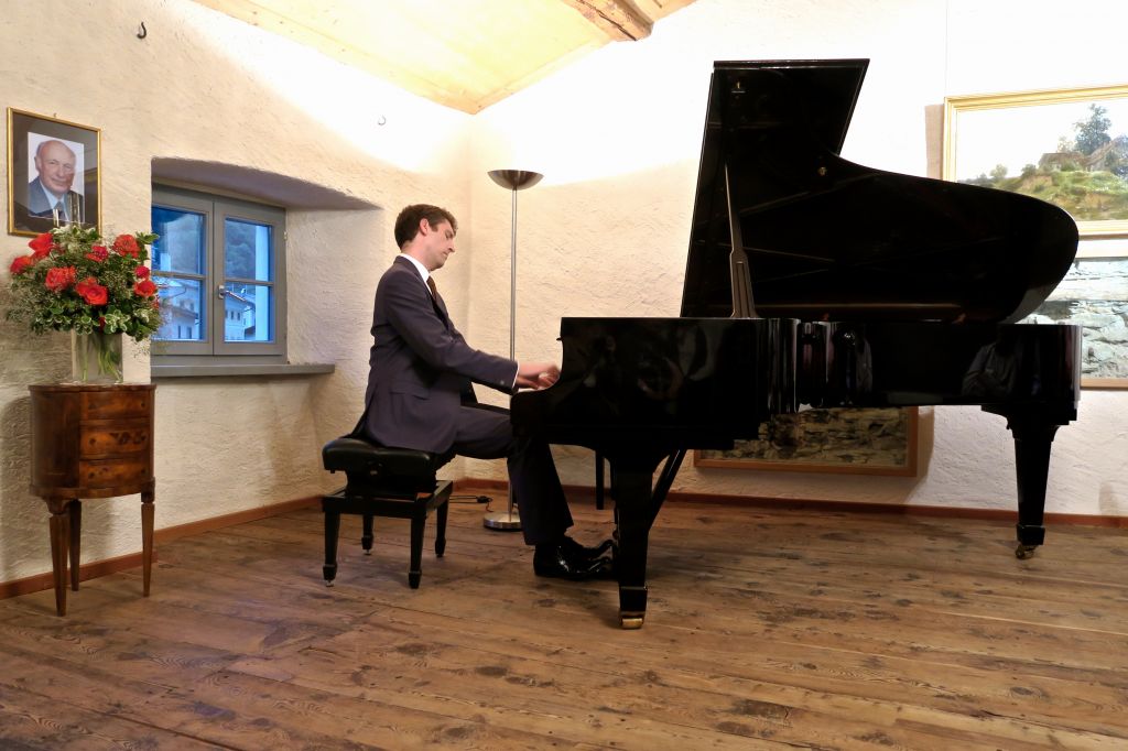 Grazie a Casa Console, Museo d’Arte, ancora una volta Poschiavo ha avuto il privilegio di vedere e ascoltare un artista di grande notorietà mondiale. La catena di collegamento di questo privilegio ha origini poschiavine, per la precisione presiensi. Infatti Anna Lardi Fogarty (di Vera e Massimo) è direttrice esecutiva del centro concertistico «Music for Galway» (Irlanda), del quale Finghin Collins ne è direttore artistico.