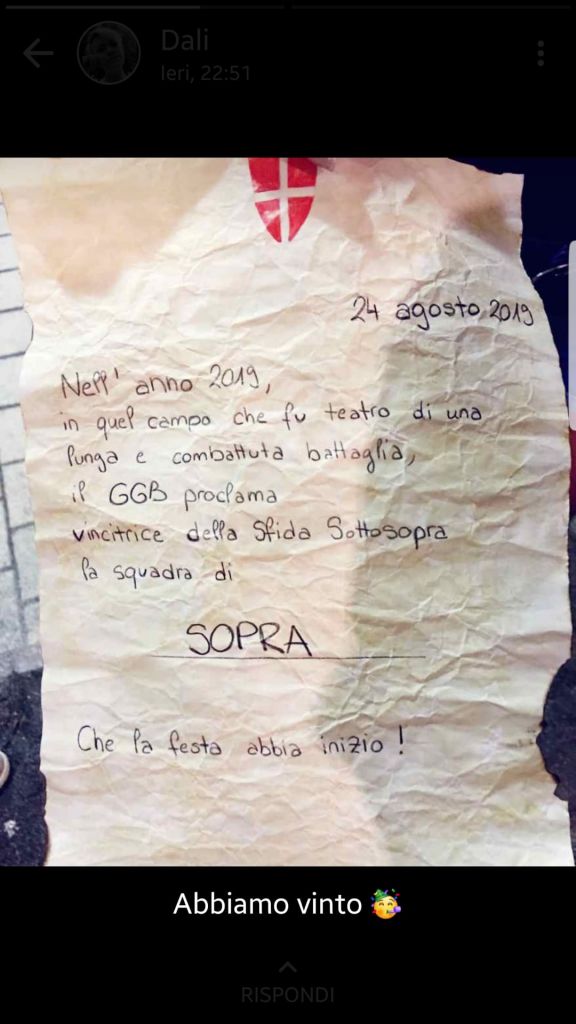 Contrada di Sopra la squadra vincitrice del Palio delle Contrade 2019
