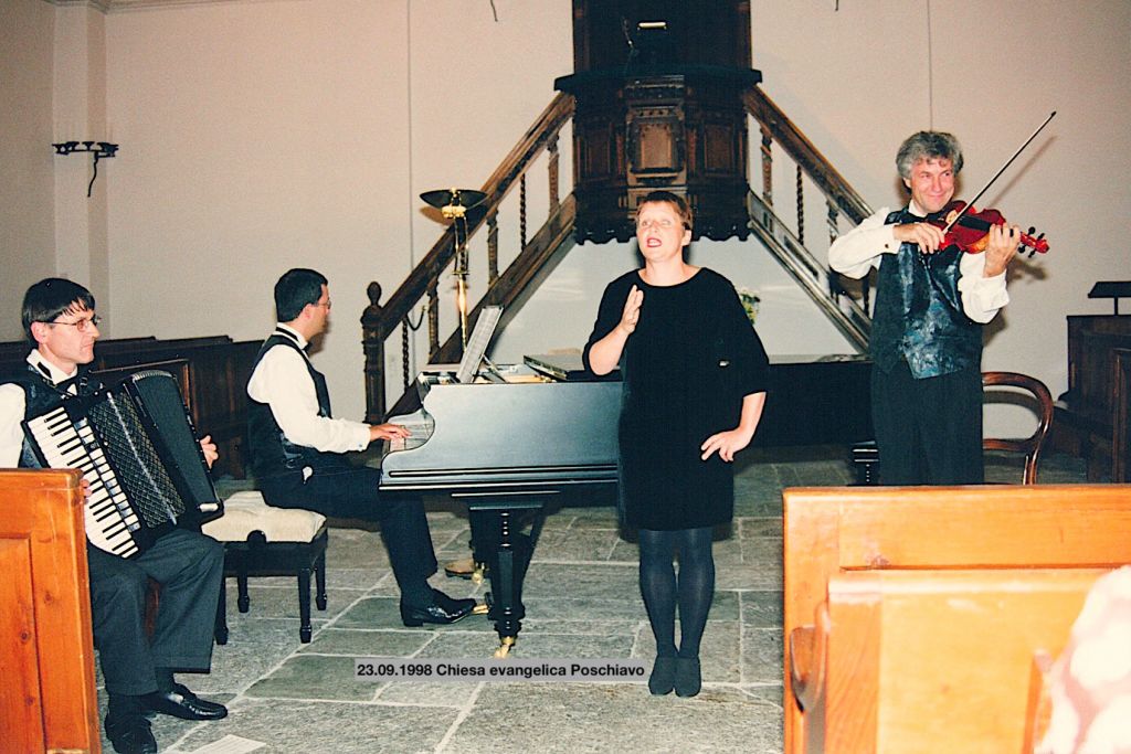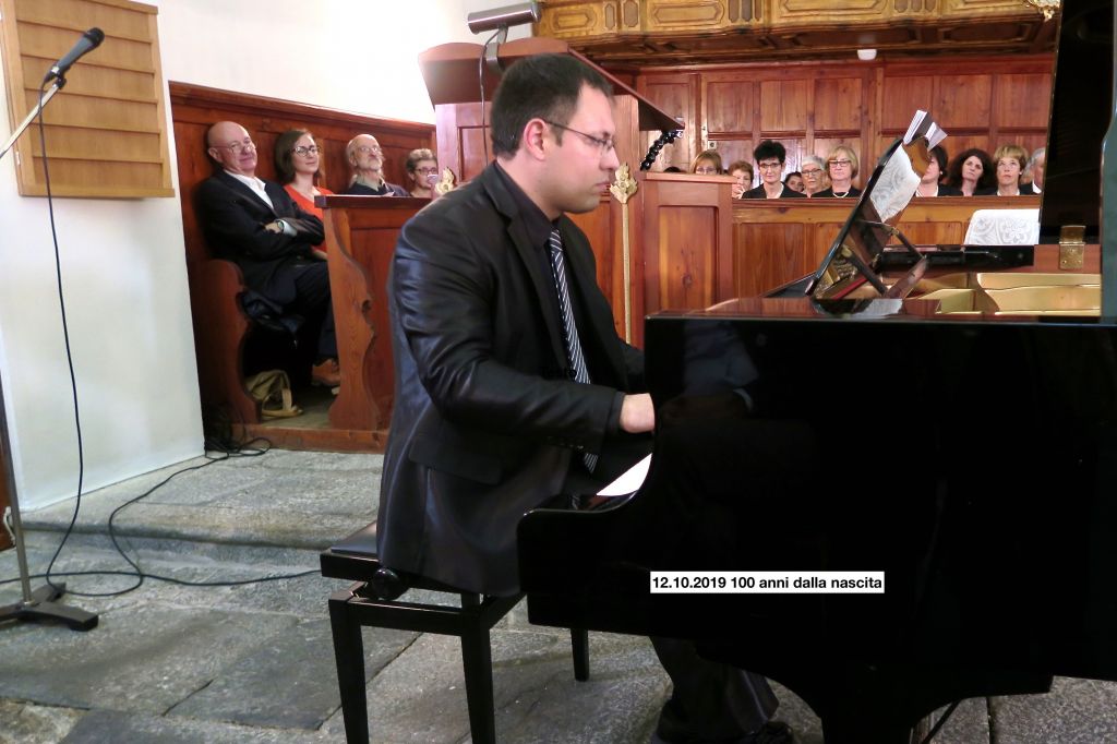 In occasione della manifestazione concertistica per ricordare il centesimo anno della morte del Nostro, la chiesa evangelica di Brusio era stipata fino al limite di gente, accorsa per onorare la memoria di Remigio Nussio. Il saluto ufficiale della famiglia è stato espresso da Arianna, mentre i brani sono stati presentati da Roberto. Il programma comprendeva sei brani al pianoforte con Moreno Pozzi, che è anche l’organista della citata chiesa. Sono seguite sei canzoni con la cantante Daniela De Francesco, accompagnata al pianoforte sempre da Moreno Pozzi. Quindi è intervenuto il Coro Misto Poschiavino, sotto la direzione di Valter Mazzoni, con due brani. Dulcis in fundo è ancora Moreno Pozzi che ci ha rallegrato con sei brani, brillantemente eseguiti tramite l’eccellente organo Serassi. Insomma una serata tutta dedicata alle indimenticabili composizioni di Remigio Nussio. C’è stato anche un intervento di Nando Nussio, che ha declamato una sua poesia redatta in giovane età, dal titolo «Mia terra».