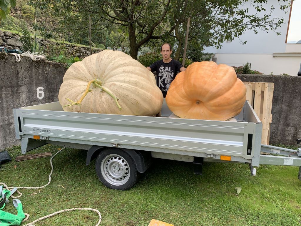La famiglia Muscas vive in Engadina da molti anni, ma i genitori della moglie di Alessio Muscas sono entrambi originari di Brusio. Loro hanno a Brusio un orto dove Alessio può coltivare le sue zucche e compiere i suoi esperimenti. Questa sua grande passione, unita a tanta pazienza e determinazione, lo hanno premiato proprio quest’anno: due delle sue tante zucche piantate a Brusio hanno raggiunto una il peso di 192,8 kg e l’altra addirittura il peso di 465 kg. Con la zucca da 465 kg Alessio si è aggiudicato il 3° premio nella competizione tenutasi nella Jucker Farm a Jona (Canton San Gallo).