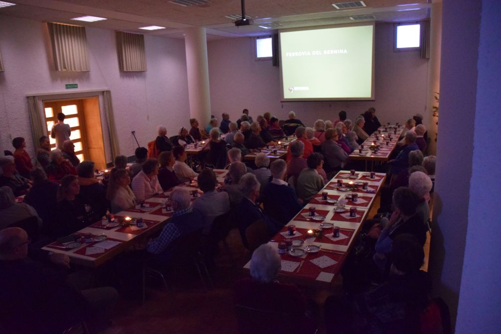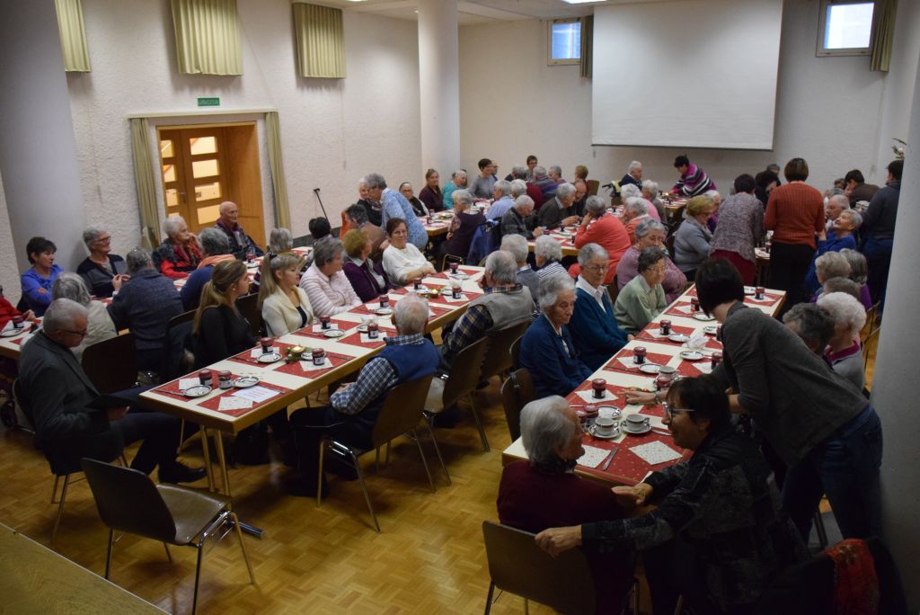 Le festività natalizie sono alle porte, e come da tradizione nella sala del centro parrocchiale è stata organizzata una festa molto bella e significativa, un pomeriggio tutto dedicato agli anziani. Non c’è che dire, per l’ennesima volta, Katia, Isabelle e le preziose aiutanti si sono date un gran da fare per far felici gli anziani intervenuti alla festa. Sono infatti un’ottantina le persone che hanno accettato con piacere l’invito: ospiti del Centro Sanitario Valposchiavo -Casa Anziani e Ospedale San Sisto- con gli accompagnatori, ma anche anziani che vivono ancora a casa.