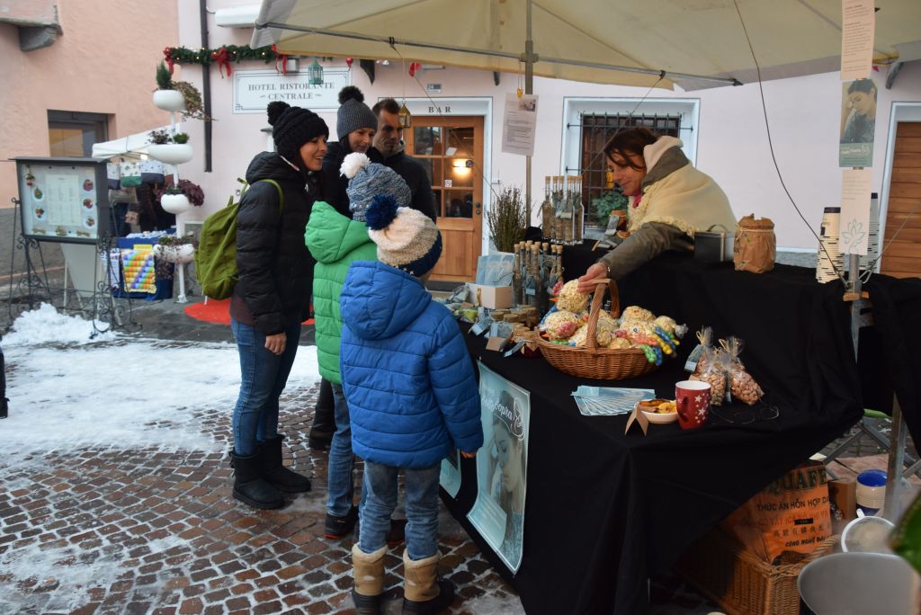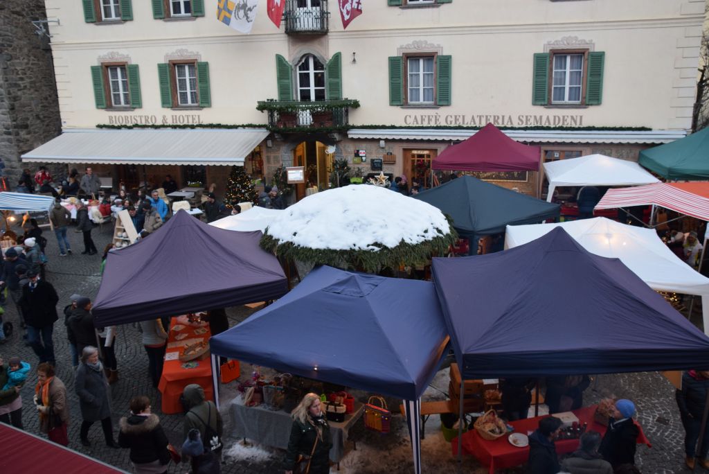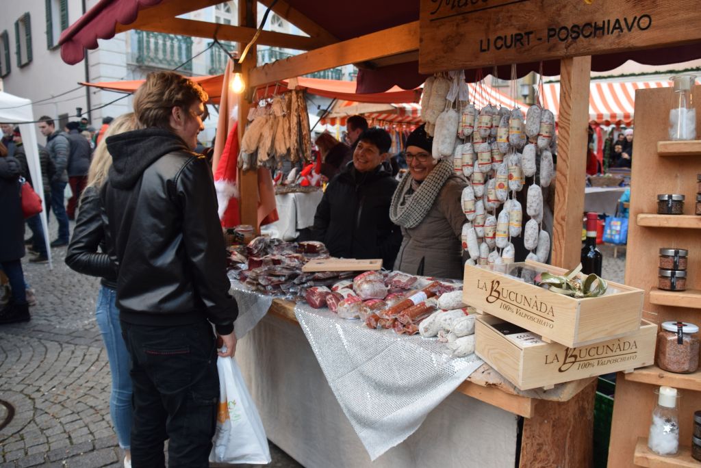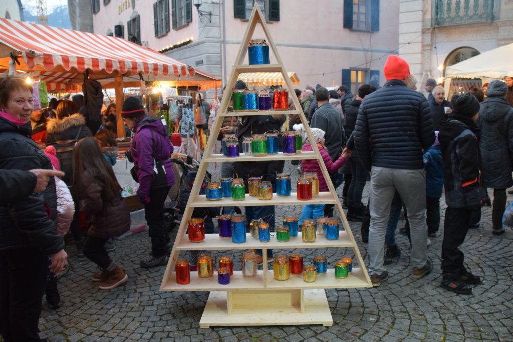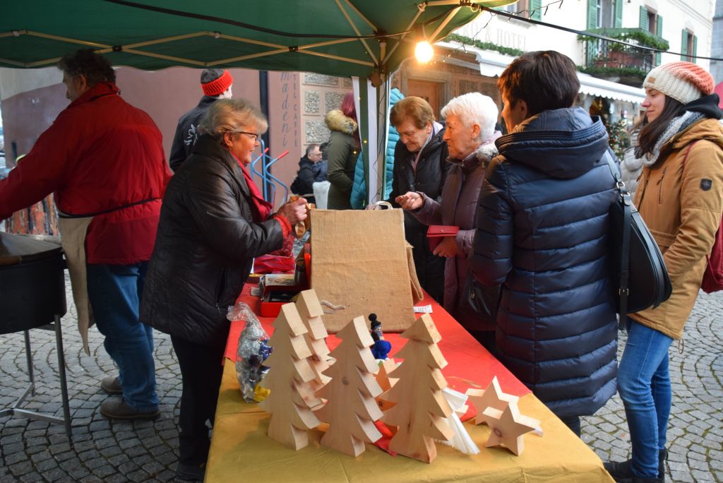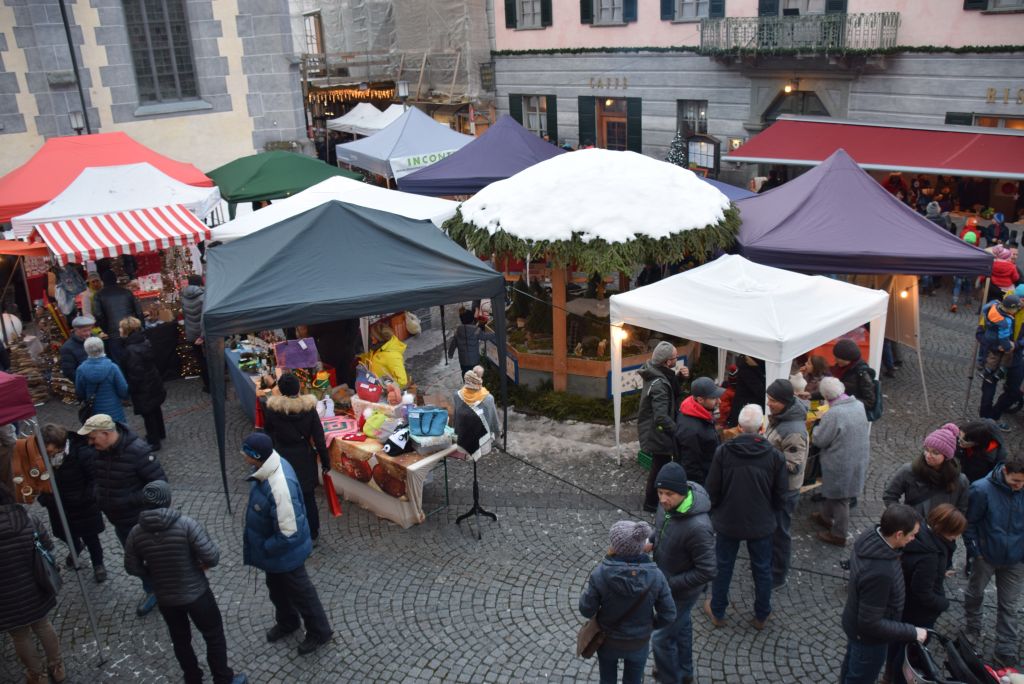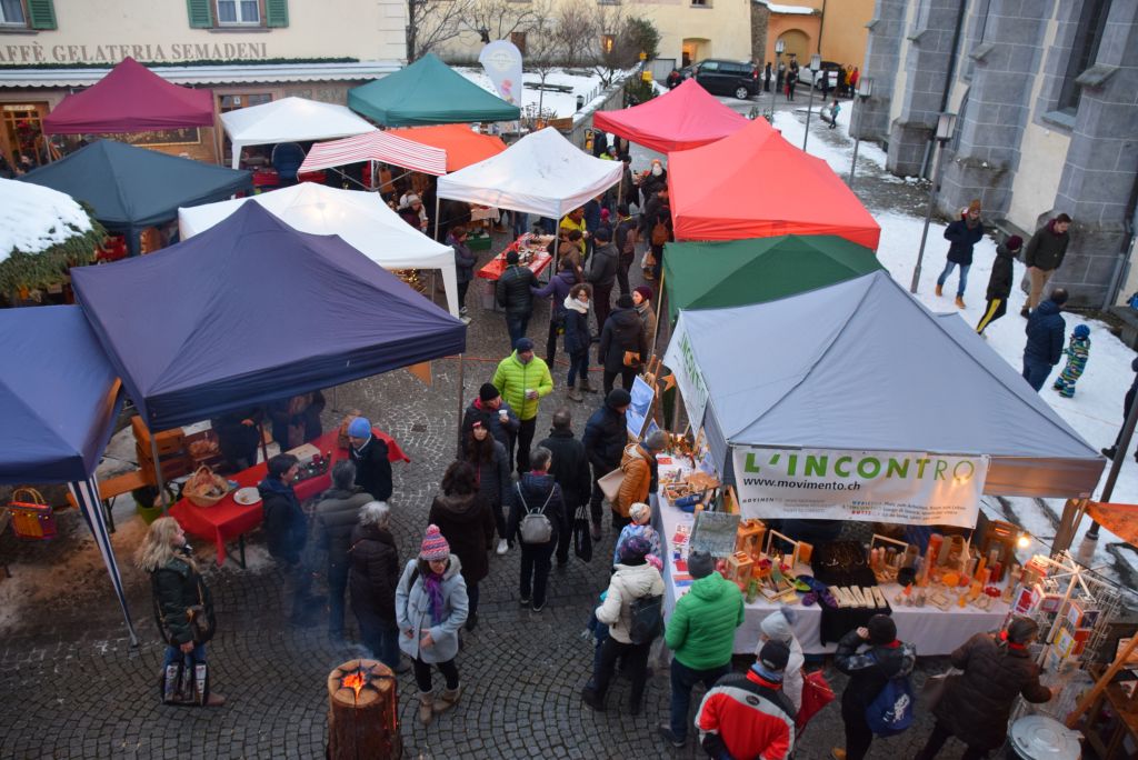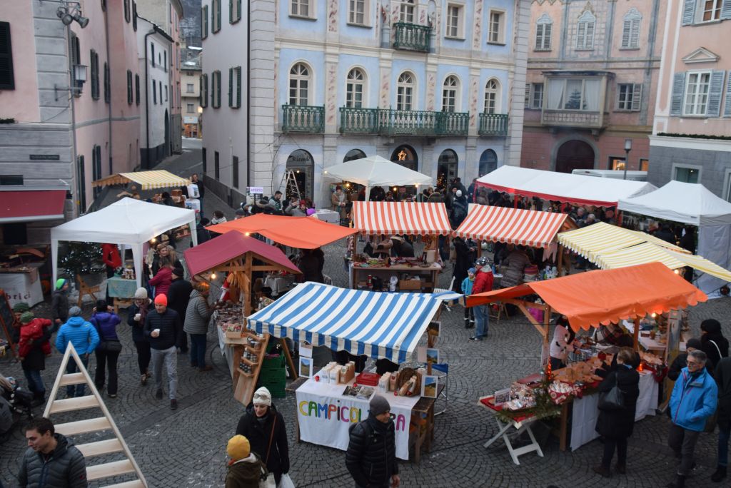 Molta la gente che oggi ha deciso di fare un giro tra le bancarelle dell'atteso mercatino natalizio di Poschiavo. Come ogni anno le gente ha potuto acquistare tanti prodotti artigianali, manufatti, candele, vini, liquori, salumi, marmellate, miele, formaggi, biscotti, panettoni e quant'altro. Nonostante la giornata non fosse per niente fredda, i più freddolosi hanno potuto riscaldarsi con un buon bicchiere di vin brulè, tè o cioccolata calda, non sono mancati i dolci tipici: "i turtelin da pom", "i berliner" caldi alla marmellata, le caldarroste, i biscotti di Natale, lo zucchero filato etc. I più piccoli hanno potuto dipingere sulla tela e farsi decorare il viso. Presente per le vie del Borgo l'immancabile San Nicolao. Quest'anno le lanterne dei bambini della SI di Le Prese e di Poschiavo sono state sistemate all'interno di due sagome in legno a forma di albero di Natale.