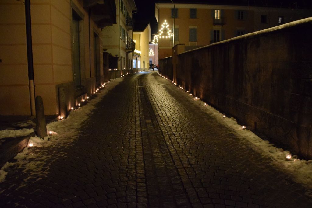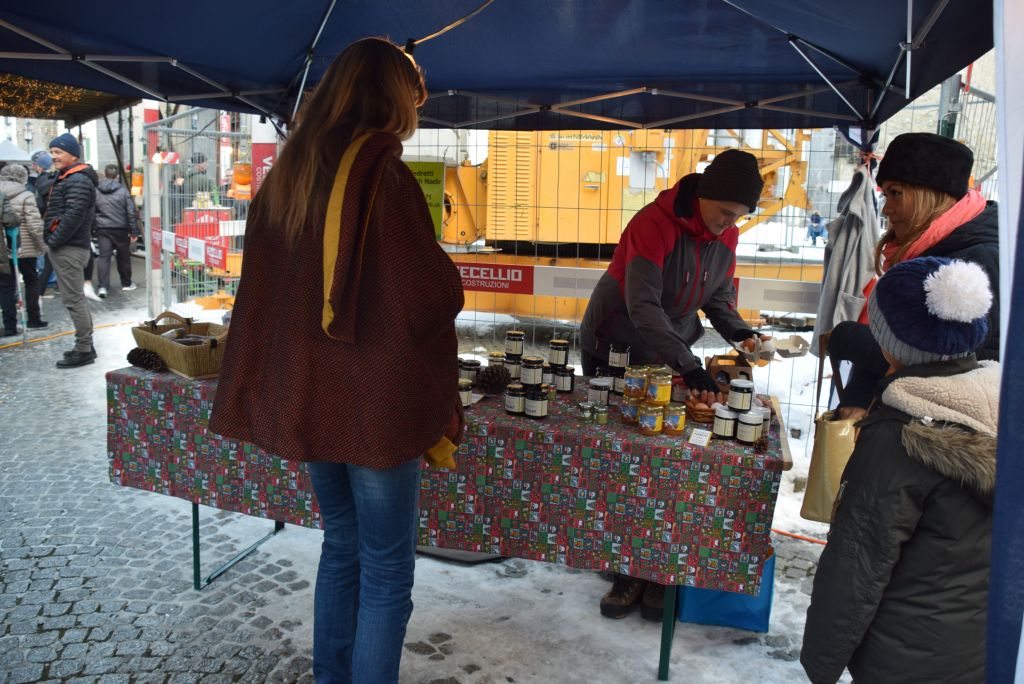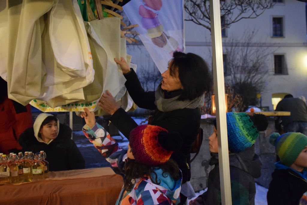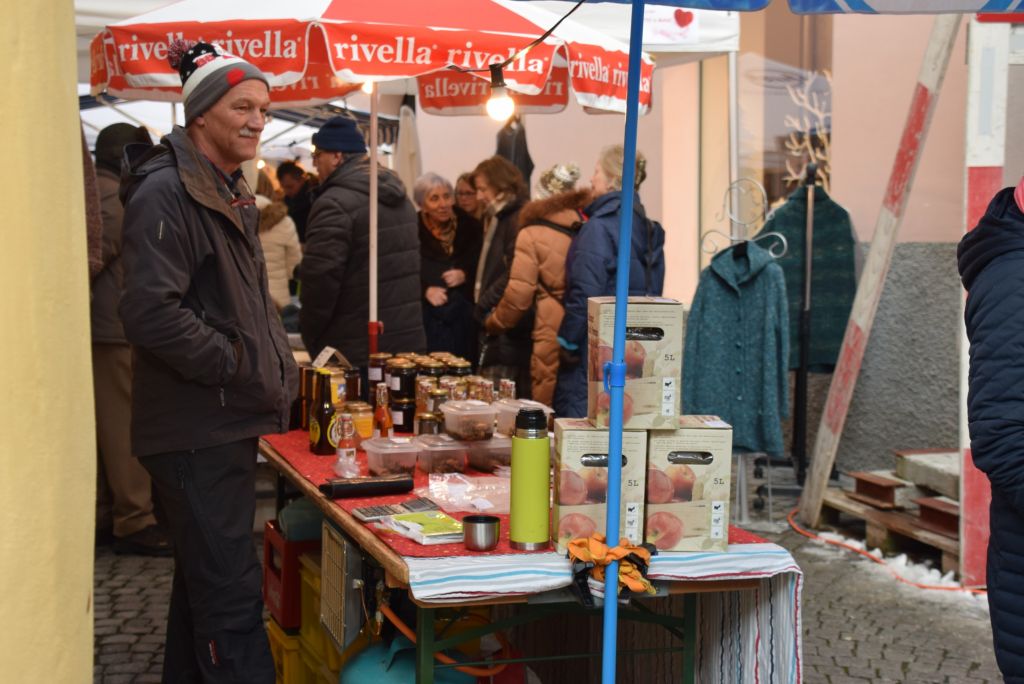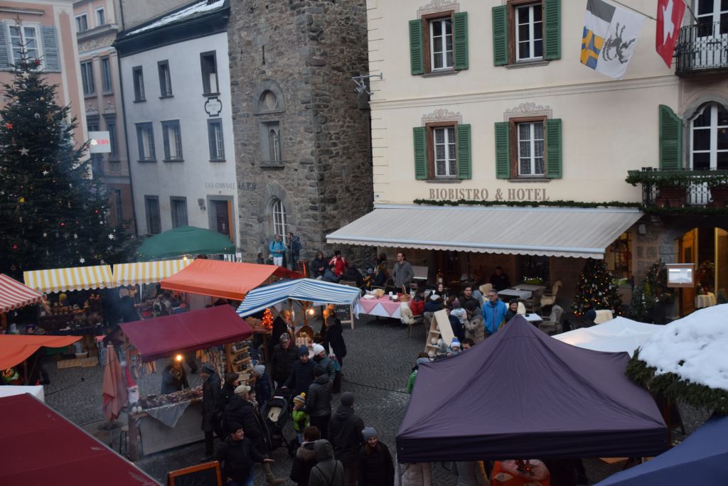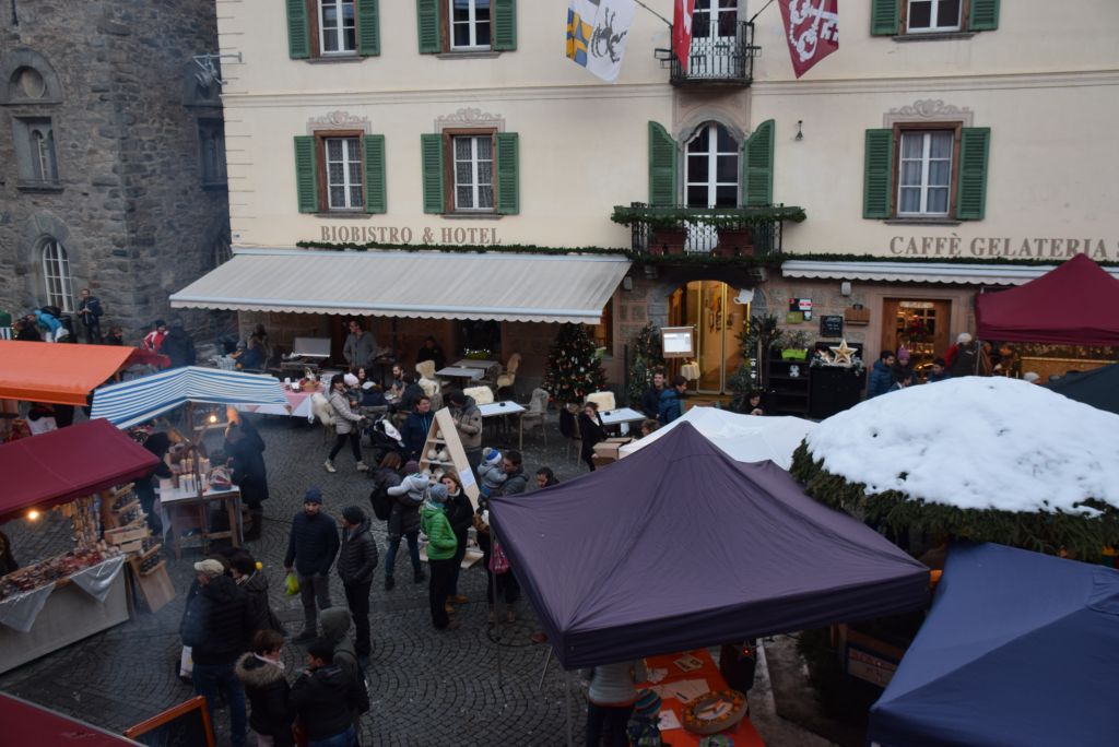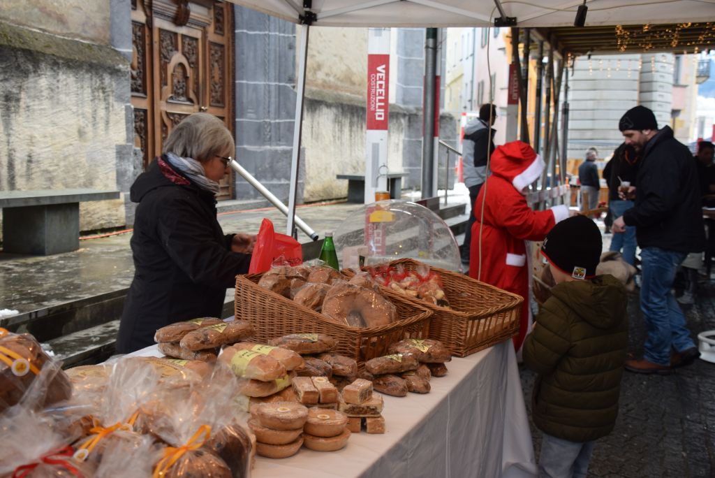 Molta la gente che oggi ha deciso di fare un giro tra le bancarelle dell'atteso mercatino natalizio di Poschiavo. Come ogni anno le gente ha potuto acquistare tanti prodotti artigianali, manufatti, candele, vini, liquori, salumi, marmellate, miele, formaggi, biscotti, panettoni e quant'altro. Nonostante la giornata non fosse per niente fredda, i più freddolosi hanno potuto riscaldarsi con un buon bicchiere di vin brulè, tè o cioccolata calda, non sono mancati i dolci tipici: "i turtelin da pom", "i berliner" caldi alla marmellata, le caldarroste, i biscotti di Natale, lo zucchero filato etc. I più piccoli hanno potuto dipingere sulla tela e farsi decorare il viso. Presente per le vie del Borgo l'immancabile San Nicolao. Quest'anno le lanterne dei bambini della SI di Le Prese e di Poschiavo sono state sistemate all'interno di due sagome in legno a forma di albero di Natale.