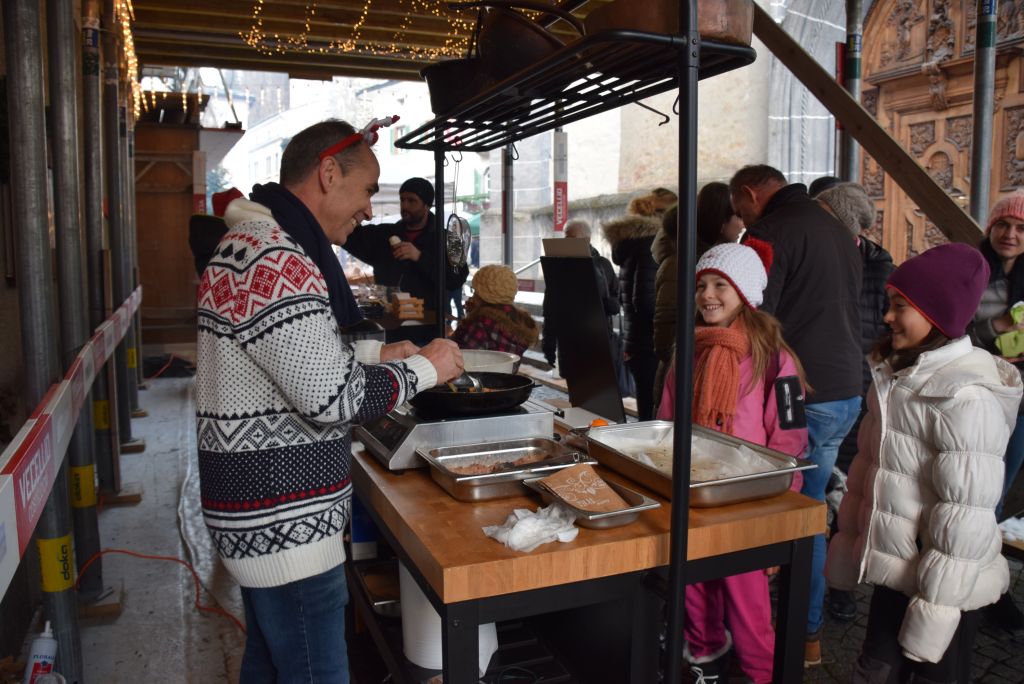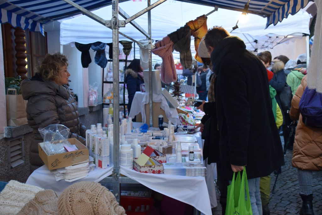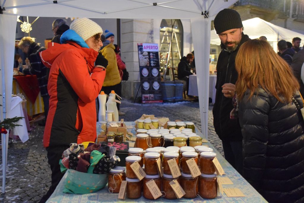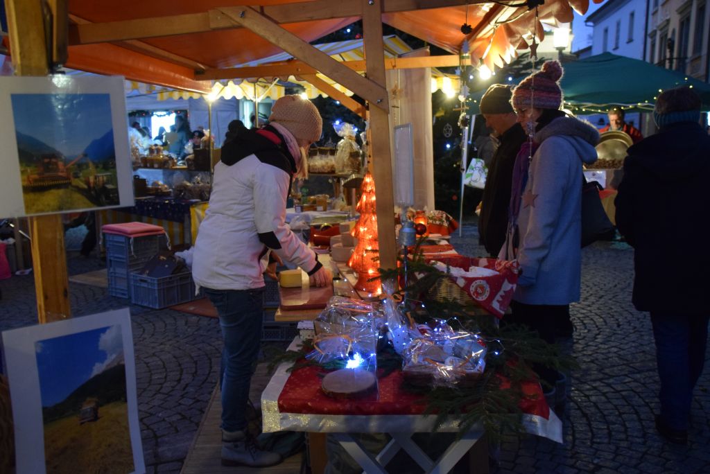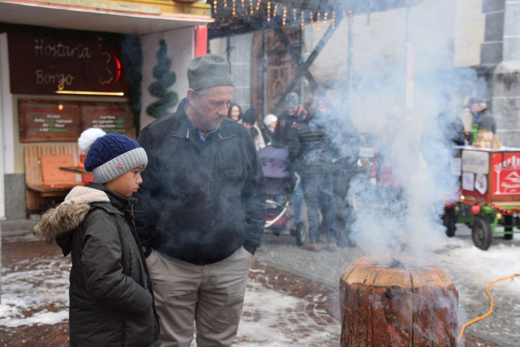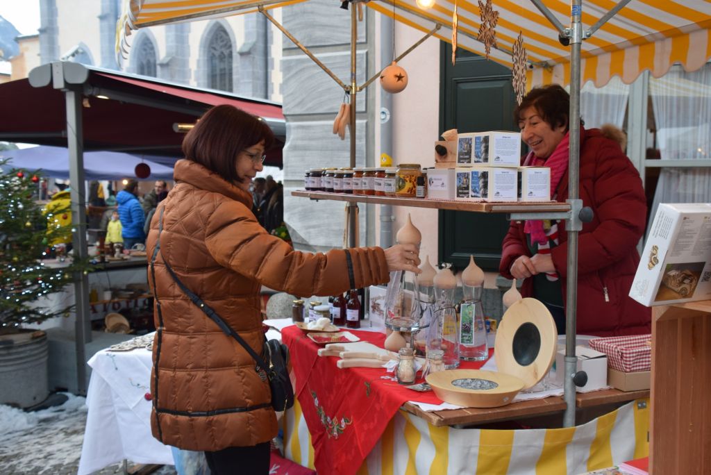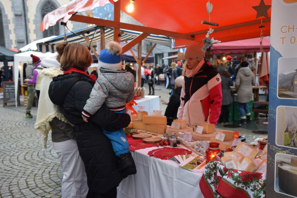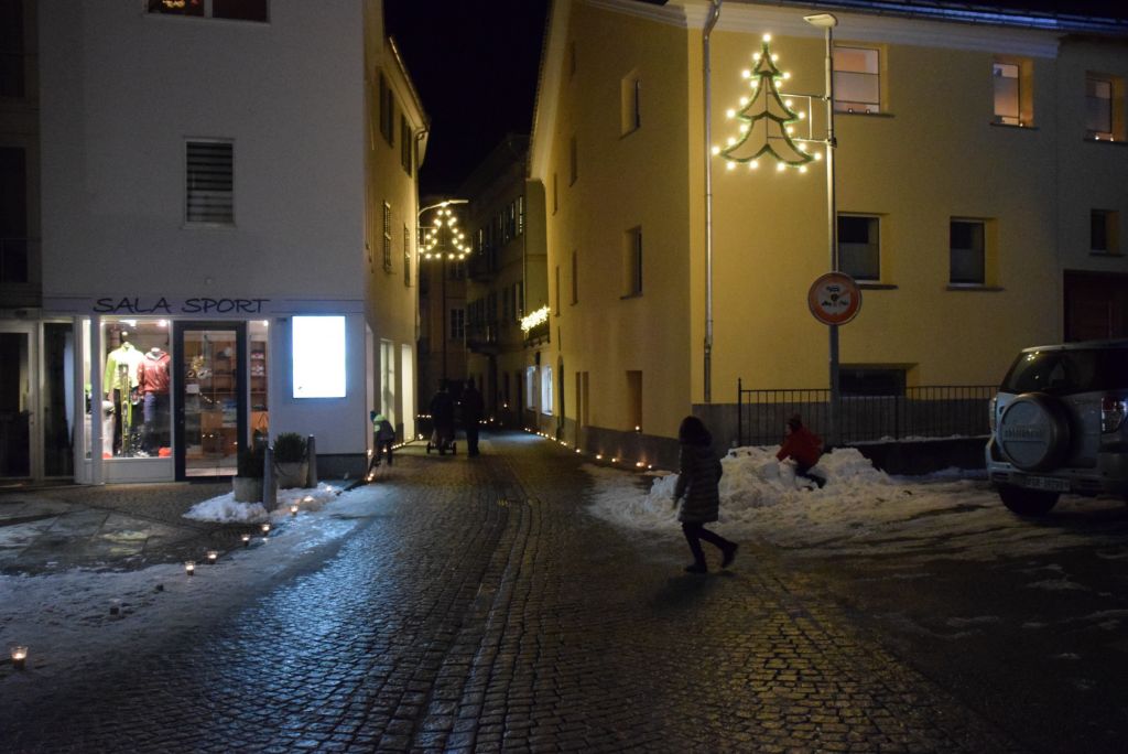 Molta la gente che oggi ha deciso di fare un giro tra le bancarelle dell'atteso mercatino natalizio di Poschiavo. Come ogni anno le gente ha potuto acquistare tanti prodotti artigianali, manufatti, candele, vini, liquori, salumi, marmellate, miele, formaggi, biscotti, panettoni e quant'altro. Nonostante la giornata non fosse per niente fredda, i più freddolosi hanno potuto riscaldarsi con un buon bicchiere di vin brulè, tè o cioccolata calda, non sono mancati i dolci tipici: "i turtelin da pom", "i berliner" caldi alla marmellata, le caldarroste, i biscotti di Natale, lo zucchero filato etc. I più piccoli hanno potuto dipingere sulla tela e farsi decorare il viso. Presente per le vie del Borgo l'immancabile San Nicolao. Quest'anno le lanterne dei bambini della SI di Le Prese e di Poschiavo sono state sistemate all'interno di due sagome in legno a forma di albero di Natale.
