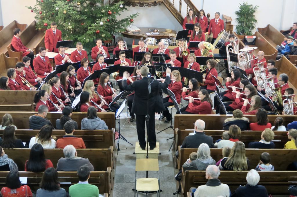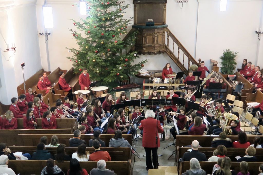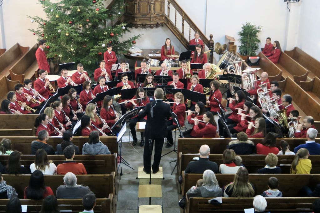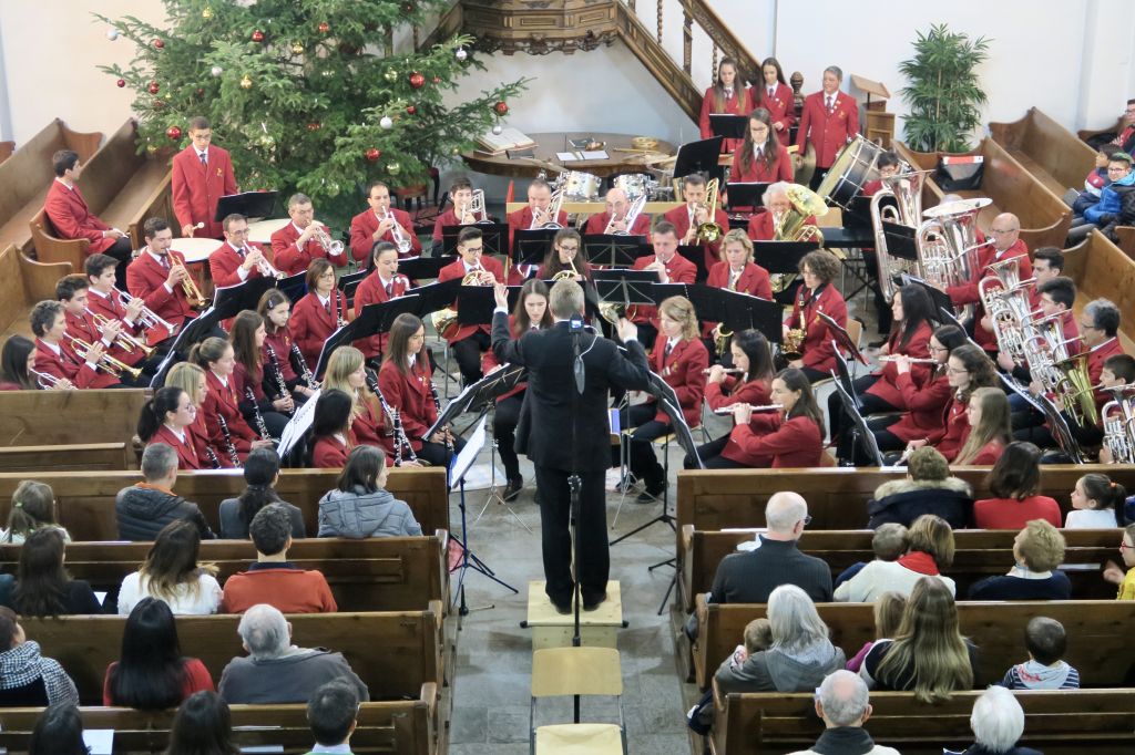 Buona partecipazione di pubblico al concerto di Natale della Filarmonica comunale Poschiavo nella chiesa evangelica di Poschiavo, 26 dicembre 2019. Due i gruppi bandistici: dapprima la Banda Giovanile e quindi la Filarmonica. Non sono mancate le sorprese, sia dell’una che dell’altra banda.