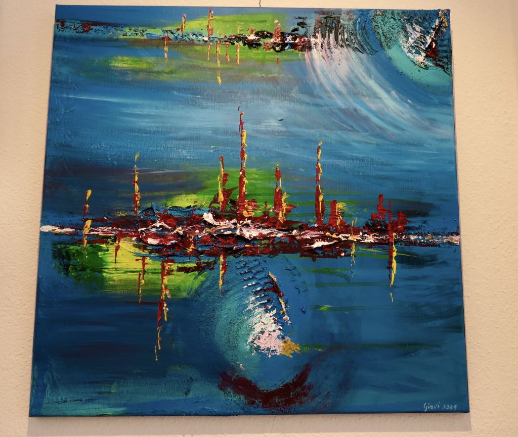 Giovanna Vassella è un’artista molto particolare perché in effetti ha iniziato con la ginnastica, passata inseguito alla danza, al teatro e all’arte figurativa. Insomma un mix di attività artistiche dove non manca la fantasia, specialmente nella pittura e nella composizione di oggetti figurativi. Tutto ciò lo si evince proprio dalla sua prima esposizione personale, appunto quella in Galleria Pgi, dove in un primo approccio salta all’occhio la vivacità e la brillantezza dei colori. Ma da dove viene tutta questa sua vivacità di artista fantasiosa. Beh, quando mi ha parlato delle sue origini ho capito da dove proviene la sua congenialità; Giovanna è una ticinese di origini napoletane.
