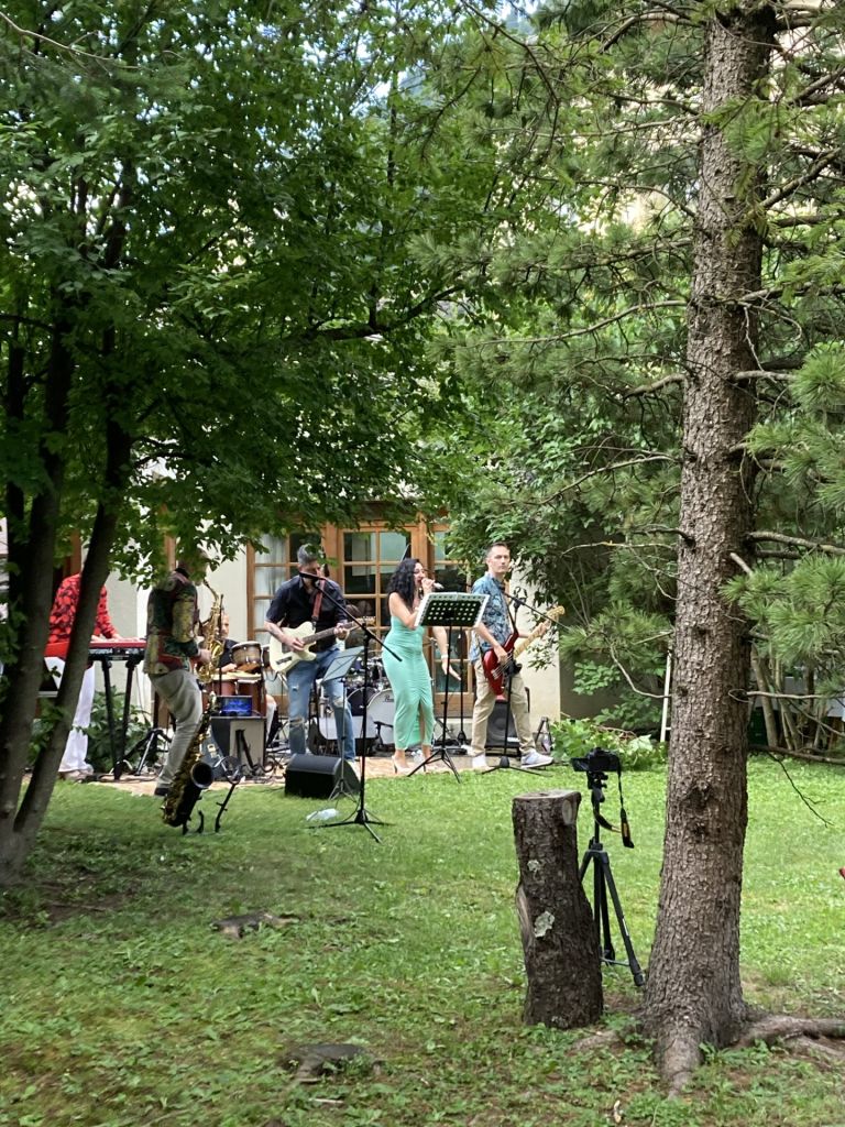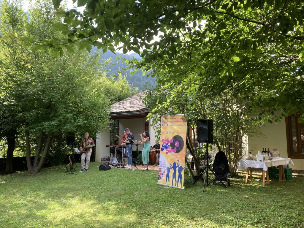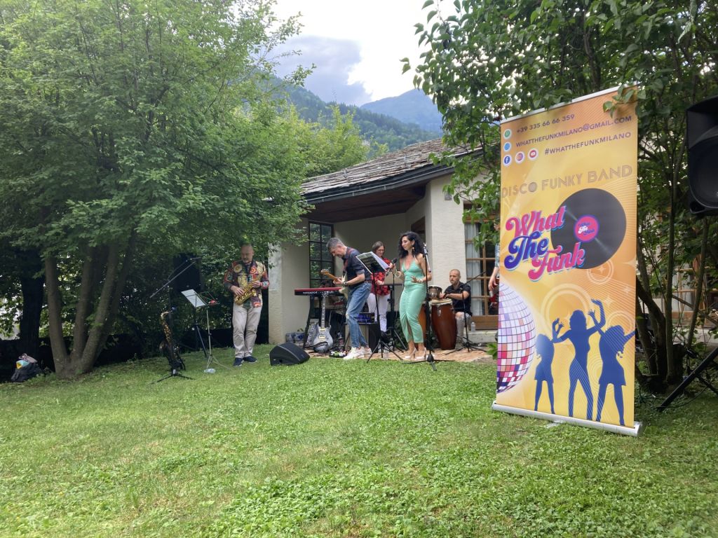 Iniziata sabato 15 luglio la rassegna "Giardini incantati" nel giardino-boschetto dell'Atelier di Silvia e Wolfgang Hildesheimer. A esibirsi il gruppo milanese dei What the Funk, con un repertorio di musica disco-funky che ha divertito - e alle fine fatto ballare - il pubblico, accorso già al primo appuntamento in gran numero.
