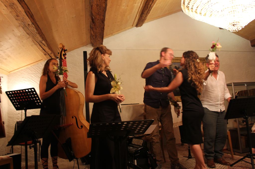 Lunghi applausi a fine concerto, ma anche a scena aperta. Bravissima Manuela Tuena, ma altrettanto la zurighese Johanna “Jojo” Kunz al contrabbasso, il fisarmonicista Thomas Weber, il chitarrista Edmauro de Oliveira e il clarinettista Franco Mettler.