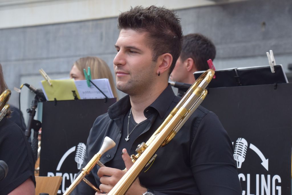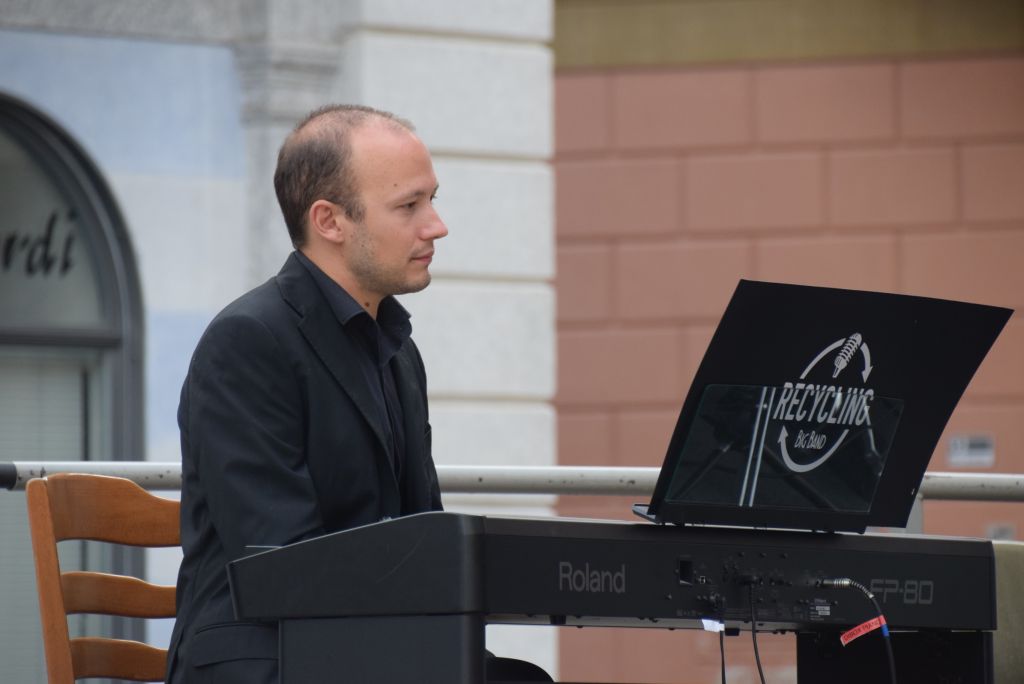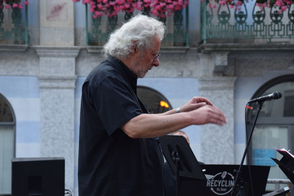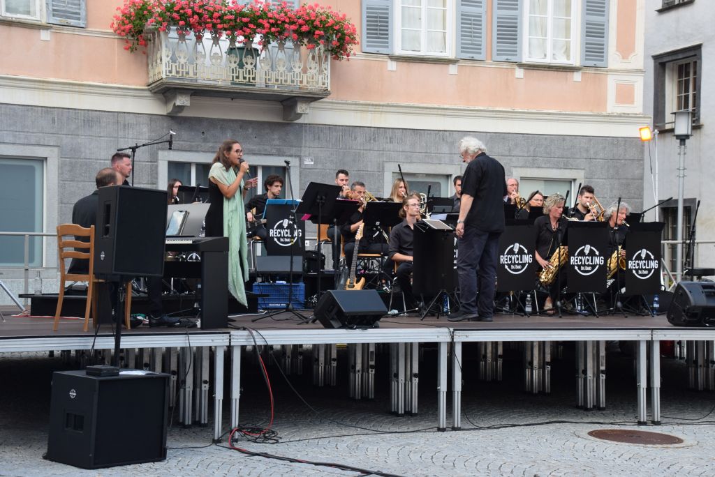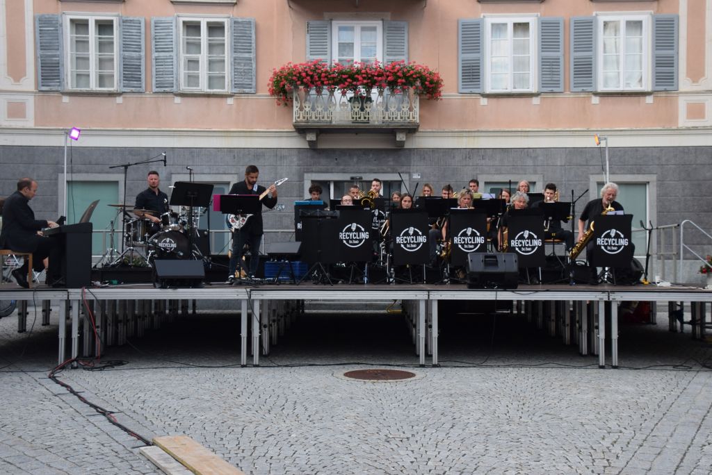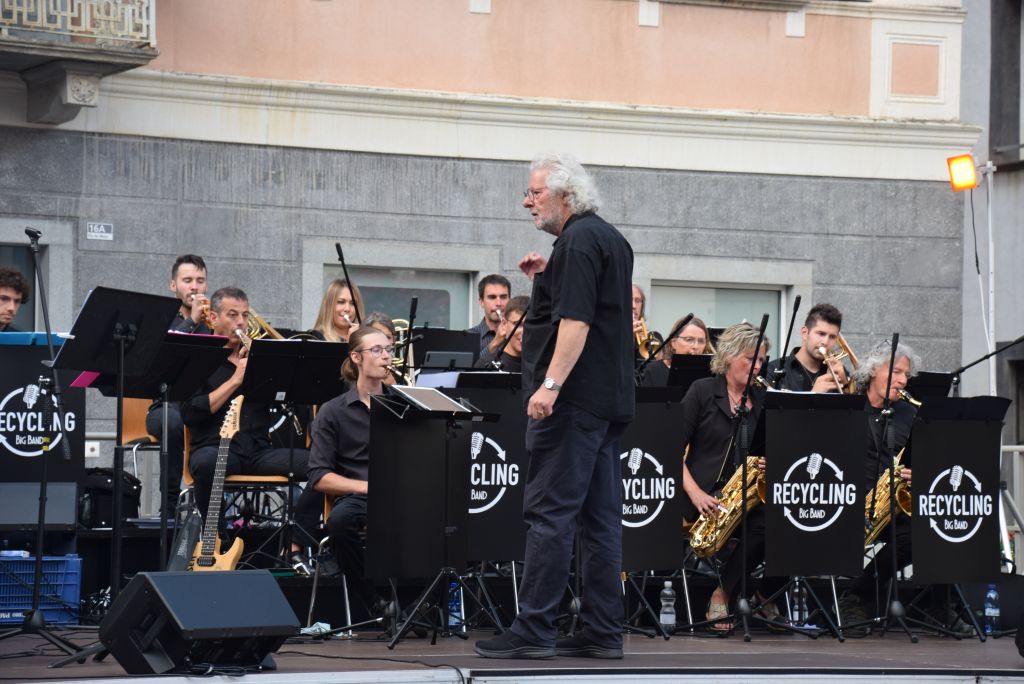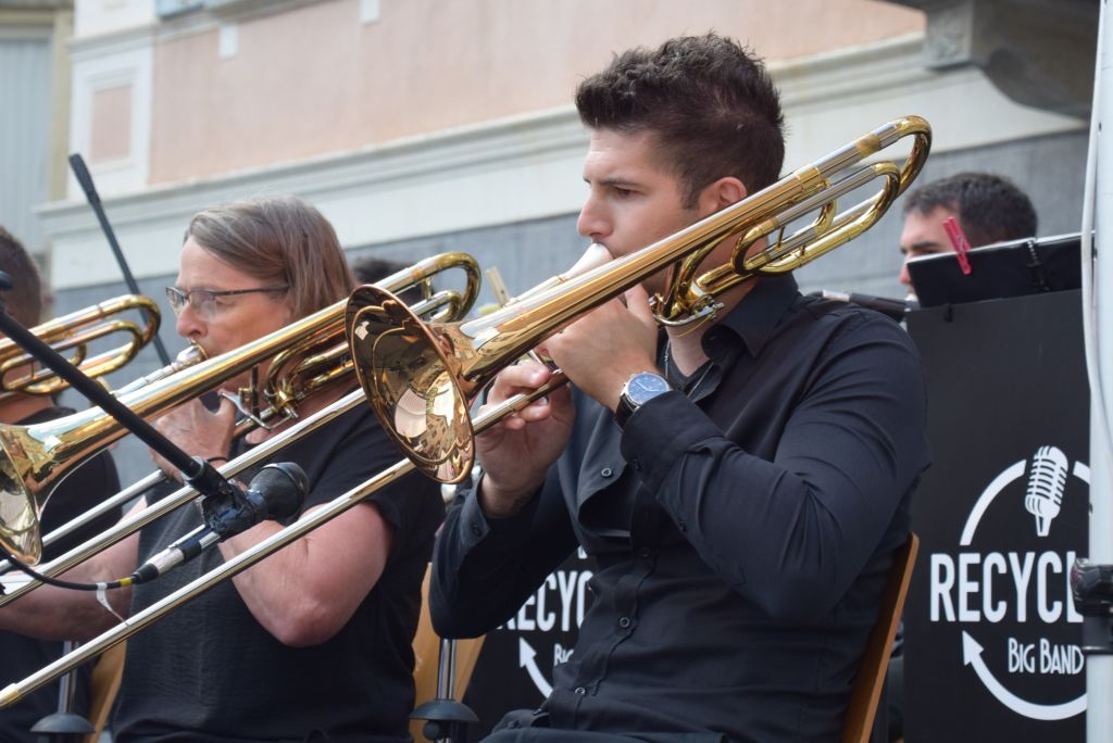 La Recycling Big Band nasce nel 2019 da un’idea del batterista Paride Nussio che col sostegno del padre Ivan è riuscito a coronare il sogno di formare un’orchestra jazz. I membri si conoscono da una vita; molti sono cresciuti assieme, sia letteralmente che musicalmente. Alcuni sono stati allievi di altri e quasi tutti hanno già suonato assieme prima di entrare a far parte della big band. Ad una delle prime prove infatti, un musicista esclamò soddisfatto: “Malgrado non ci vediamo da parecchio tempo siamo ancora affiatati, ci si può ancora usare, ci si può riciclare.” Da quella battuta è nato il nome della band.