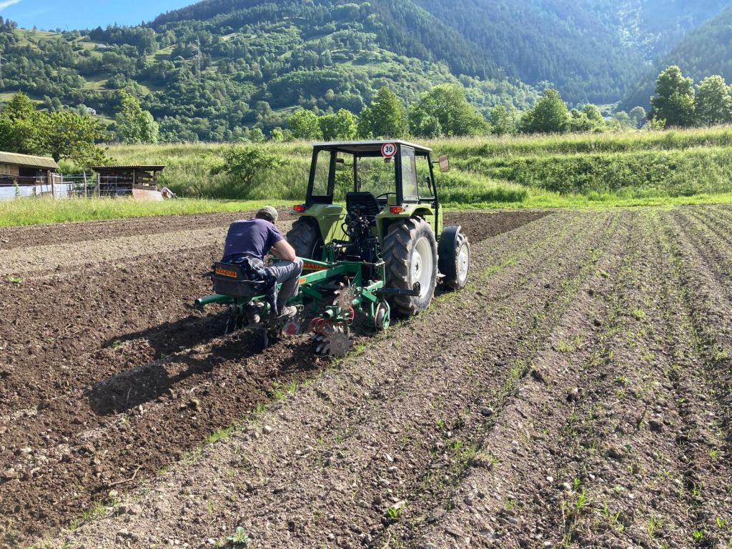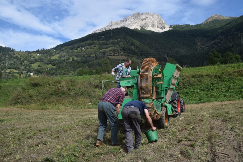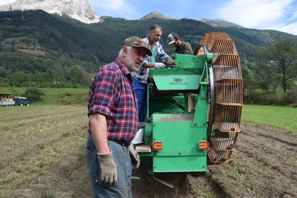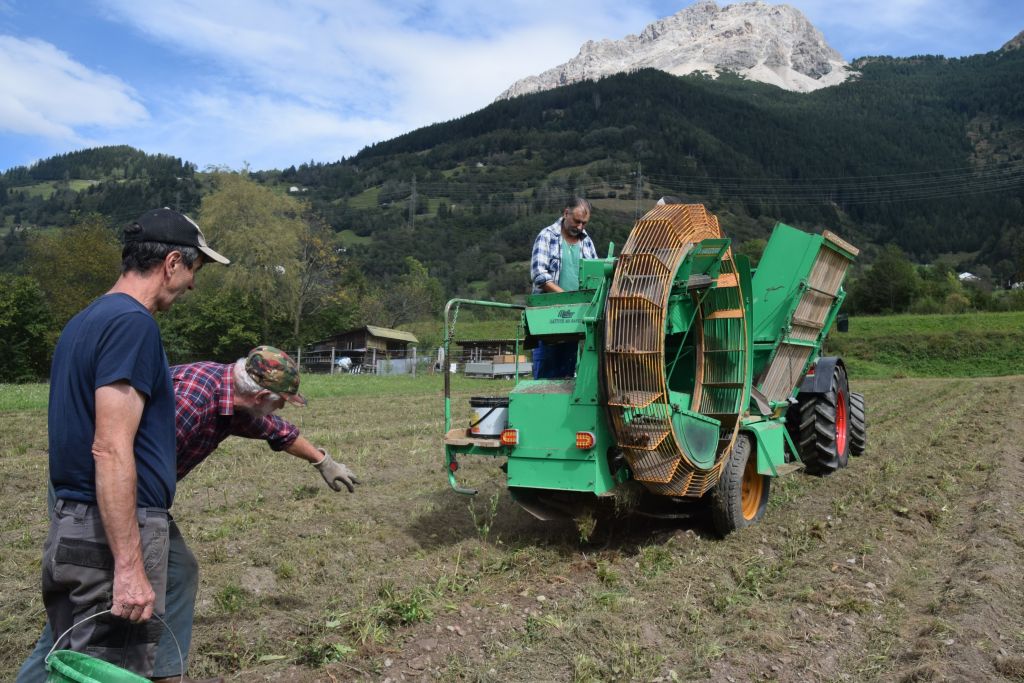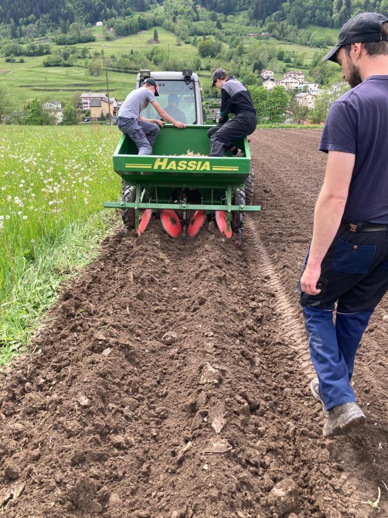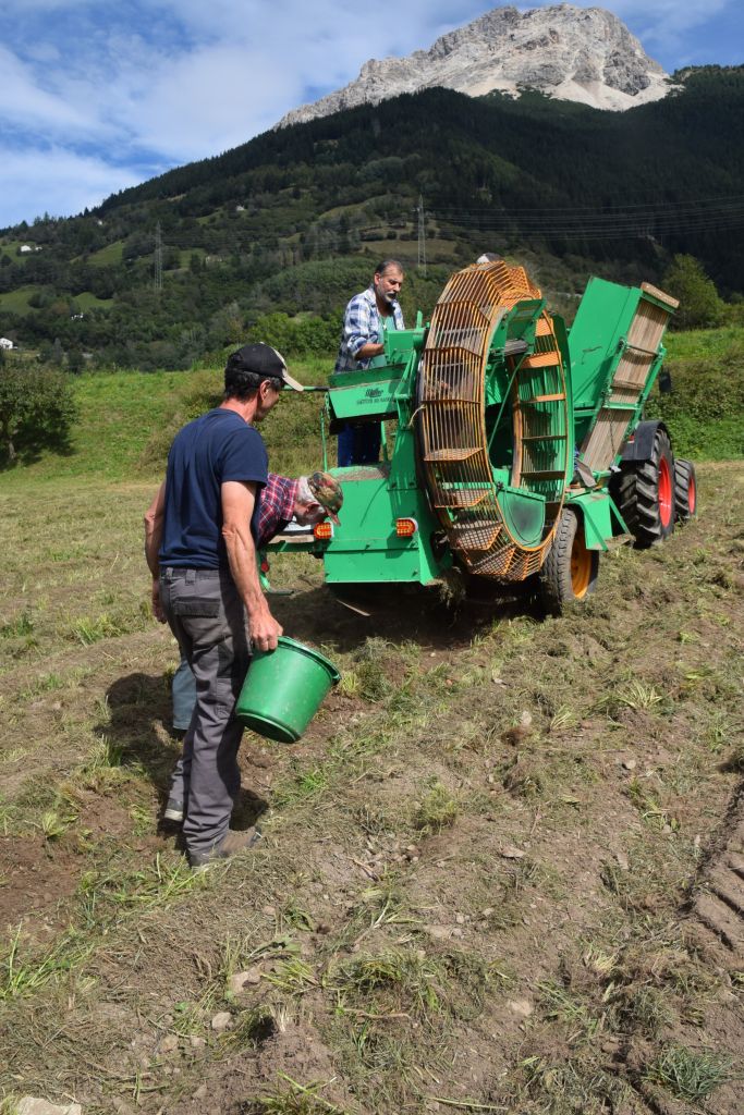 Thomas Compagnoni, Andrea Cortesi, Tobia Crameri e Corrado Crameri, proprietari dell’Azienda agricola Girasole (azienda composta da quattro aziende dal 2012) coltivano oltre al frumento, al saraceno e all’avena da foraggio, da 5 anni anche le patate secondo le direttive biologiche svizzere. L’idea di seminare le patate è nata dalla collaborazione con Luca Compagnoni già coltivatore di patate. Oltre a loro anche Fabrizio Raselli, proprietario della Raselli Azienda Agricola Biologica a Le Prese, è un grande produttore di patate 100% BIO Valposchiavo da 7 anni. La vendita delle patate non avviene tramite la Cooperativa Campicoltura Valposchiavo (che non è ancora attrezzata per lo stoccaggio) ma direttamente dal produttore, con l’aiuto del passa parola ad alberghi e privati. La patata, non essendo un cereale, permette una diversificazione gradita nell’avvicendamento delle colture.