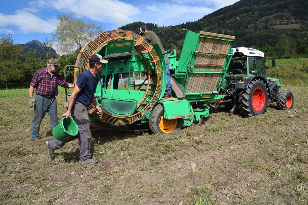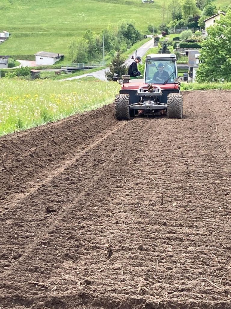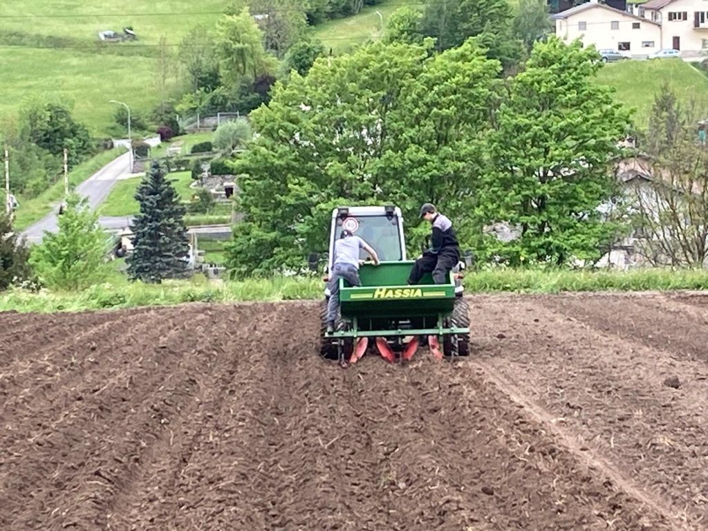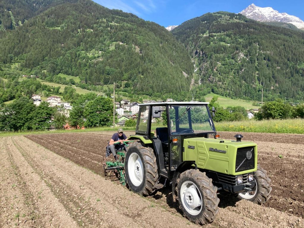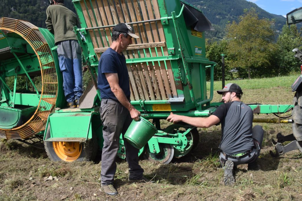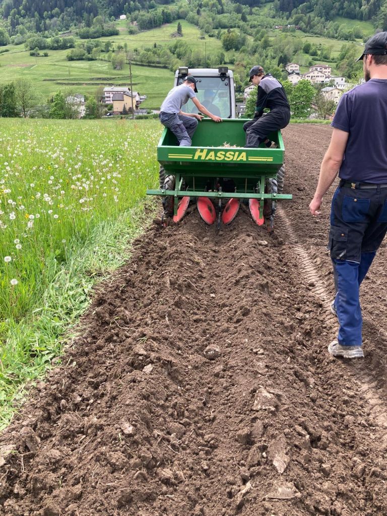 Thomas Compagnoni, Andrea Cortesi, Tobia Crameri e Corrado Crameri, proprietari dell’Azienda agricola Girasole (azienda composta da quattro aziende dal 2012) coltivano oltre al frumento, al saraceno e all’avena da foraggio, da 5 anni anche le patate secondo le direttive biologiche svizzere. L’idea di seminare le patate è nata dalla collaborazione con Luca Compagnoni già coltivatore di patate. Oltre a loro anche Fabrizio Raselli, proprietario della Raselli Azienda Agricola Biologica a Le Prese, è un grande produttore di patate 100% BIO Valposchiavo da 7 anni. La vendita delle patate non avviene tramite la Cooperativa Campicoltura Valposchiavo (che non è ancora attrezzata per lo stoccaggio) ma direttamente dal produttore, con l’aiuto del passa parola ad alberghi e privati. La patata, non essendo un cereale, permette una diversificazione gradita nell’avvicendamento delle colture.