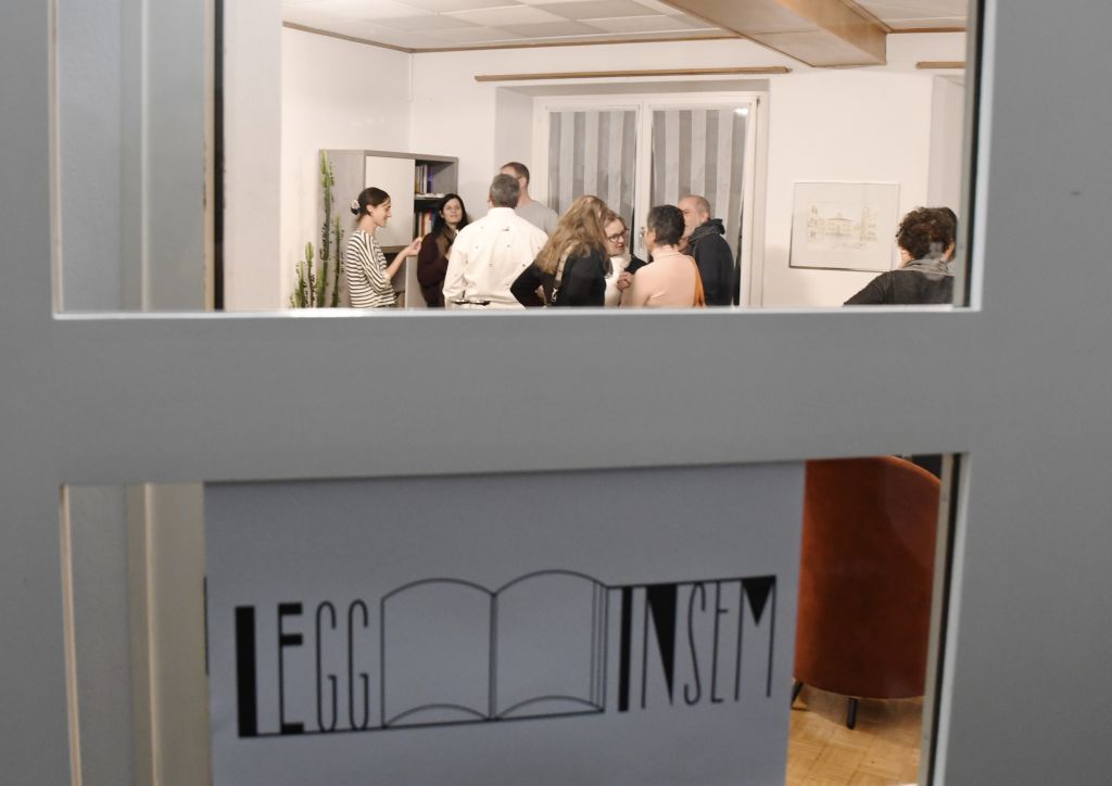 Ad accogliere il pubblico ci ha pensato il gruppo d’interesse che ha lanciato l’iniziativa, composto da Anna Capelli, Andrea Marchelli, Begoña Feijoó Fariña, Massimo Tuena e Fabiola Monigatti. Quest’ultima ha presentato il progetto nella saletta durante l’inaugurazione: «Legg Insem è uno spazio dedicato alla lettura condivisa e alla cultura. Il nome (che significa “Leggere insieme”, ndr) suggerisce un’atmosfera comunitaria e informale, dove le persone si riuniscono per leggere e condividere storie e pensieri. Il gruppo d’interesse è convinto che disporre di spazi dedicati alla lettura sia fondamentale, sia per stimolare la concentrazione e la riflessione, sia per incentivare l’abitudine alla lettura, alla condivisione e alla creatività».