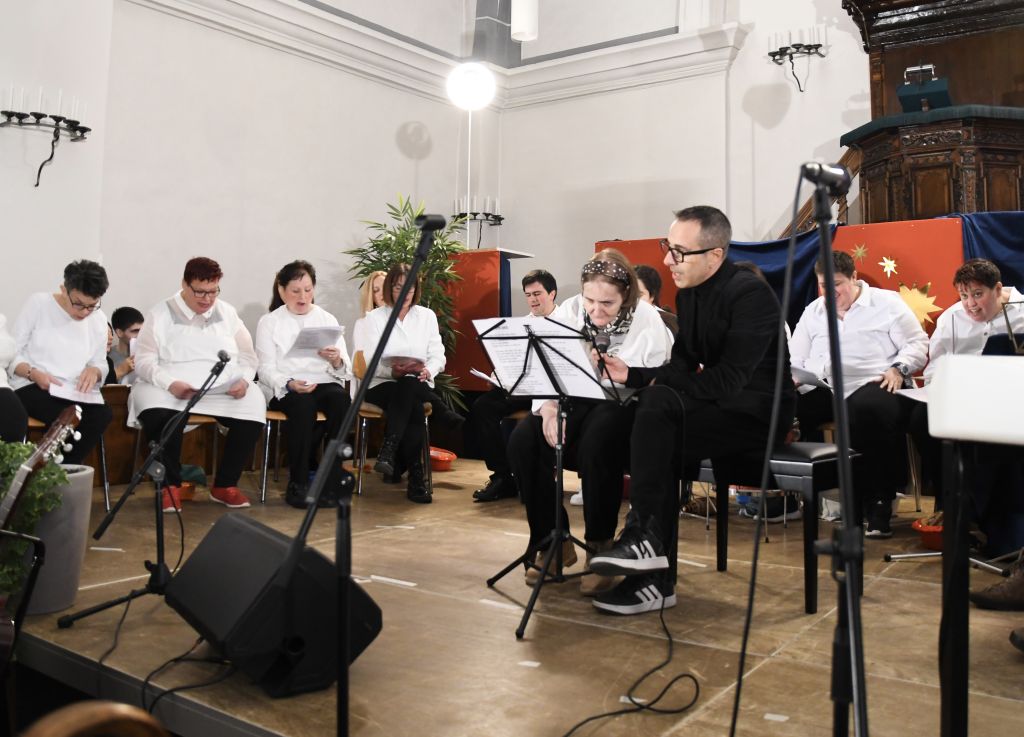 Molti non sapevano cosa aspettarsi dal terzo concerto d'Avvento 2024 nella Chiesa riformata di Poschiavo. Il Movimento saliva su un palco per cantare (certo questa è una novità), ma cosa avrebbe dato al pubblico? Ebbene, ha dato emozioni a non finire in una chiesa stracolma di spettatori. Tutto questo grazie all'impegno, al coraggio, all'affiattamento, al sentimento degli utenti del Movimento e al grande aiuto delle operatrici e degli operatori, ma anche alla bravura e alla sensibilità del direttore musicale del gruppo, Fabio Pola, che ha contribuito in maniera fondamentale alla magia che si è creata tra i cantanti e il pubblico.