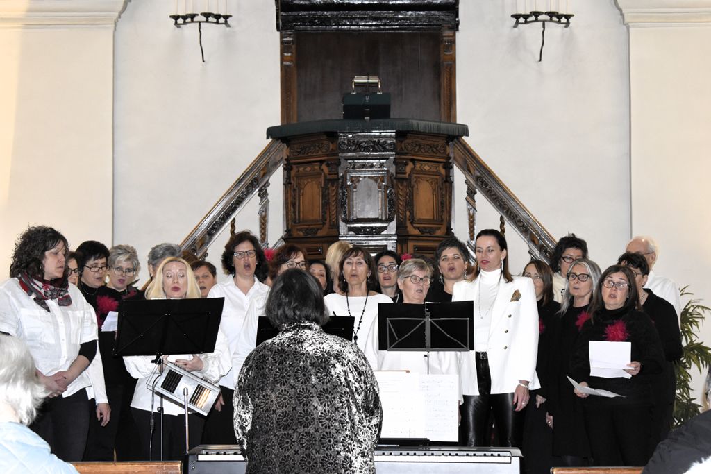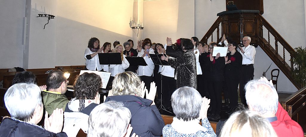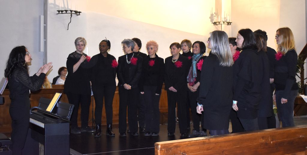 Energia coinvolgente generata sabato sera nella Chiesa Riformata di Poschiavo dal coro DoppiaVì della Scuola di Musica con Valentina Mazzoleni e dal coro engadinese Swing Singers, diretto da Manuela Zampatti, originaria di Poschiavo, per il concerto “Voci, Melodie, Emozioni”.