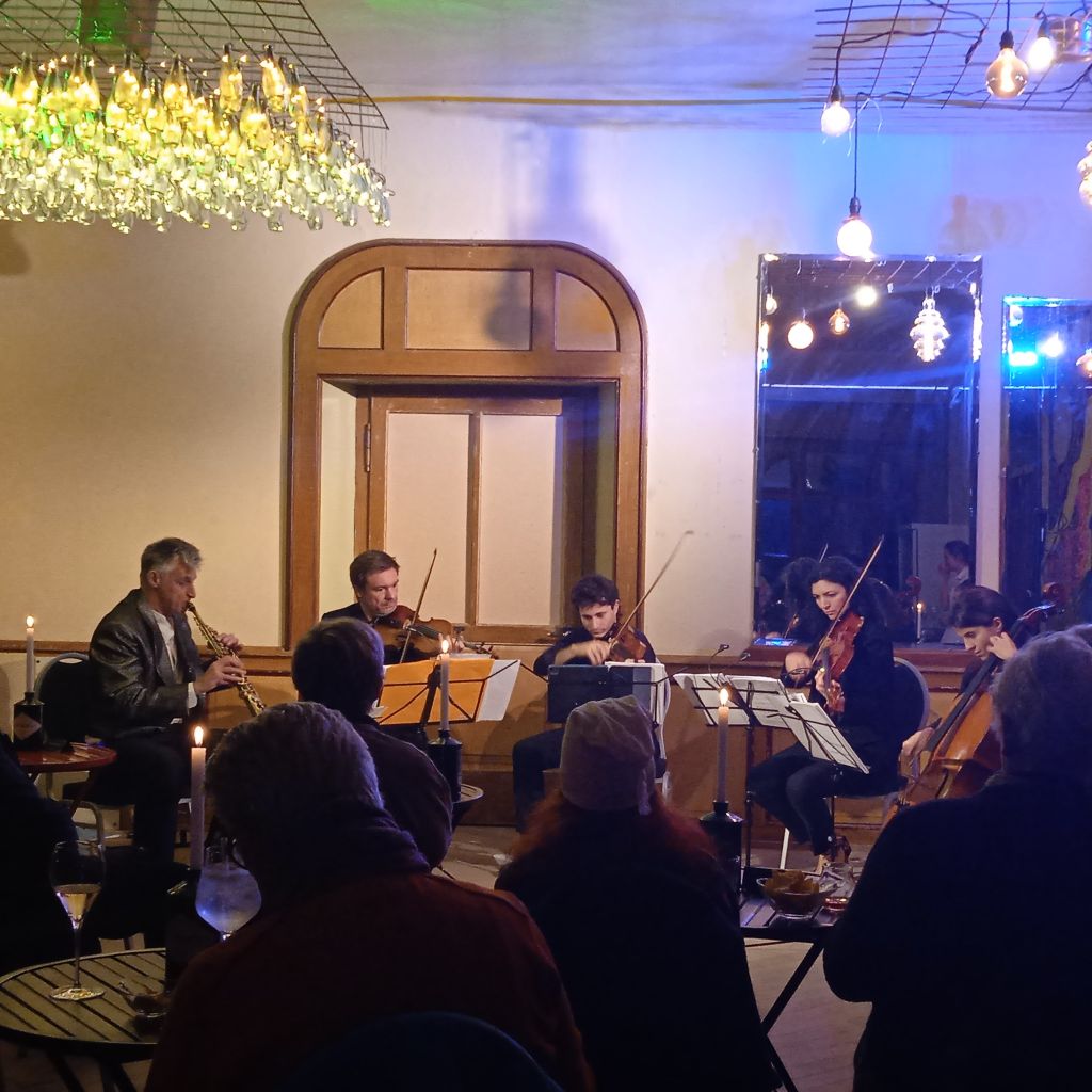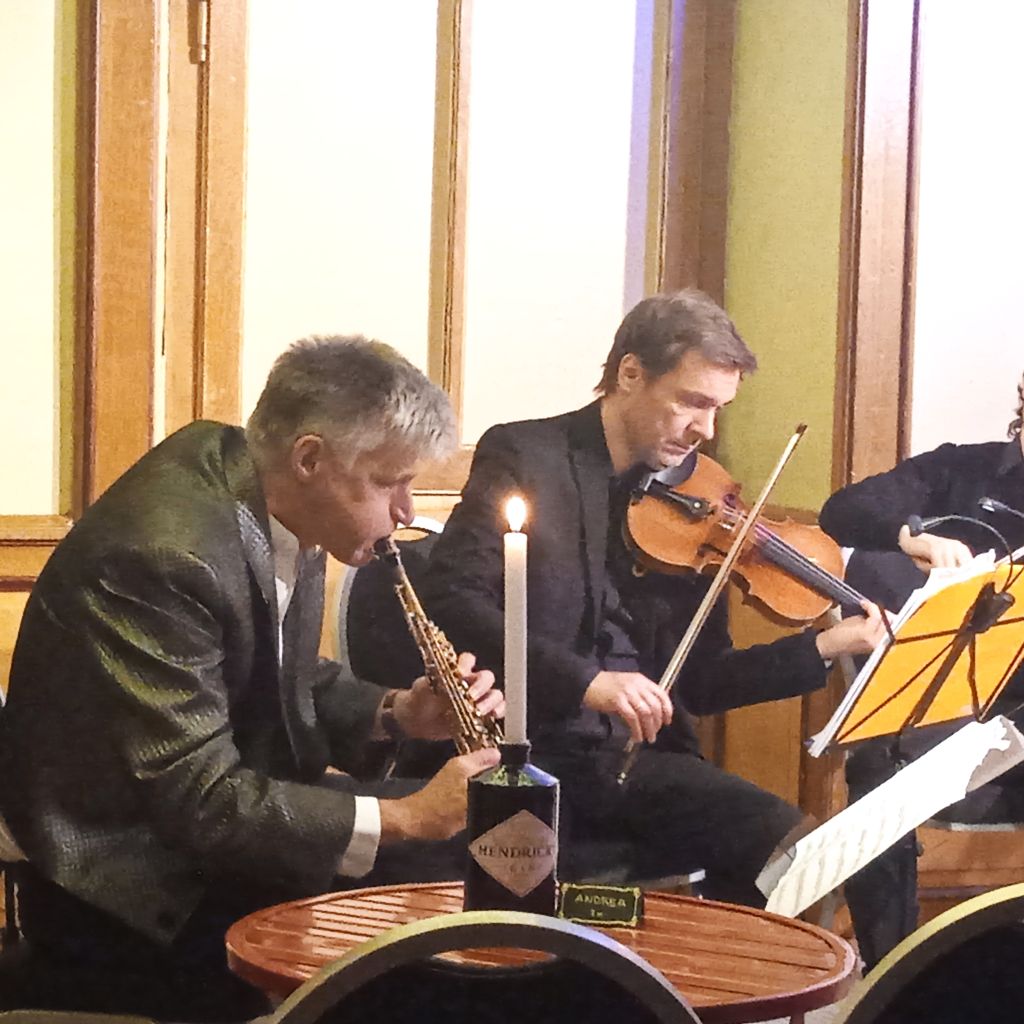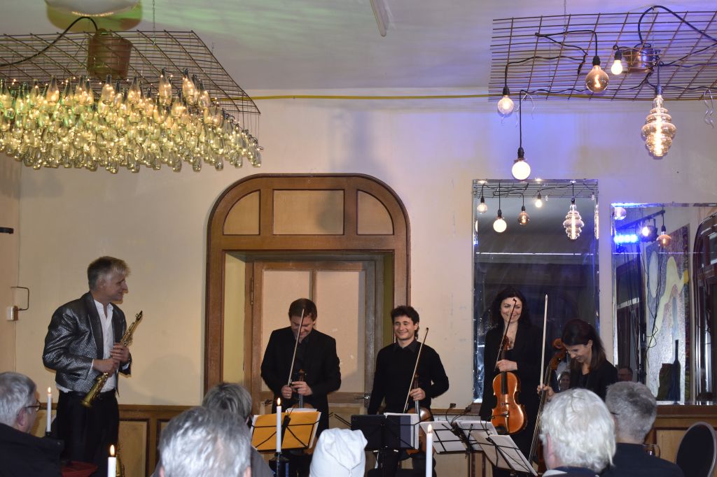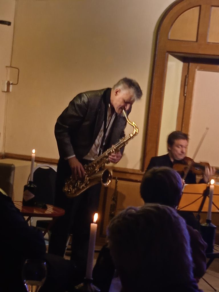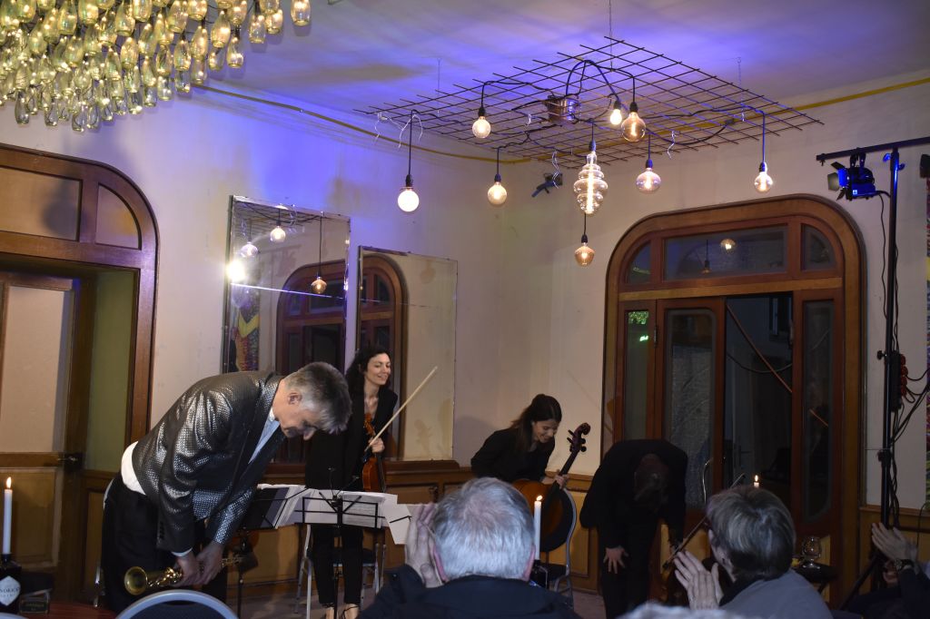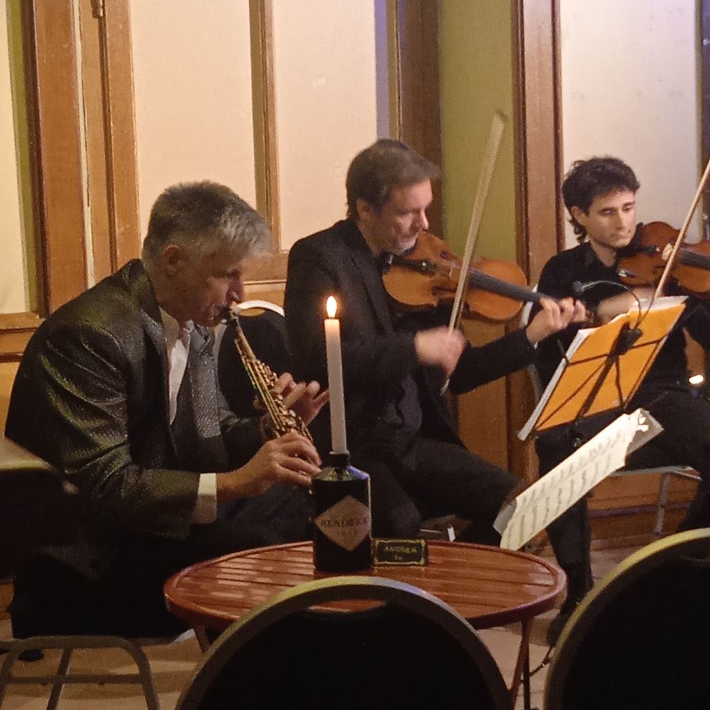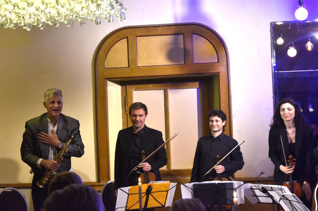 Le sorprendenti contaminazioni fra generi musicali diversi e fra due continenti, in un connubio artistico di grande impatto emotivo, hanno entusiasmato un pubblico attento, competente e partecipe che ha tributato lunghi e convinti applausi al grande sassofonista Daniel Schnyder e ai quattro archi che lo accompagnavano venerdì sera al Crott per il prezioso concerto nella bellissima sala da ballo allestita con i tavolini rotondi e le poltroncine art nouveau. L’atmosfera perfetta e il servizio ai tavoli cortese ed efficiente hanno fatto da contorno al piatto forte, costituito da più di un’ora di musica originale dal vivo di eccellente qualità.