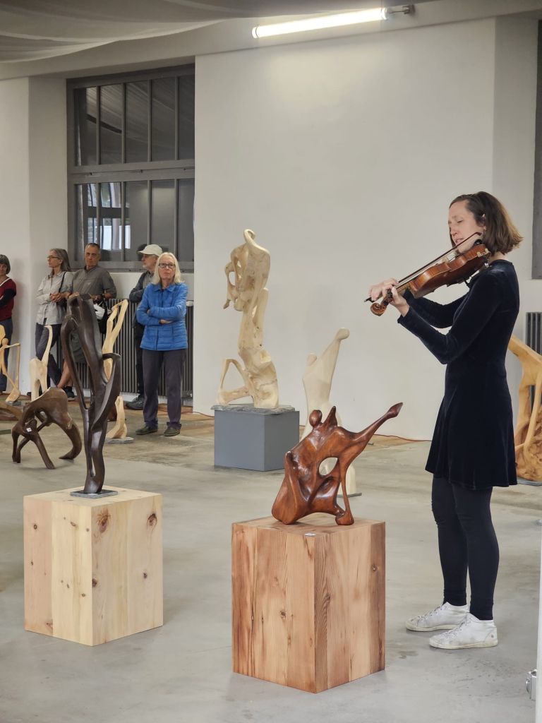 Sabato scorso si è instaurato un dialogo profondo fra la sensibilità umana e la bellezza materica delle opere di Marco Zala all’interno della mostra “L’anima nelle radici”. Al Punto Rosso di Poschiavo Laura Schuler e Thomas Rohrer hanno creato un ponte sonoro magnifico fra arte e musica. Schuler con violino e voce, e Rohrer con diversi oggetti, la rabeca (strumento brasiliano) e un microfono a contatto collegato a una delle sculture per amplificarne il suono, hanno regalato al pubblico emozioni profonde.