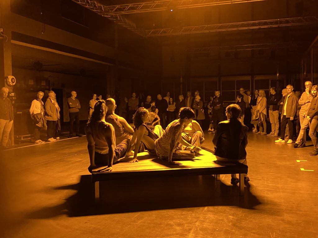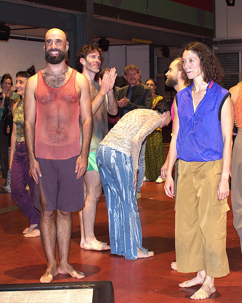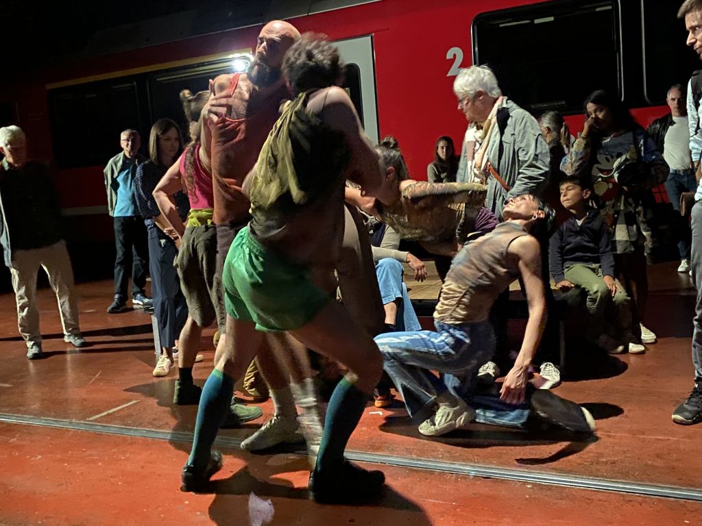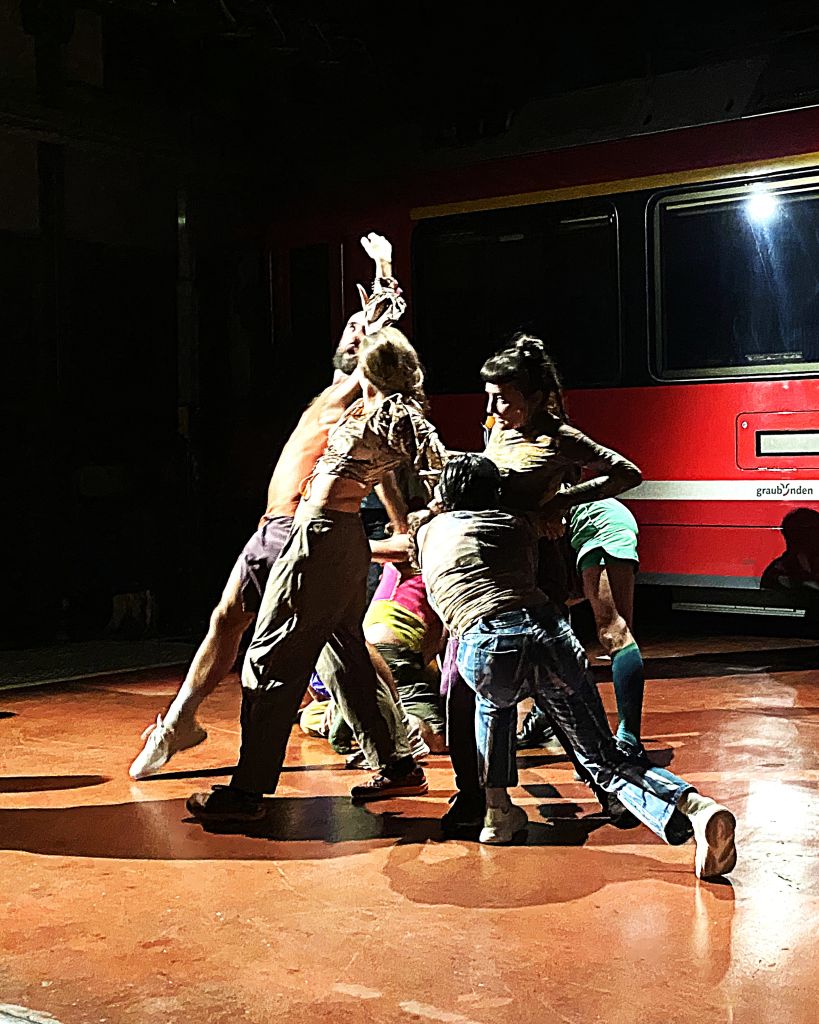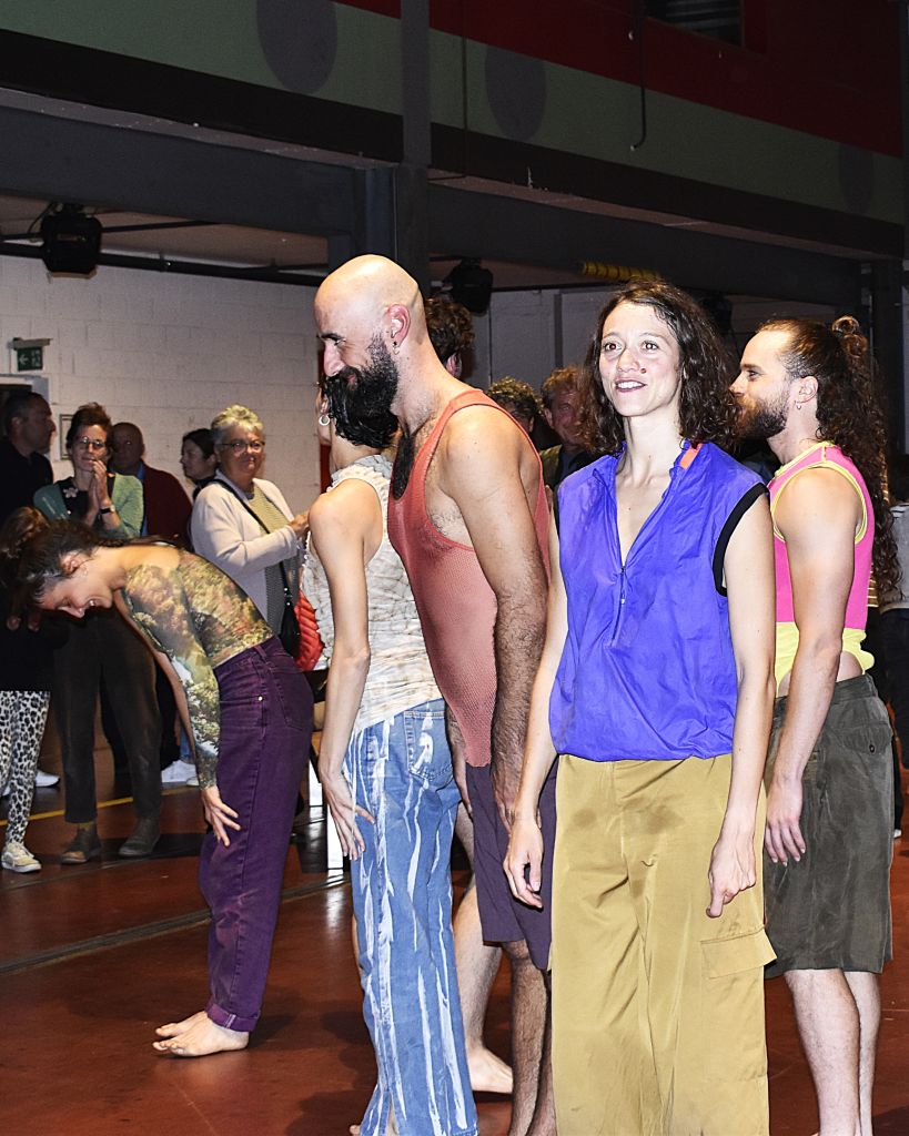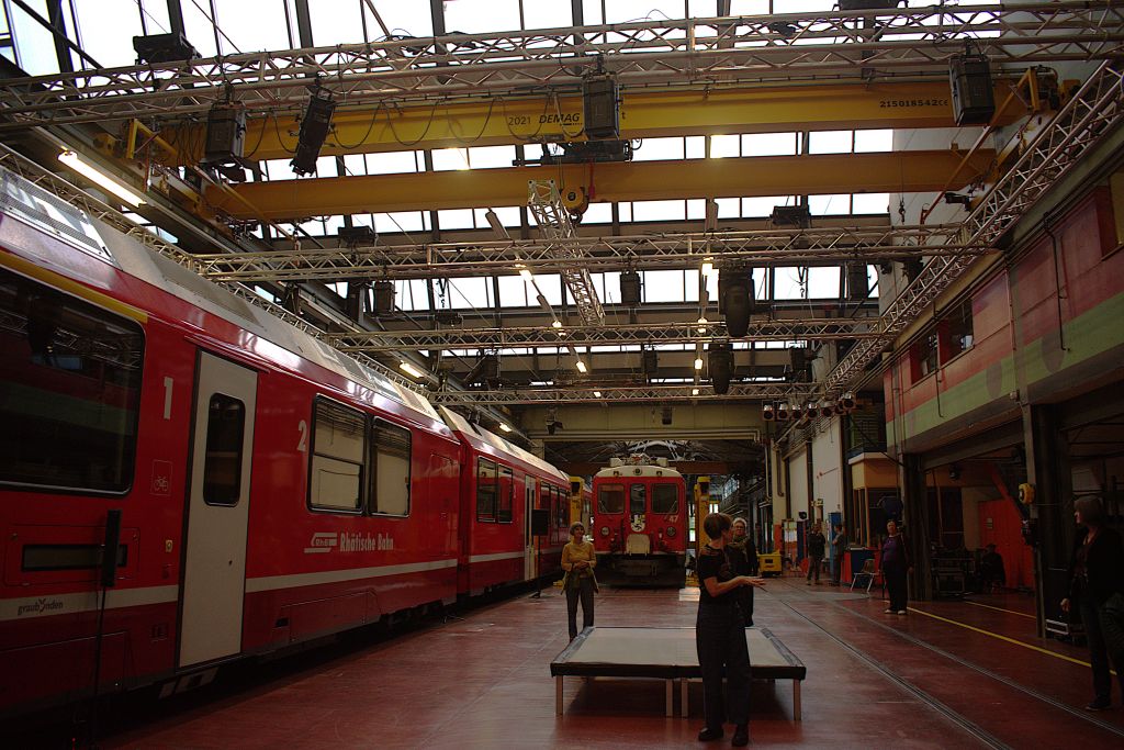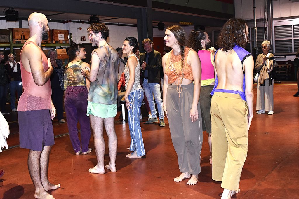 In Chora, installazione sonora e spaziale con un suggestivo gioco di luci, supportato da un’imponente attrezzatura tecnica, della coreografa Rafaële Giovanola per CocoonDance, andata in scena sabato e domenica al Deposito Ferroviario, grazie all’ incredibile impegno di Paola Gianoli con la sua riverbero.ch, i sette danzatori occupano lo spazio in modo creativo e fluido, provocando il movimento del pubblico che, in questo modo, si sposta in funzione dello spazio necessario ai danzatori, diventando a sua volta un elemento fluido. Perfetto, per questo scopo, il Deposito che con il suo aspetto industriale, il suo vagone rosso di lato e dotato di un grande spazio, appunto, da inventare, perché finalizzato ad altro, diventa uno straordinario scenario creato dall’ interazione fra le persone che lo abitano e lo spazio stesso.