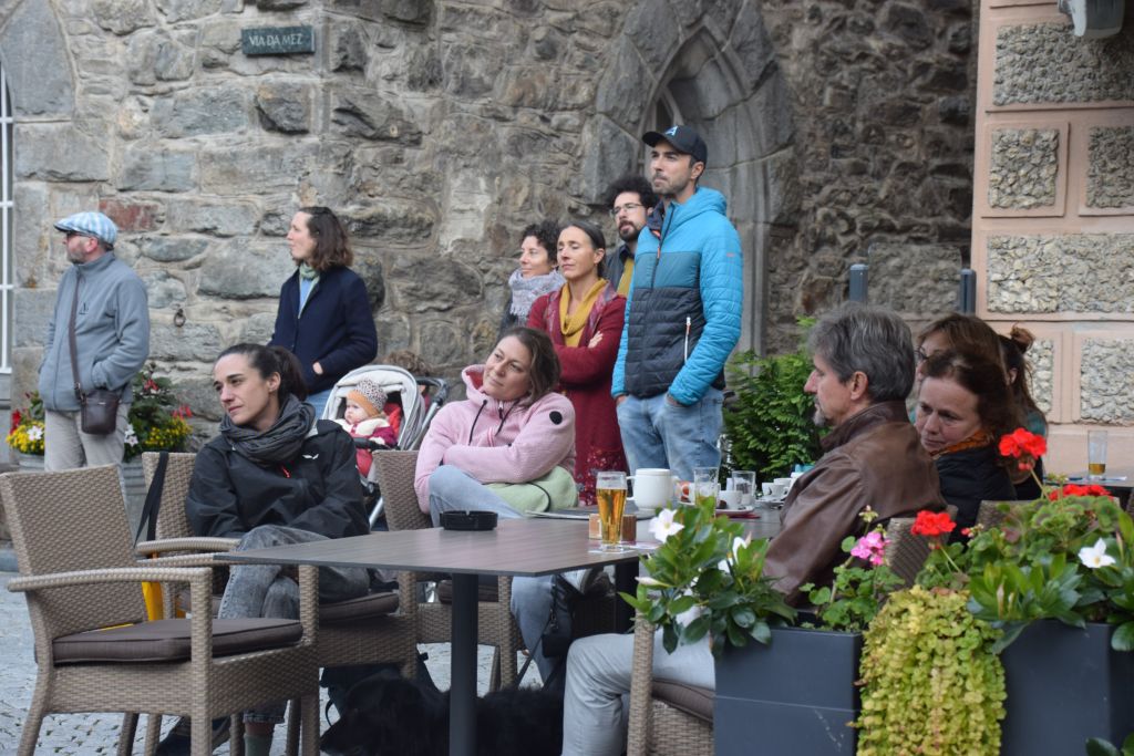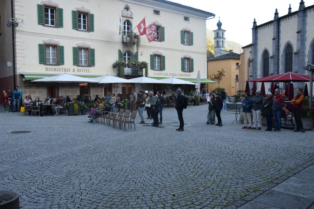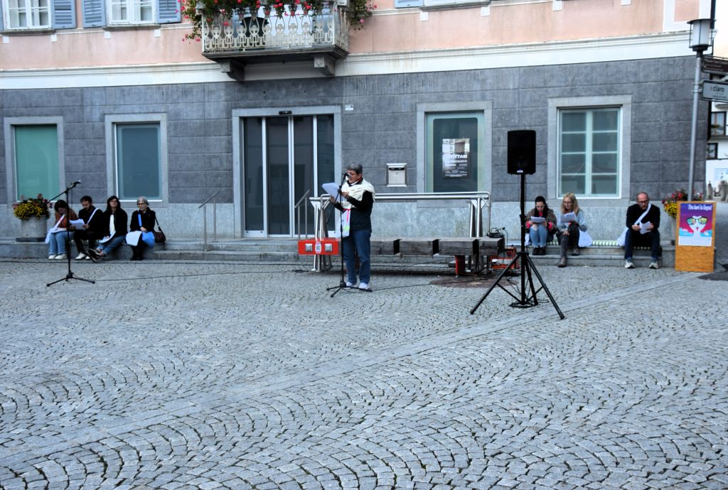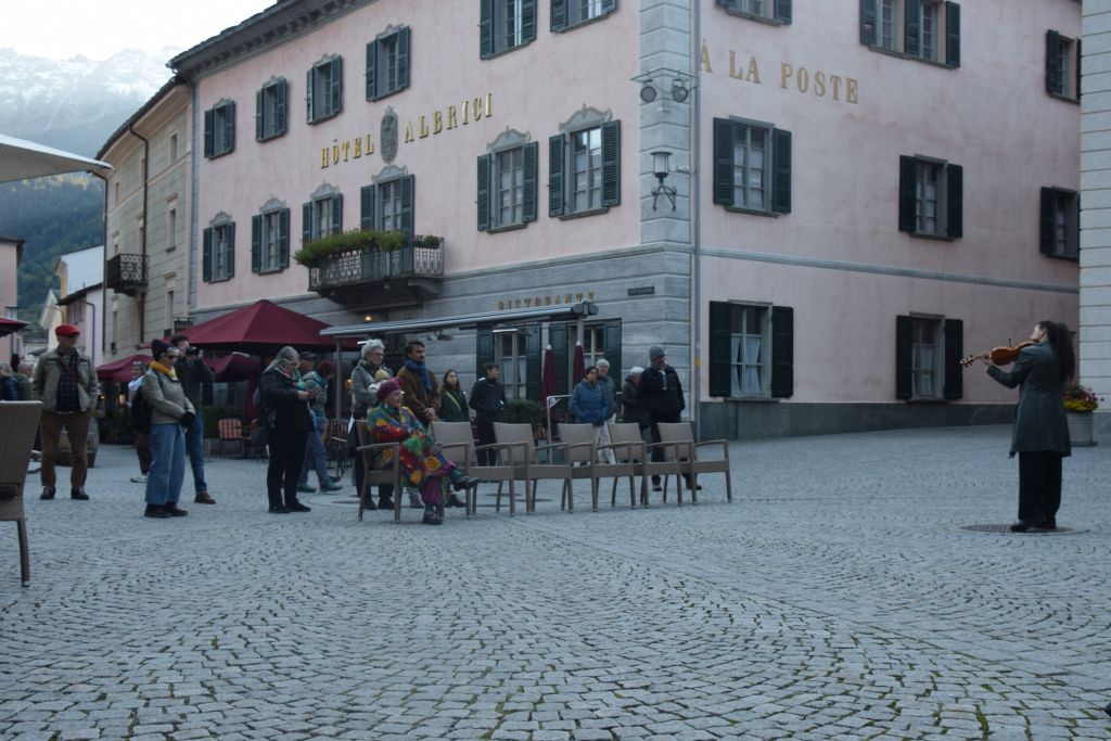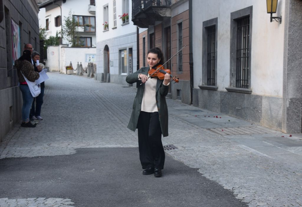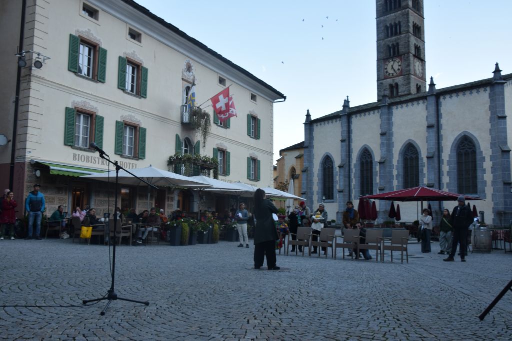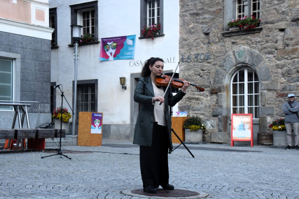 Dopo il brano Méditation di Jules Massenet suonato al violino, l'anteprima del festival Lettere della Svizzera alla Valposchiavo 2025 ha dato spazio alle letture tratte dalle opere di Mariann Bühler e di Gianna Olinda Cadonau, fra i protagonisti del festival che si è aperto ieri sera giovedì 2 ottobre 2025. Gli otto partecipanti al corso di traduzione guidato da Anna Ruchat hanno interpretato nella piazza di Poschiavo alcuni brani, dando prova di abilità nella resa, attraverso una sapiente traduzione dal tedesco all' italiano, delle atmosfere che i brani evocano. Una perfetta introduzione per l' atteso festival letterario che quest' anno si concentra proprio sulle molte valenze delle diverse lingue. Degna conclusione di un'intensa ed emozionante lettura pubblica, la splendida improvvisazione al violino , ispirata alle letture appena ascoltate, ancora a cura di Dorotea Crameri.
