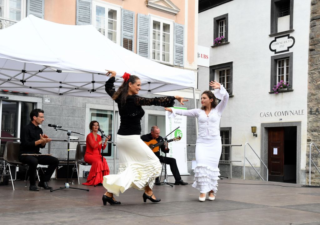 Si sono conclusi oggi, domenica 4 agosto 2018, i festeggiamenti per il Centenario della Pro Grigioni Italiano in Valposchiavo. Durante il pomeriggio si sono svolti molti eventi in piazza a Poschiavo tra cui un'esibizione di ballo flamenco da parte della mesolcinese Vanessa Nicola affiancata al ballo da Lea Pedrazzi e accompagnata con musica dal vivo da Rossella Mitrano (canto), Alessandro Agrati (chitarra) e Alessandro Longhi (flauto).