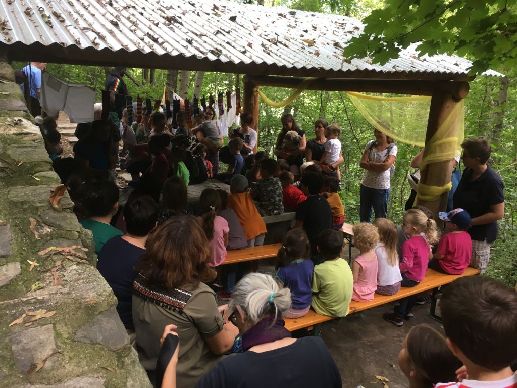 L’iniziativa, proposta dal Comune di San Vittore, conferma la sua volontà di prestare attenzione al semplice ma essenziale vivere quotidiano, cercando di supportare con gesti naturali le azioni dei più fragili, come i bambini, così come dei luoghi che, pur non essendo centrali, devono essere parte integrante della vita comunitaria. Monticello si è rivelata un perfetto quadro per la realizzazione dell’animazione teatrale itinerante all’aperto, in particolare per la continuità tra il paesaggio urbano e quello naturale del bosco. Il gruppo, coinvolto nella continuità del racconto, si è trovato nel mezzo del bosco quasi senza accorgersene, a contatto con una testimonianza della vita passata; così il bosco è ritornato ad essere popolato grazie ai suoni delle antiche frequentazioni.