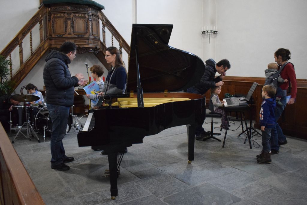 Dopo il successo delle scorse quattro edizioni, la SMP ha riproposto oggi, sabato 15 dicembre 2018, l'Open Day (porte aperte). In un solo pomeriggio, dalle 14:00 alle 15:30, nell'aula e in Chiesa evangelica Riformata a Poschiavo grandi e piccini hanno potuto vedere, toccare e provare gli strumenti. Ciascun insegnante ha spiegato il funzionamento del proprio strumento: violino, violoncello, chitarra, flauto dolce, flauto traverso, tromba, fisarmonica, clarinetto, sax, pianoforte, percussioni, chitarra elettrica e pianola. Veramente tante le famiglie che hanno accompagnato i loro bimbi a questa giornata molto particolare. C'erano dei bambini che suonano già degli strumenti, ma si sono divertiti ugualmente a provarne di nuovi. Al termine è stato offerto un rinfresco.