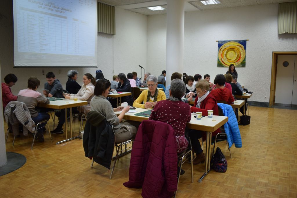 Ieri, domenica 10 marzo 2019, gli scolari delle terze superiori della Valposchiavo e il catechista Alberto Gianoli hanno organizzato al centro parrocchiale di Poschiavo un torneo di scala quaranta il cui ricavato verrà usato per il pellegrinaggio, una professione di fede degli scolari dell’ultimo anno, che si terrà dal 23 al 26 di aprile a Roma.