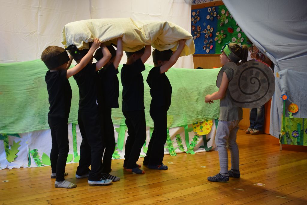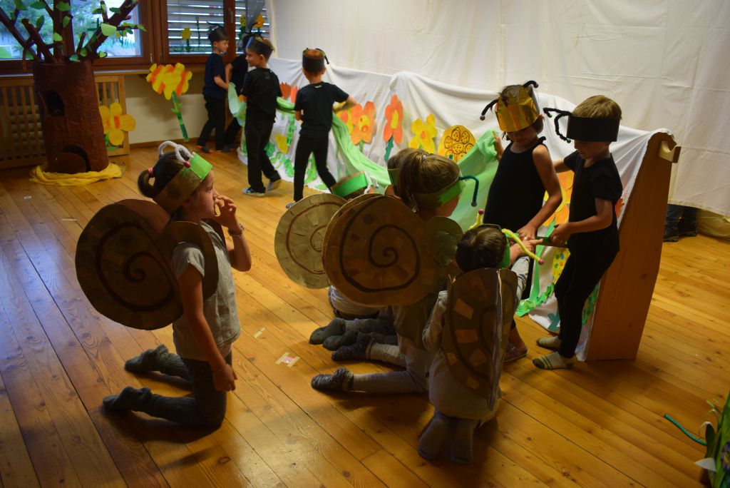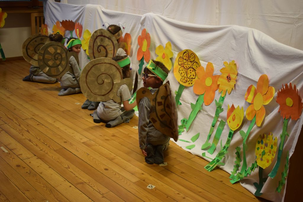 Gli scölin dell’insegnante Silvana della SI di Le Prese, Sezione luna, avendo come tema annuale “il prato”, hanno messo in scena la rappresentazione liberamente tratta dal libro di Luis Sepùlveda “Storia di una lumaca che scoprì l’importanza della lentezza”, che racconta l’avventura di una lumaca che non si accontenta dell’ordinario tran tran e abbandona la sua comunità per cercare le sue risposte ai suoi interrogativi.