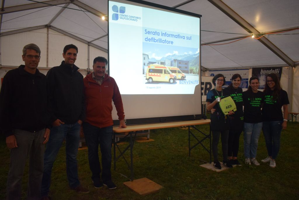Quest'anno il Circolo Giovanile di Prada ha l'onore di spegnere le 100 candeline. I "circulin" per festeggiare in bellezza il prestigioso traguardo, hanno deciso di donare alla comunità di Prada un defibrillatore. Giovedì sera 15 agosto, in collaborazione con l’ospedale San Sisto, è stato organizzata una serata informativa dedicata all'uso di queste attrezzature salvavita. Da alcuni anni, in Valposchiavo sono a disposizione della gente diversi defibrillatori, impararne il corretto funzionamento è molto importante. A Prada il defibrillatore è stato appeso al muro della casa Parrocchiale.